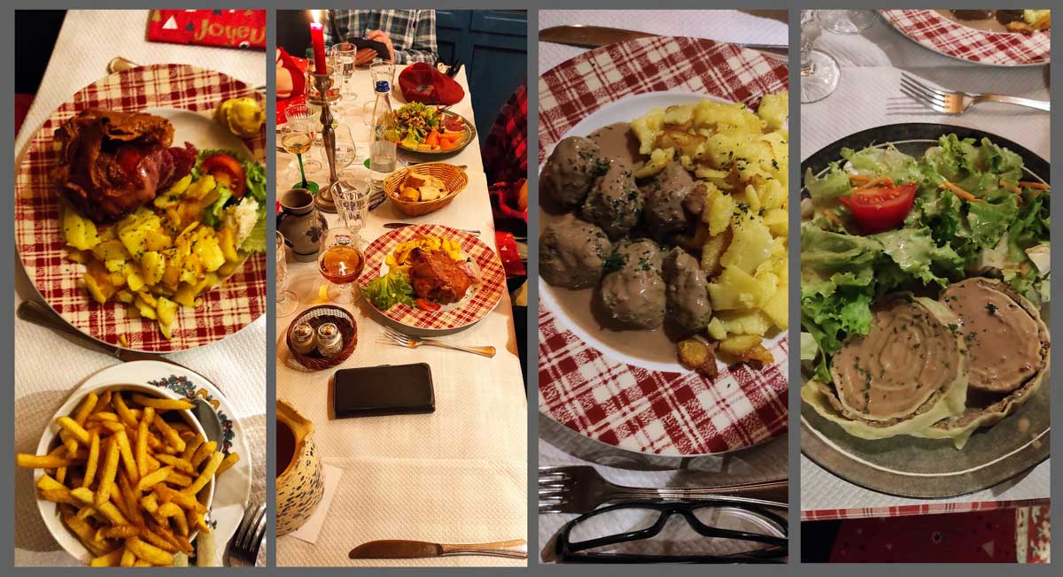Comme prévu, c’est à la frontale que nous avons terminé la randonnée pendant que le froid faisait craquer l’herbe gelée sous nos pas, allant même jusqu’à faire givrer le dessus de nos sacs cadeaux… Pardon, nos sacs à dos, le lapsus est dû à la période de l’Avent. Avant le dîner à l’Oie Gourmande à Willgottheim. Et on peut vous dire qu’il n’y a pas que les oies qui étaient gourmandes. L’endroit s’avère par ailleurs un vrai petit musée alsacien qui vaut le coup pour les plats et pour la déco !