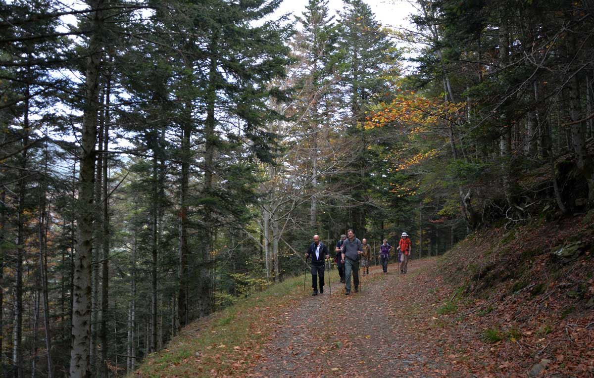 Alerte orange orage, pour notre grand désespoir, s’affichait sur les panneaux lumineux de l’autoroute. Aussi gardions-nous à l’esprit de pouvoir raccourcir la randonnée et redescendre si le ciel mettait sa menace à exécution. Il n’en fit rien et nous avons pu cheminer sur 16 kilomètres et en grimpant de 780 mètres. Eh oui, on n’est pas des…