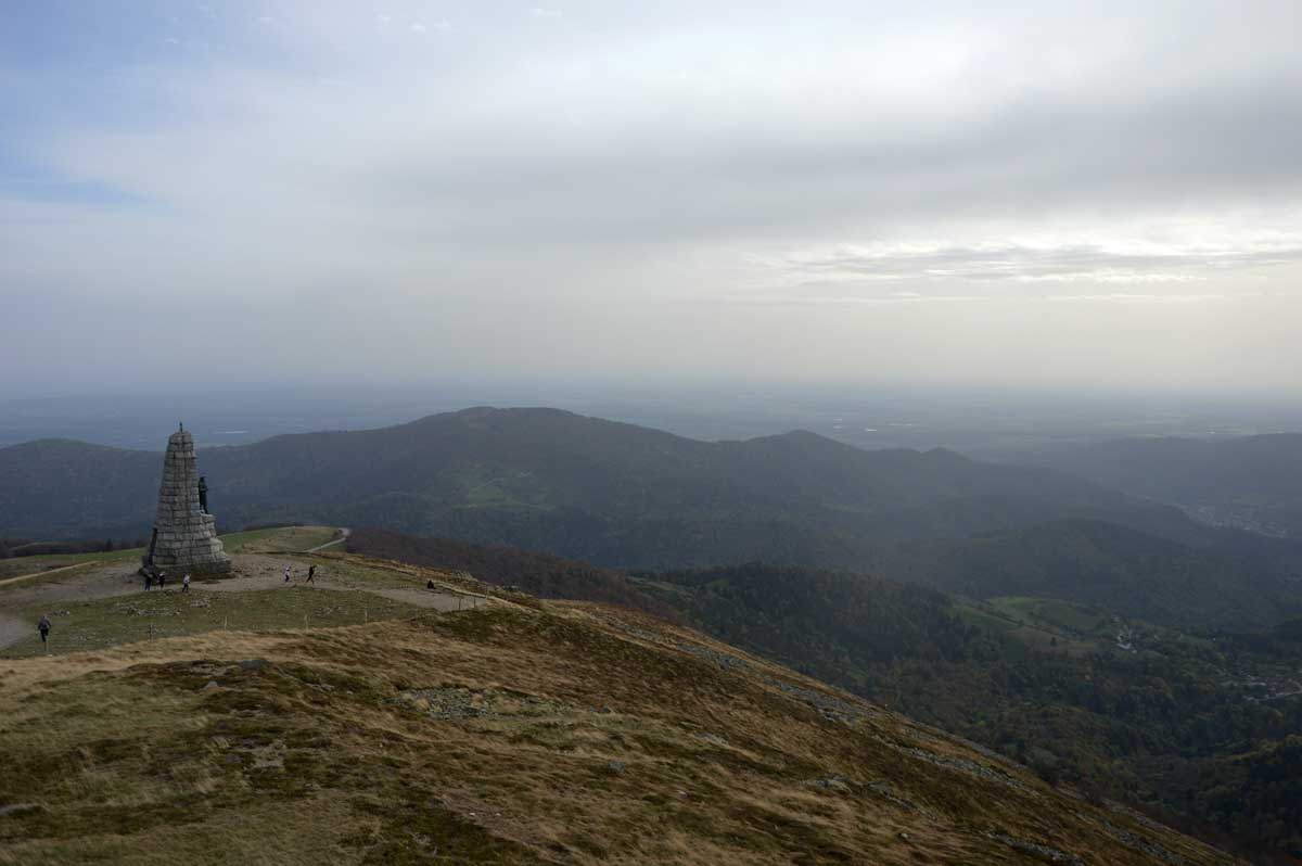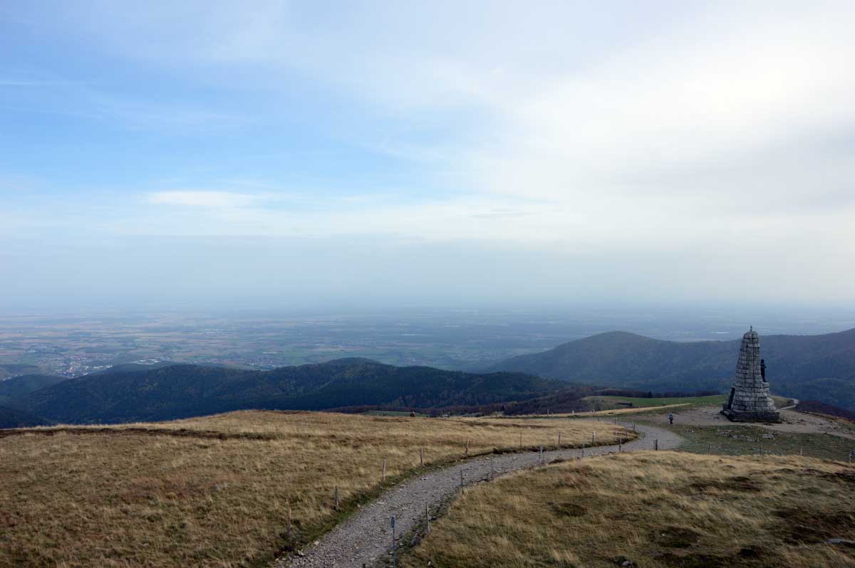 Oui du calme, on a compris. Donc notre… objectif, le sommet du Grand Ballon. A commencer par le monument des Diables Bleus qui…