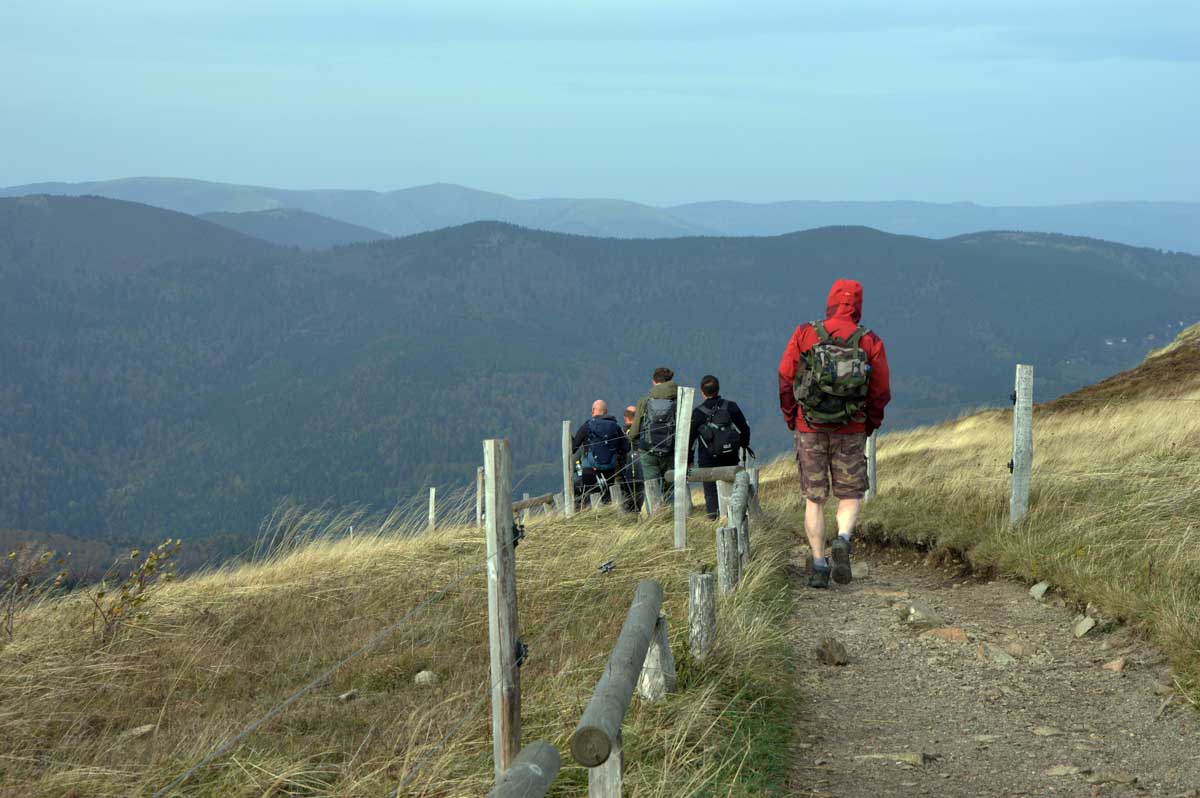 Fatigants ces supporters… Mais le Grand Ballon, ce n’est pas une compétition, idiots ! C’est le sommet des Vosges à 1424 m d’altitude ! Et c’est vers l’heure du déjeuner que nous avons atteint notre but pour…