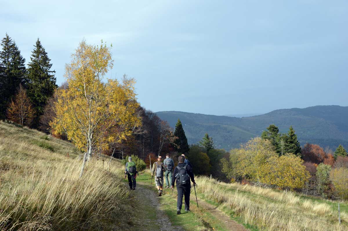 Mais laissez-moi finir ! Les Diables Bleus, ce n’est pas une équipe de foot, ce sont les chasseurs alpins pour lesquels ce monument a été érigé ici en 1927. Mais auparavant donc, départ du Schutzle pour d’abord passer au Lac du Ballon…