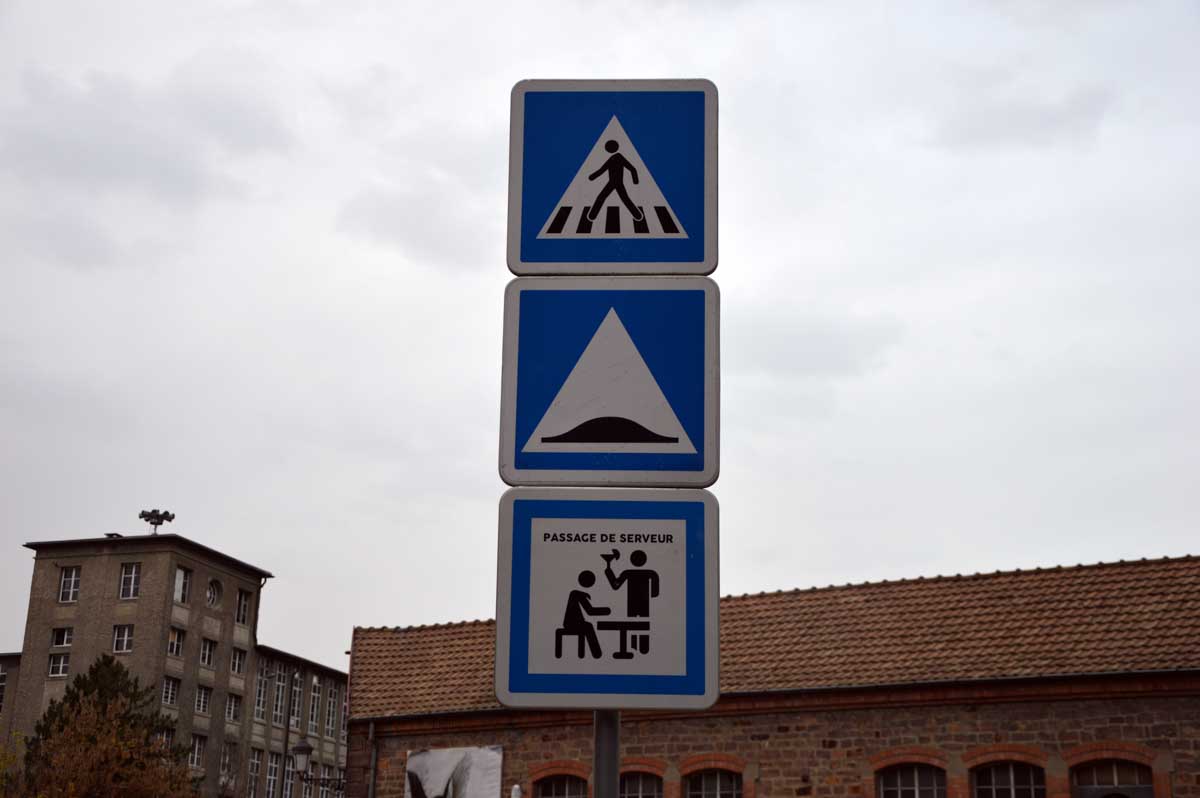 Et zut, encore un verbe qu’il ne fallait pas utiliser. Donc nous avons plutôt dû choisir de descendre et avons pris notre pot final à Murbach où nous a été dévoilé un panneau routier que nous ne connaissions pas. Voir photo.
