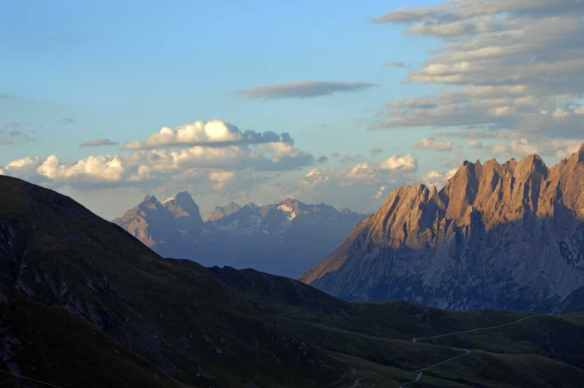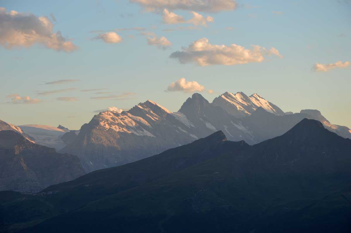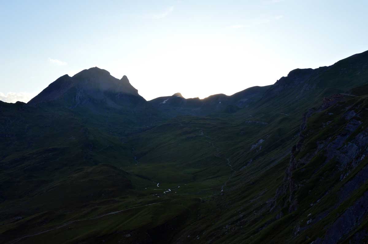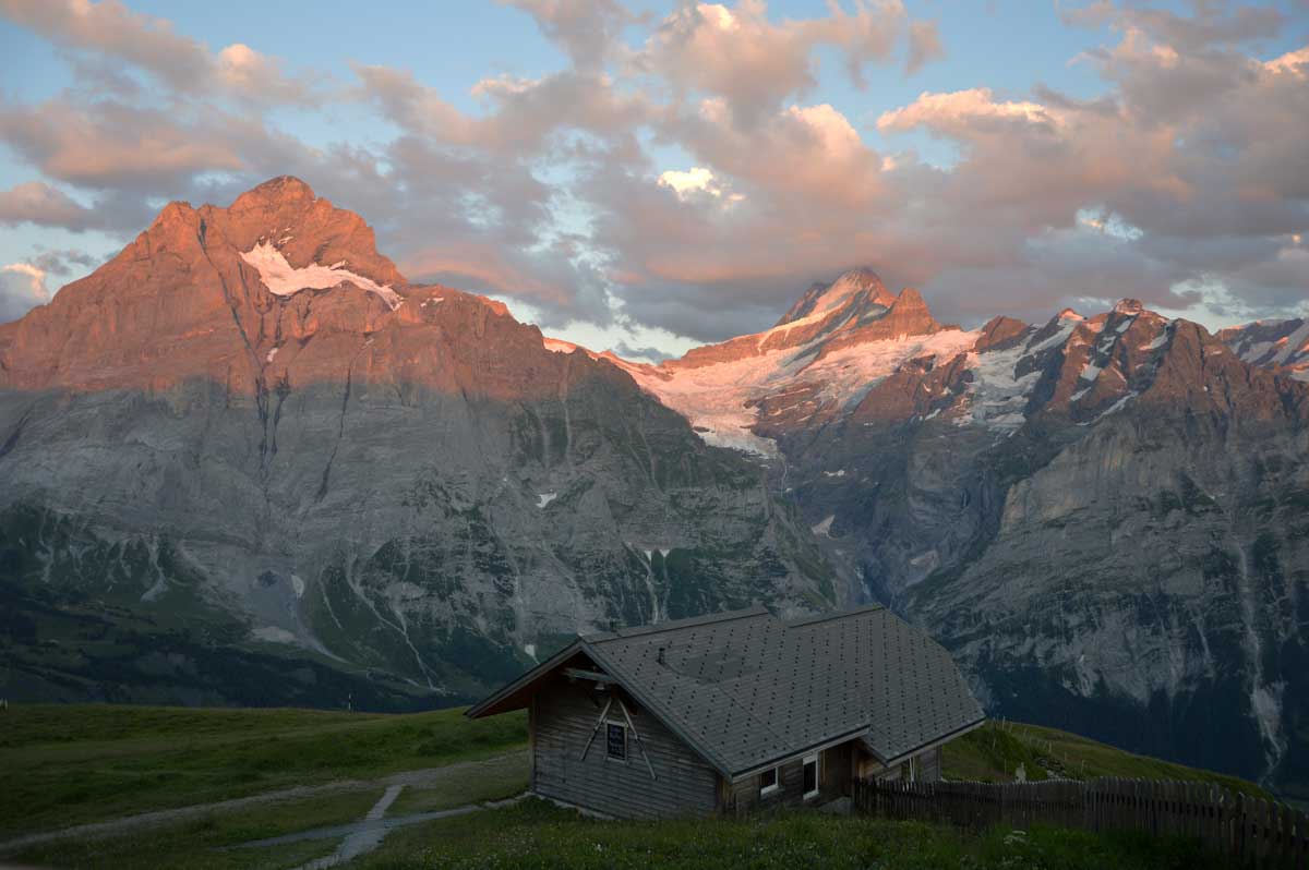 Là, c’est plus zinzin, non c’est carrément maso, même si la chaleur devient moins insupportable : Schreckfeld, 1979 m, et vous refusez toujours de voyager par les airs ? Bon, là on veut bien comprendre car c’est à partir d’ici que vous nous rencontrez enfin, nous vos meuh préférées. Allez un dernier effort, et vous voici enfin à First, qui se trouve selon les versions à 2164 ou 2186 mètres d’altitude. On admet que vous avez mérité le panorama qui se transforme à mesure que le soleil se couche. Oui on peut le dire, c’est magnifique, grandiose, merveilleux, d’ailleurs c’est pour ça que First, c’est fameuhhh !