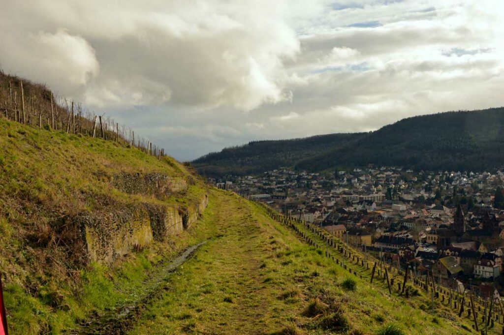Première alsabalade dans le Haut-Rhin avec un nouvel animateur. Thème du jour : la vigne et les grands crus sur les hauteurs de Guebwiller, avec ses superbes plantations en terrasses. Et enfin la visite et la dégustation des vins fabriqués par Dirler-Cadé à Bergholtz, pour mettre des saveurs sur toutes ces belles vues.