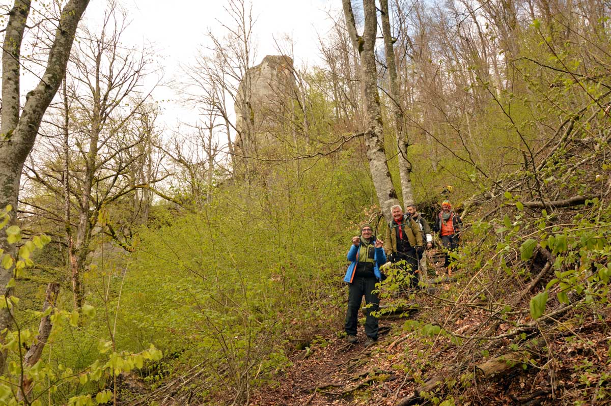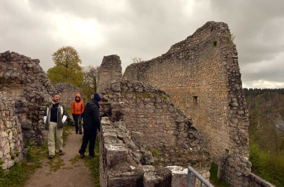 Et le château en ruines, tic-tic, tic-tic, c’est le Falkenstein, tic-tic, tic-tic, et voilà une orchidée bleue comme le Danube, tic-tic, tic-tic, et un point de vue avec point de vue, tic-tic, tic-tic… Je mets une couche, j’enlève une couche, je rêve d’une douche, attends je me mouche… Ben quoi, non je ne prends pas la mouche ! Je vais dîner au château du Wildenstein,moi ! Enfin au self quand même, puis je pars me coucher dans la Tour Est, rêver d’un voyage au printemps, tut-tut, tut-tut, et sur cette célèbre valse, tut-tut, tut-tut, partir au pays des songes, tut-tut, tut-tut, gambader dans un rêve, tut-tut, tut-tut, valser jusqu’au bout de la nuit dans ma robe qui s’envole, tut-tut, tut-tut, avec un cavalier charmant qui me soulève comme une plume (enfin j’ai des doutes, il regrettera plus tard avec son lumbago), tut-tut, tut-tut,… Réveil dans la nuit, fait froid, il neige et… Hein, j’ai ronflé ? Moi ? Ça doit être le rouge ! hps-hps, hps-hps…