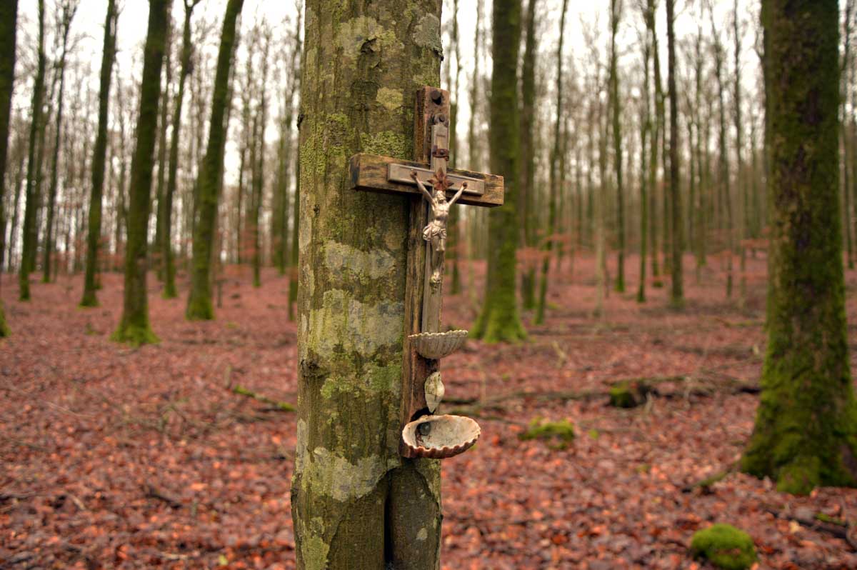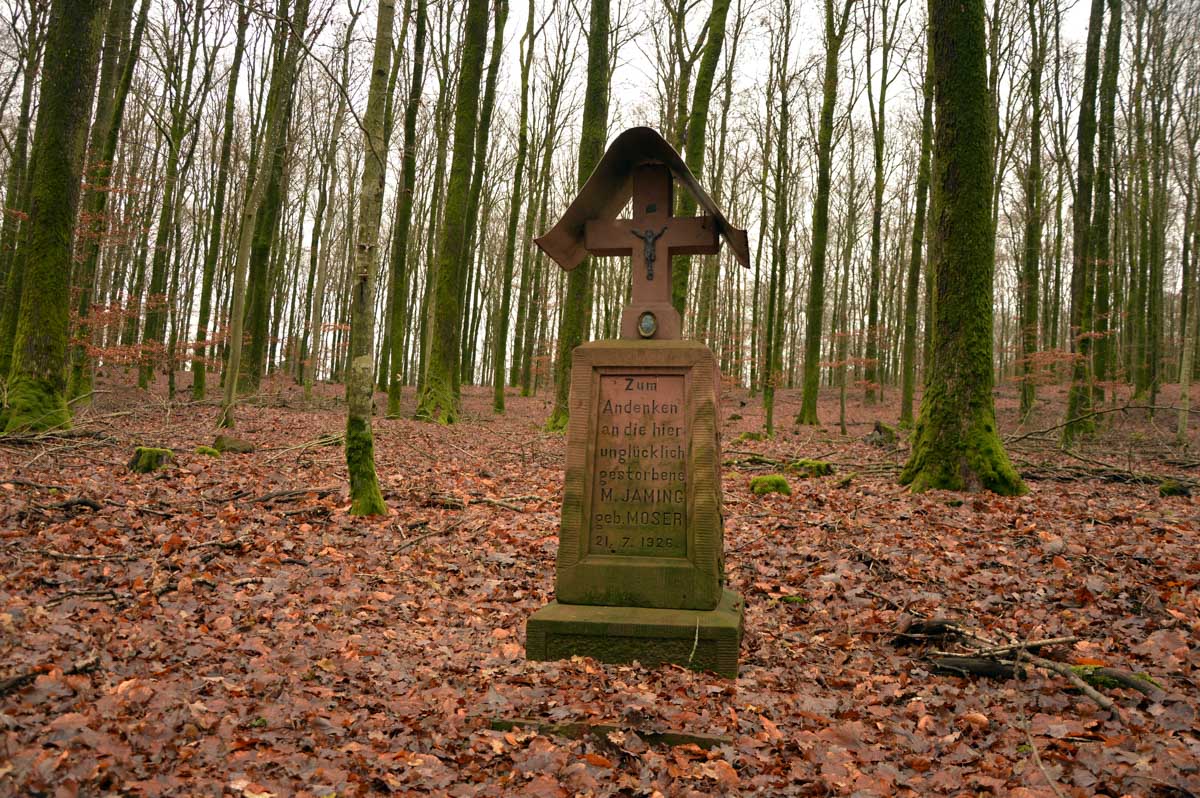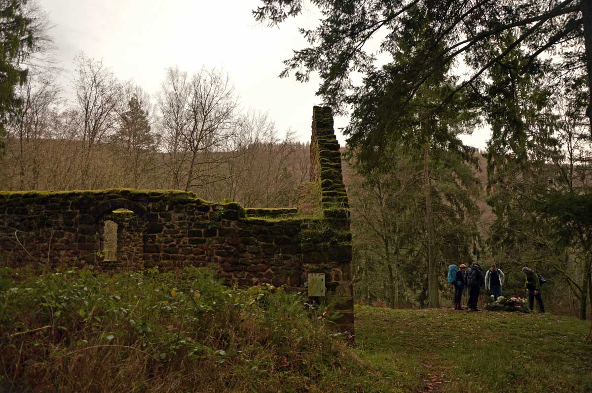 Et tout bien considéré, la Heidenkirche, l’église des païens, ce serait pas un oxymore ? (contente d’enfin le placer, celui-là). Alors s’impose la question : pourquoi ? Oui pourquoi ? C’est là que dans un bon polar le chapitre finit et que le prochain commence. Comme on n’est pas dans la grande littérature, je te dirais qu’un riche habitant anti-chrétien faisait tuer les prêtres et détruire les églises. Or celle de Birbach, village disparu au 14ème siècle (donc en 600 avant Karina-Iris), a résisté, demeurait très croyante, et le mec a voulu la détruire. Mais au premier coup de pioche, il s’est pris les foudres célestes dans la tronche et les enfers ont tout englouti, village, homme riche, même de pauvres écureuils je suppose. Tout sauf l’église… Moi je me dis que si on s’était pas perdus le matin pour le parking, peut-être qu’on aurait vu l’église avant qu’elle soit en ruines mais tant pis.