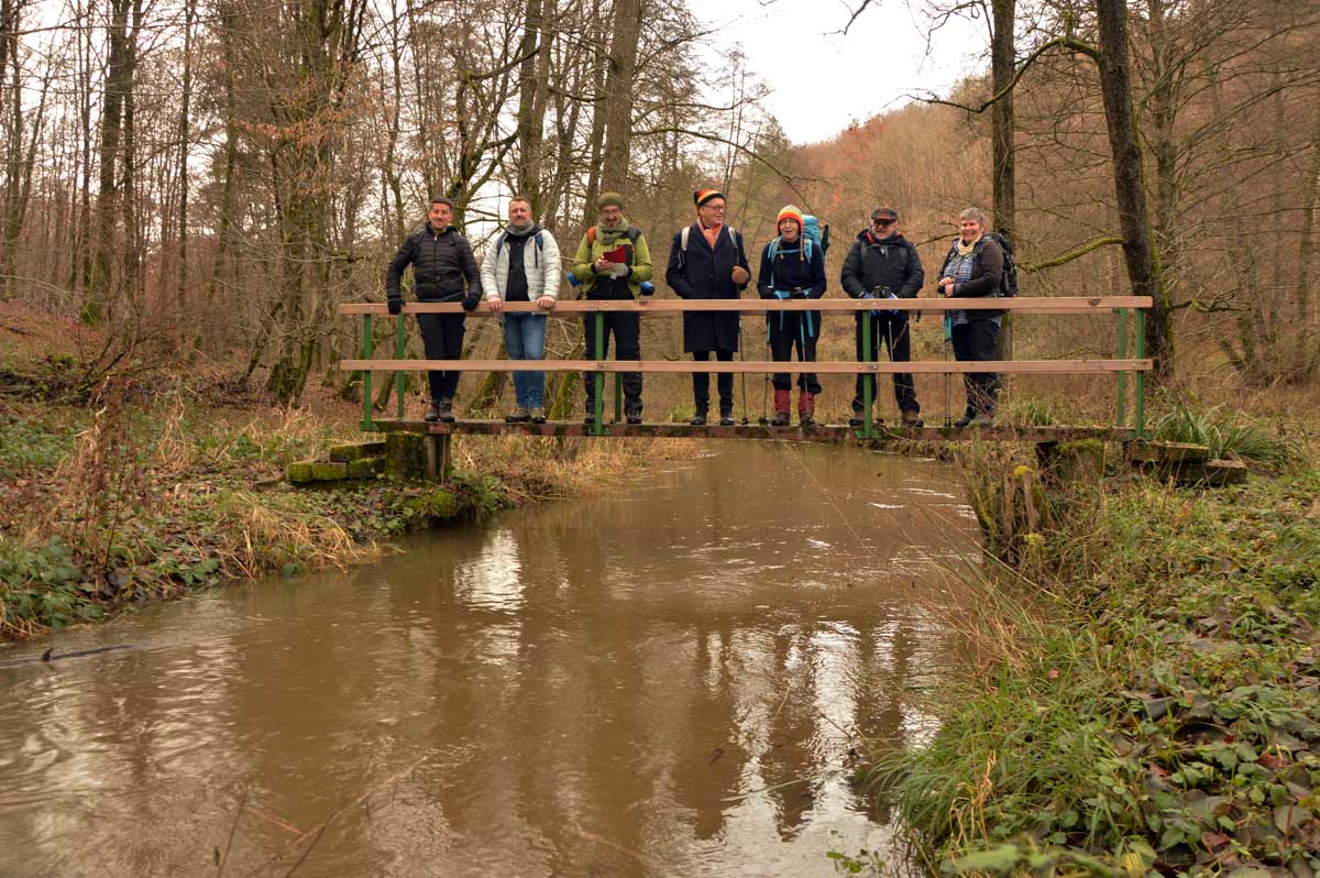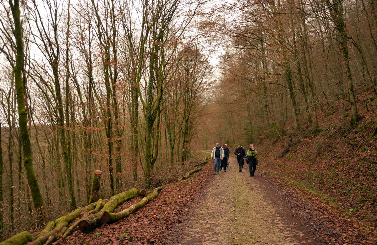 Nouveauté : le patelin qui n’existe pas ! Non mais des fois. Tape Speckbronn dans ton GPS et tu verras, il trouve pas. Alors nous voilà éparpillés sur différents parkings avant de nous donner rendez-vous à Soucht pour enfin trouver le lieu de départ. Une heure de retard ! J’aurais bien crié « remboursez ! » mais j’avais encore rien payé… Fallait que ça tombe sur moi… On fera mieux le prochain coup.
