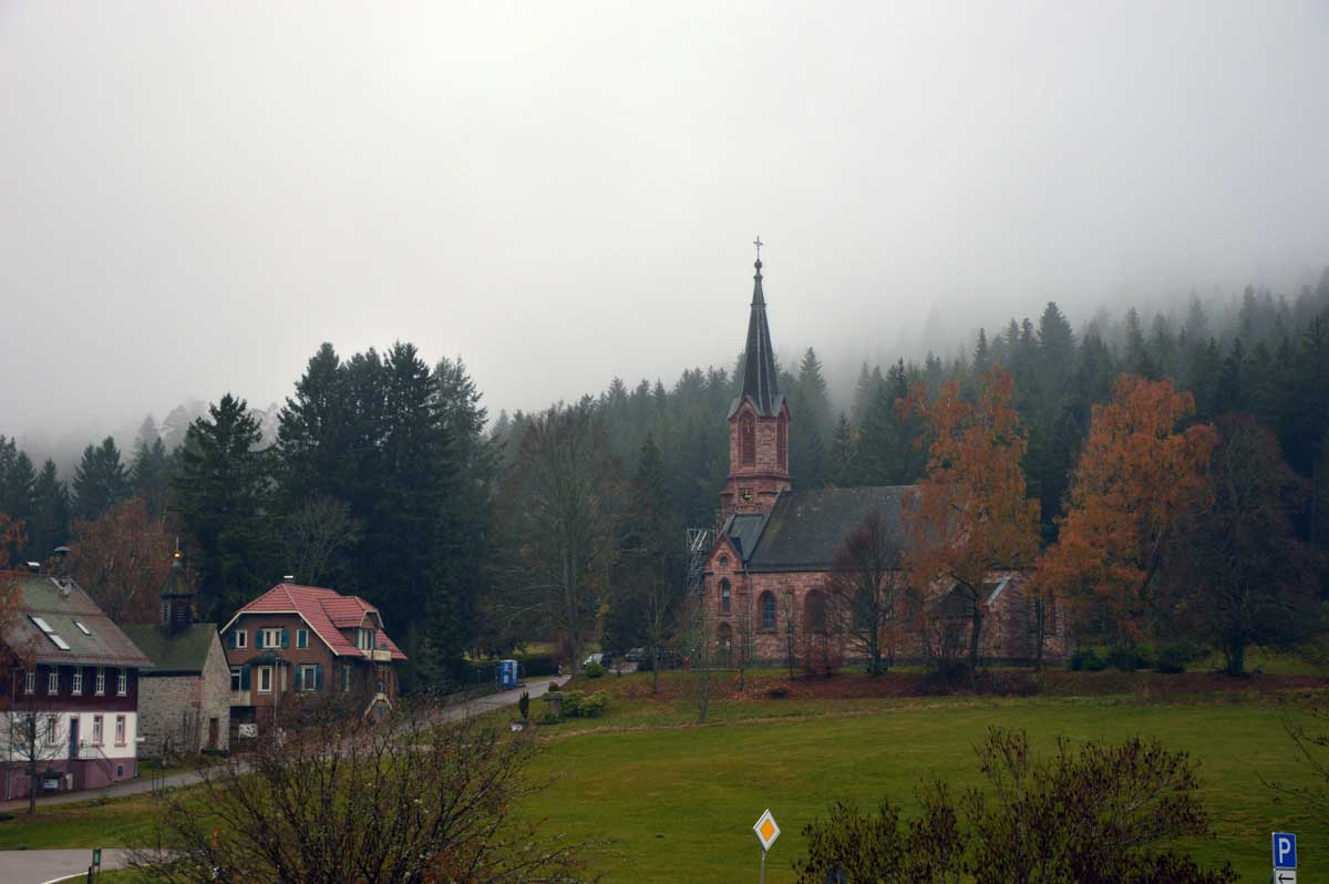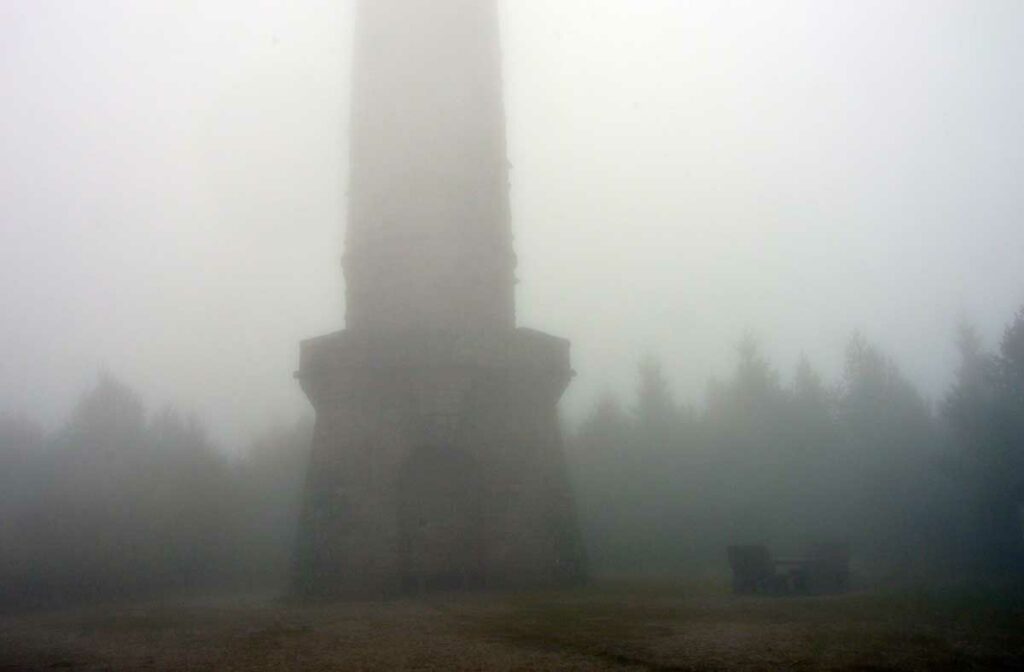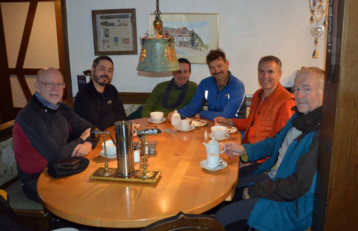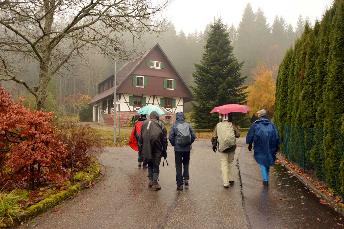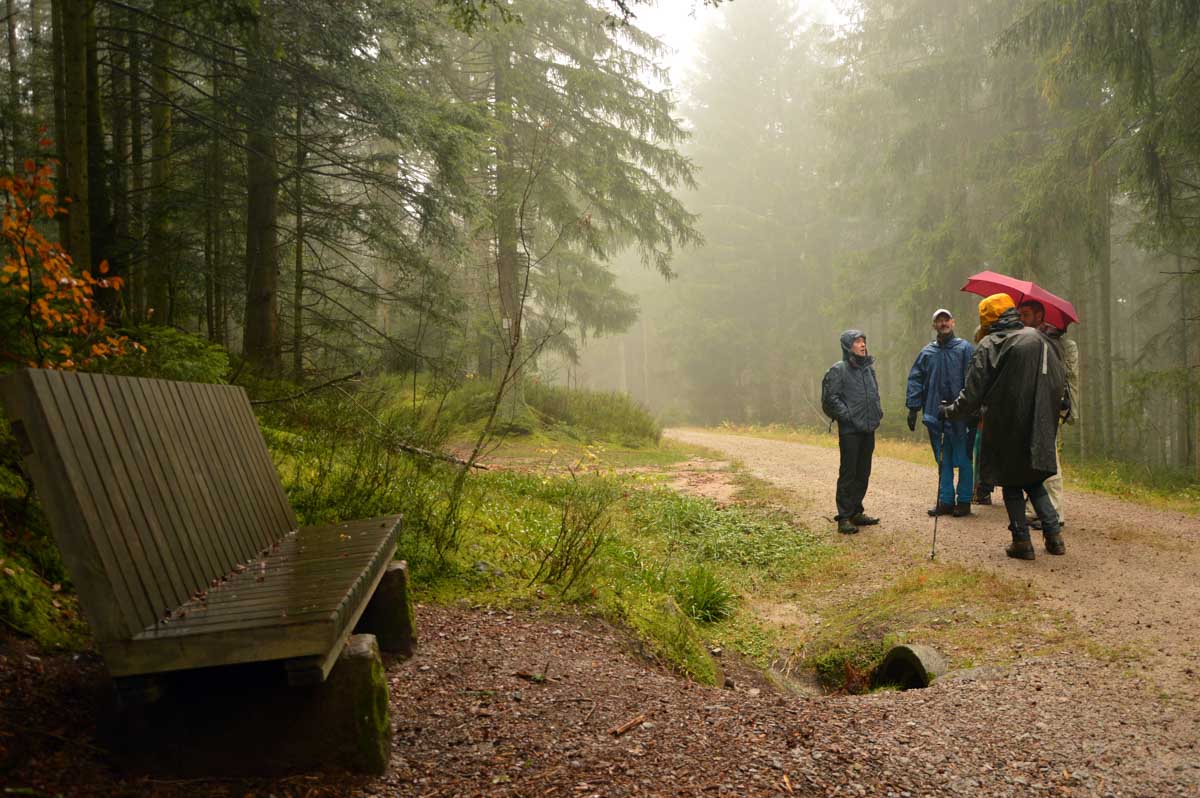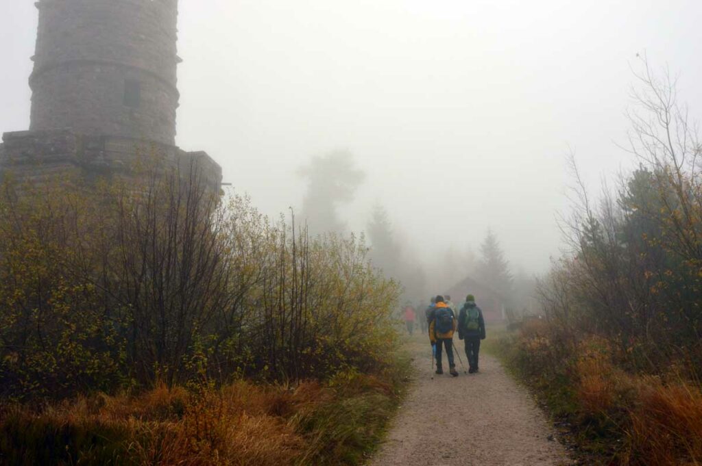 Dans le brouillard, voici Herrenwies, puis la pause aux Amis de la Nature de la Badener Höhe avec un premier dessert. Ensuite, la Badener Höhe elle-même avec le Friedrichsturm et un retour à Herrenwies, puis à Sasbachwalden pour un Kaffee-Kuchen !