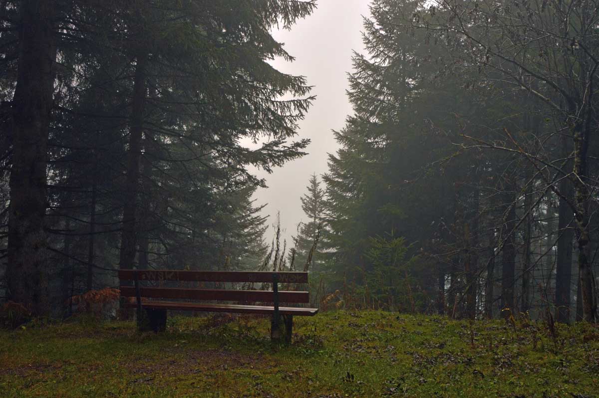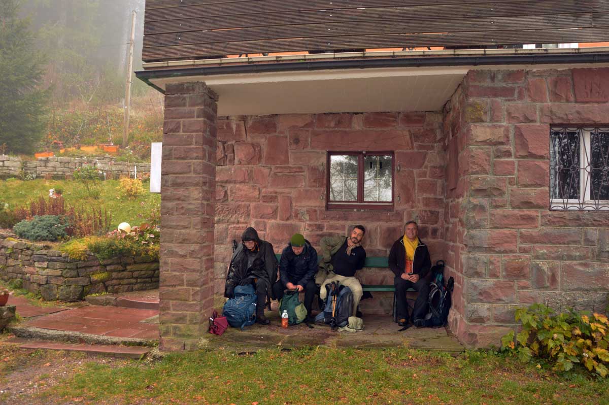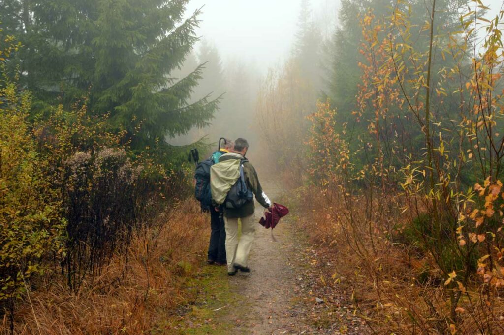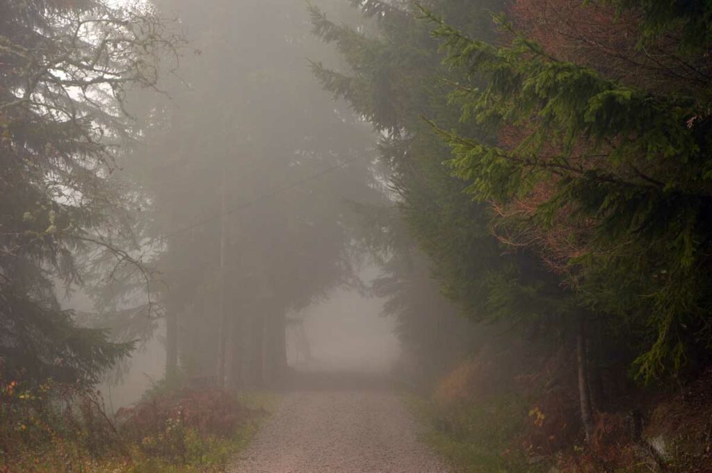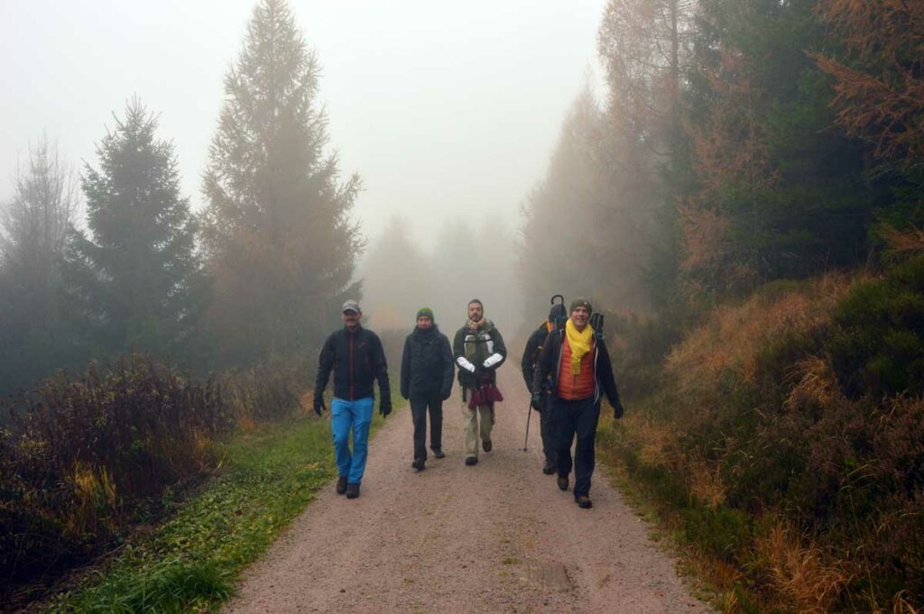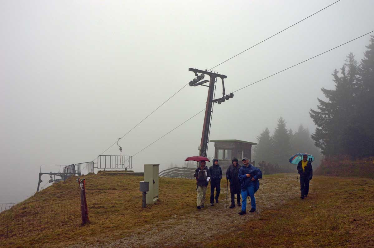 Dans le brouillard, voici Herrenwies, puis la pause aux Amis de la Nature de la Badener Höhe avec un premier dessert. Ensuite, la Badener Höhe elle-même avec le Friedrichsturm et un retour à Herrenwies, puis à Sasbachwalden pour un Kaffee-Kuchen !