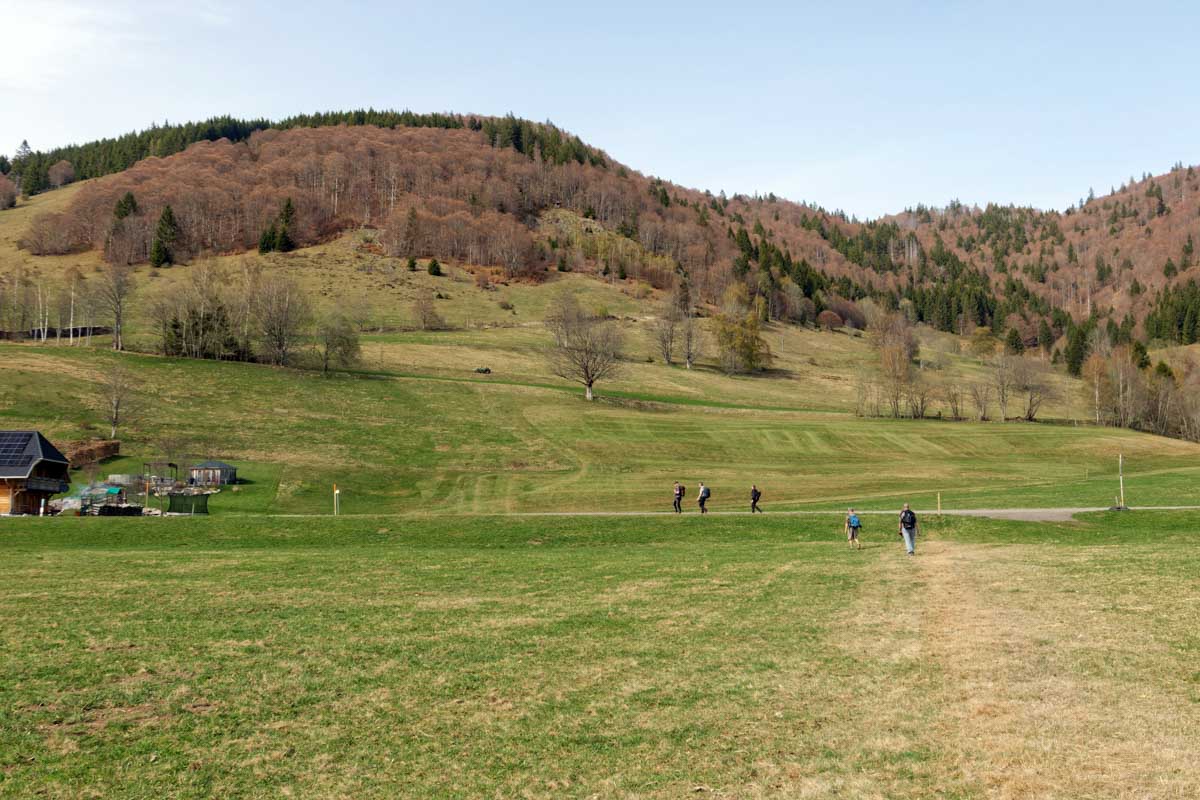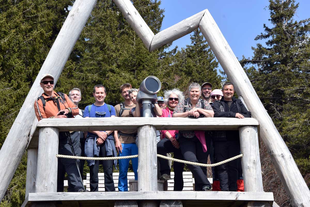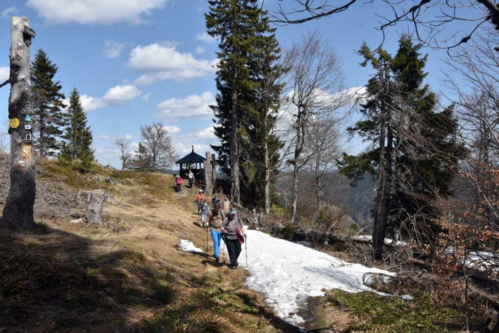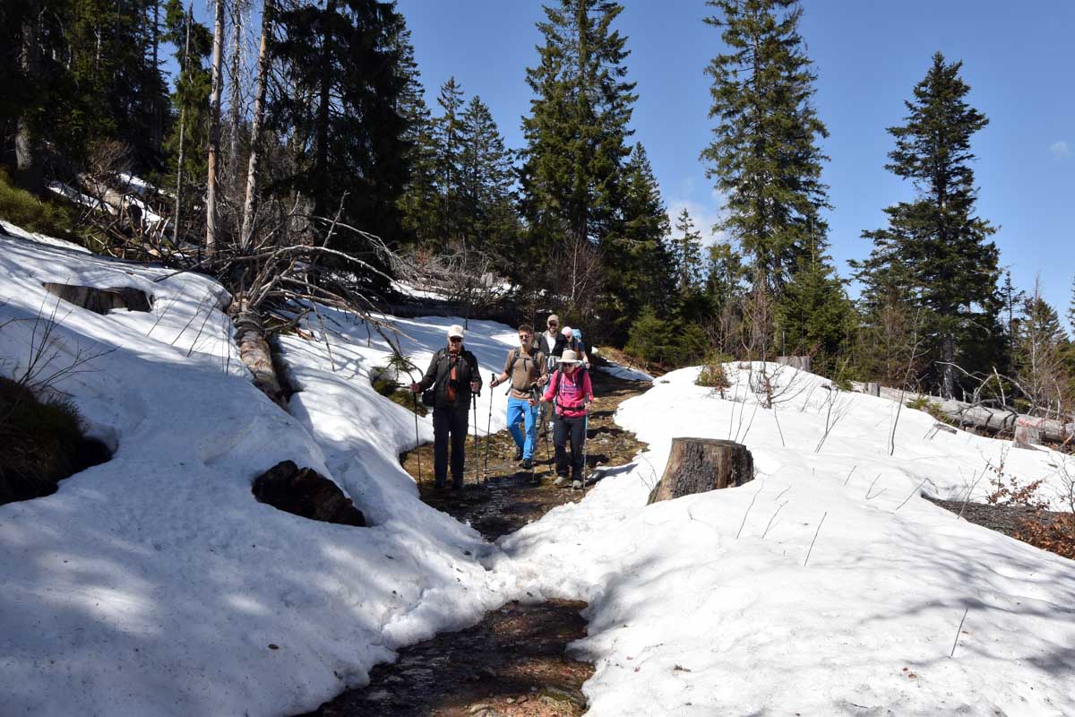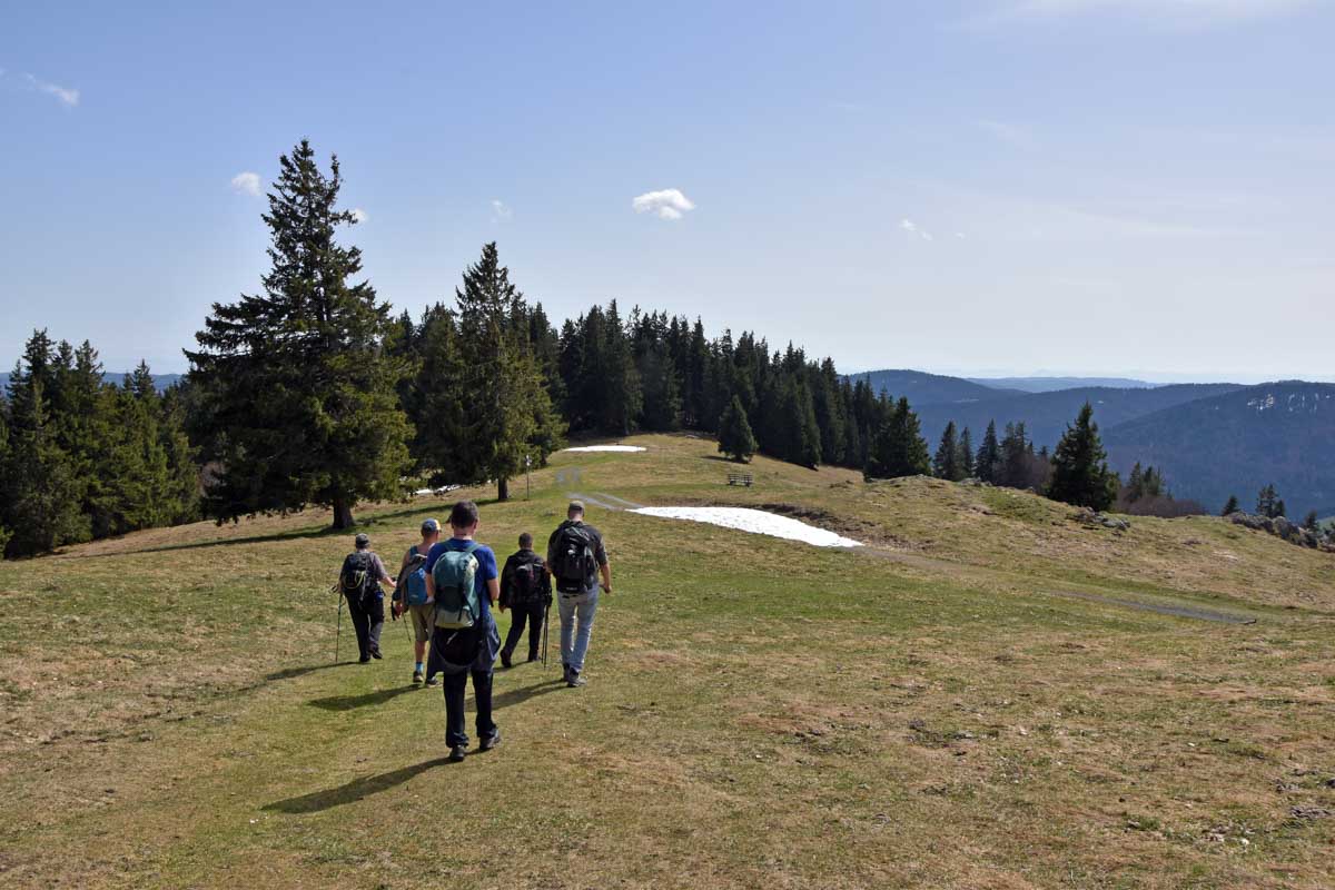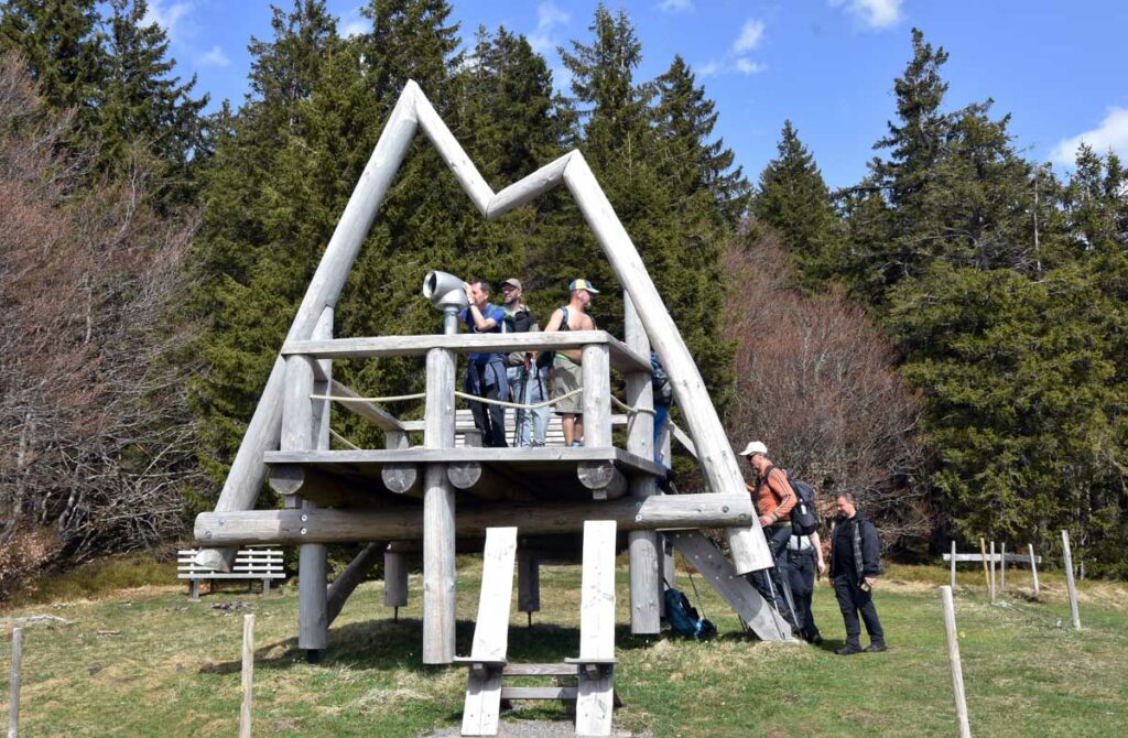 Au départ de Bernau-Hof, montée dans un décor alpin vers le Herzogenhorn (1414m) en profitant du grand soleil pour une vue sur les Alpes et sur la Forêt-Noire, dont le Belchen. Après la descente dans la neige, montée au Spiesshorn puis au Petit Spiesshorn, pour de nouvelles vues sur le dôme de Saint-Blaise et les Alpes, avant la plateforme d’observation.