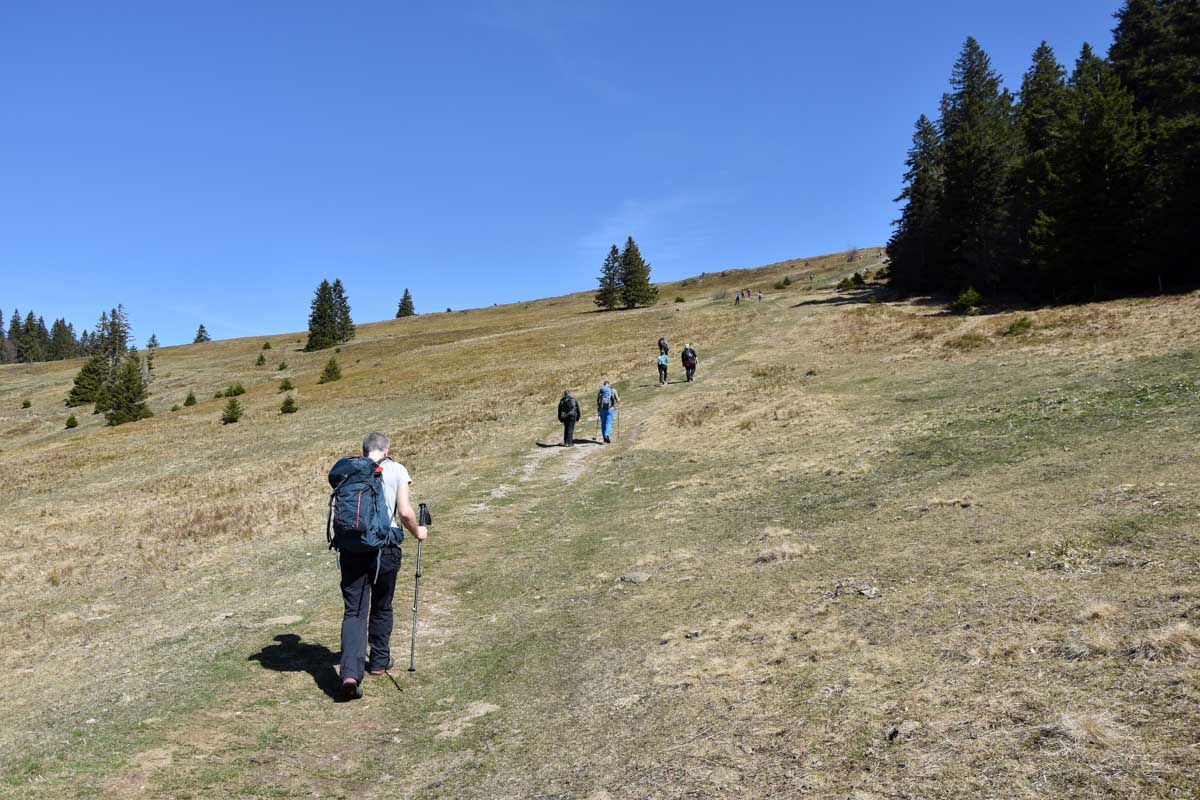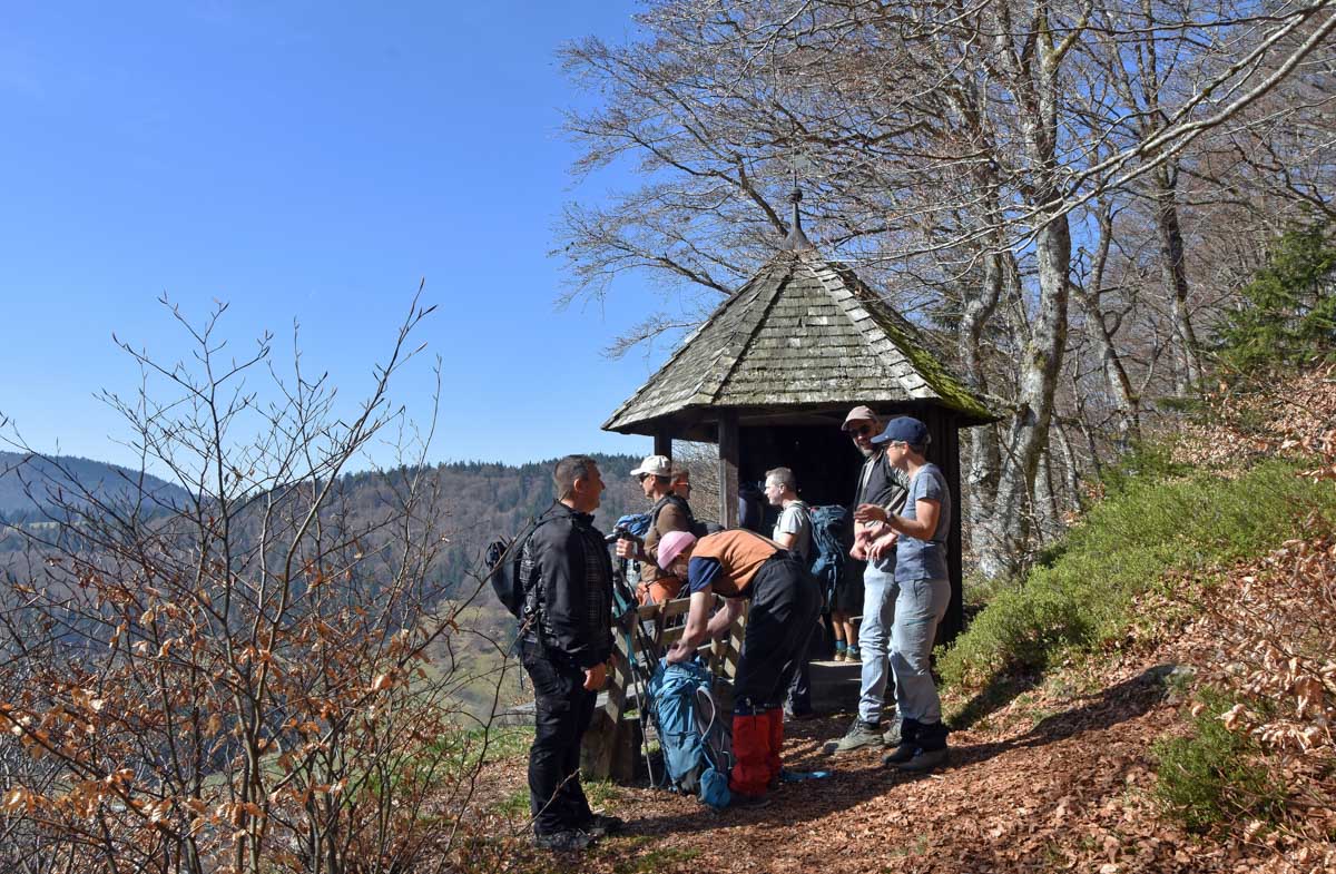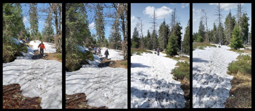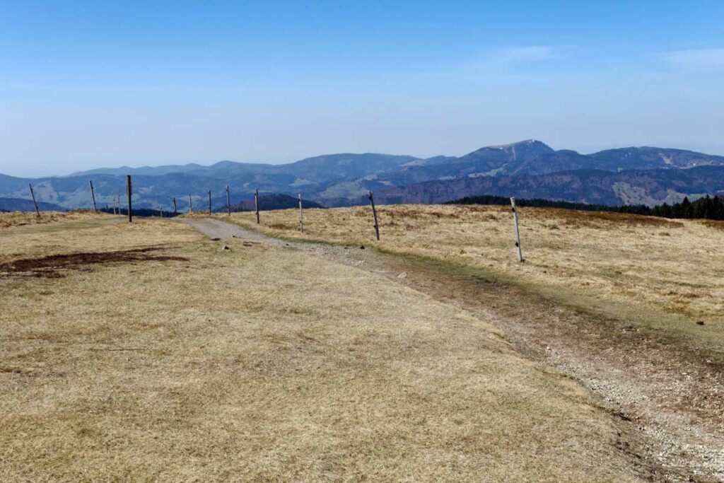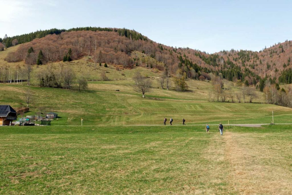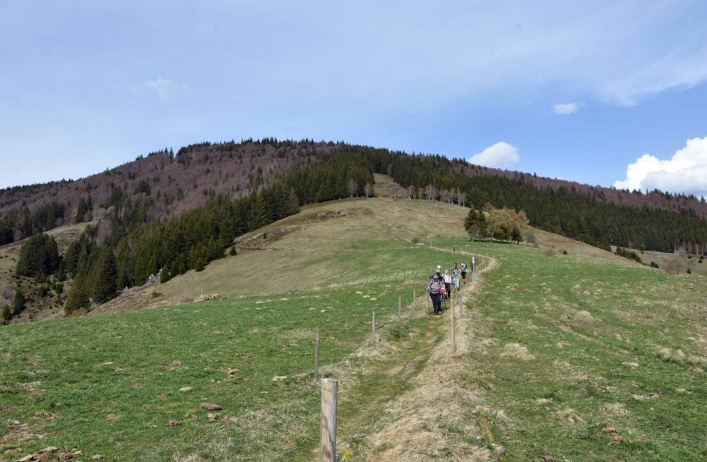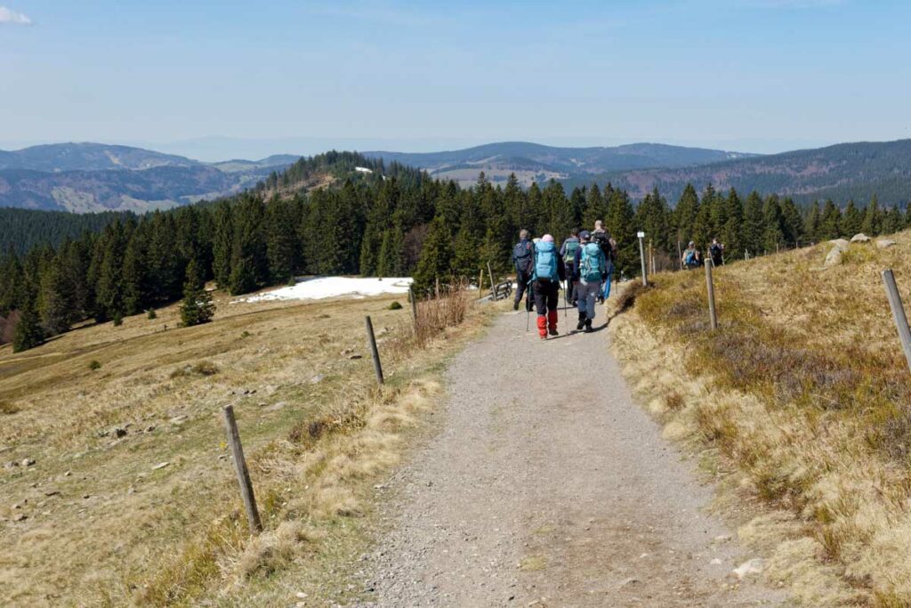 Au départ de Bernau-Hof, montée dans un décor alpin vers le Herzogenhorn (1414m) en profitant du grand soleil pour une vue sur les Alpes et sur la Forêt-Noire, dont le Belchen. Après la descente dans la neige, montée au Spiesshorn puis au Petit Spiesshorn, pour de nouvelles vues sur le dôme de Saint-Blaise et les Alpes, avant la plateforme d’observation.