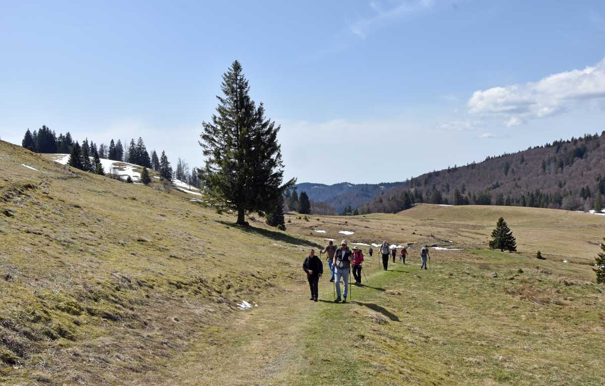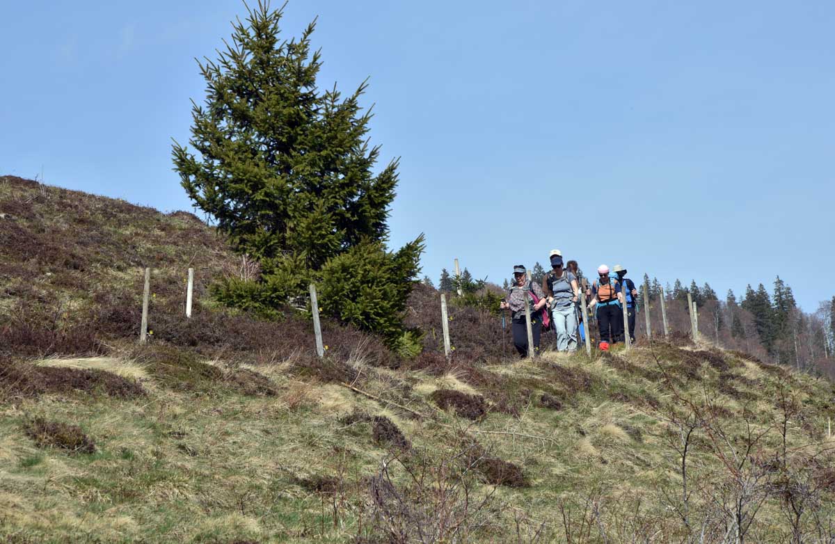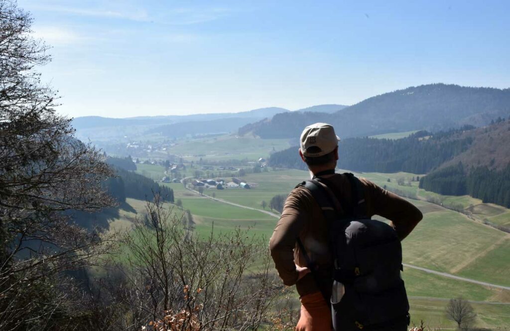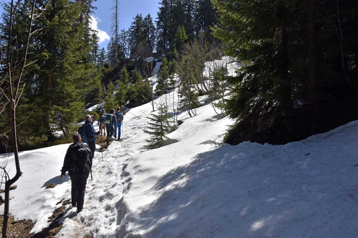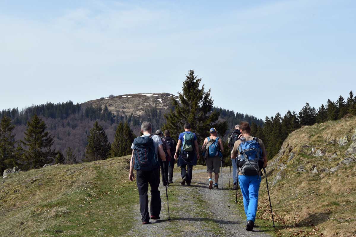 Au départ de Bernau-Hof, montée dans un décor alpin vers le Herzogenhorn (1414m) en profitant du grand soleil pour une vue sur les Alpes et sur la Forêt-Noire, dont le Belchen. Après la descente dans la neige, montée au Spiesshorn puis au Petit Spiesshorn, pour de nouvelles vues sur le dôme de Saint-Blaise et les Alpes, avant la plateforme d’observation.