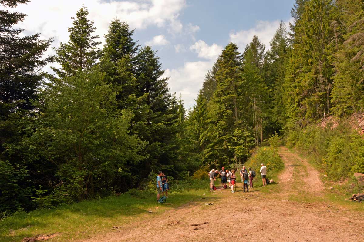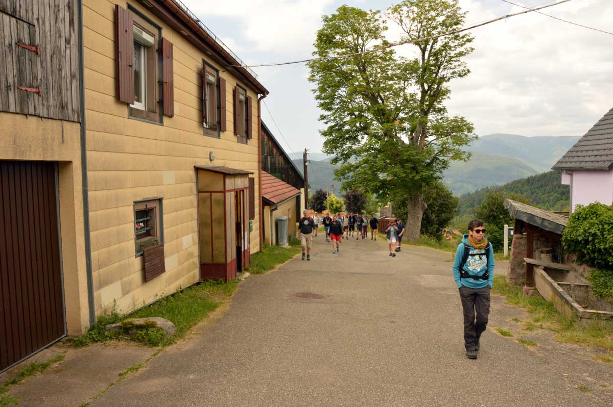 En prélavage, nous nous retrouvâmes à Hohrodberg à seize. Ou à seize à Hohrodberg, OK, mais si on pinaille, là, on n’y arrivera pas ! Le nom du lieu vient d’un lointain passé et se compose de Hoch et Roden, donc « haut défrichement » devenu Hoenrod. Clair, en Français ça le fait pas. Puis on a construit plus haut le village de Hohrodberg. Ça nous va bien parce qu’il restait moins à grimper à pied.