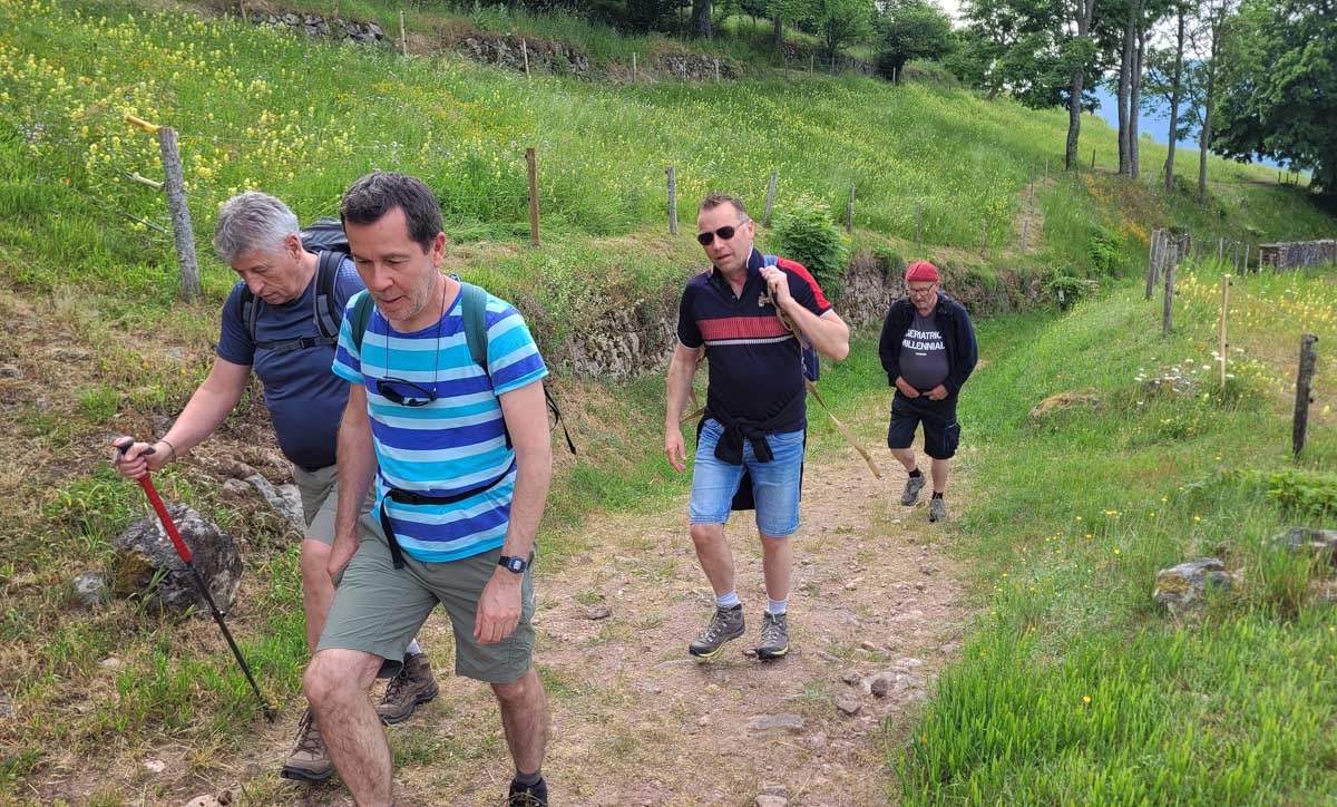 En essorage on vous pr… pardon, nous vous proposons nos t-shirts justement un rien trempés, et nous-même juste un peu essorés et ne pensant qu’à prendre notre pot de fin de randonnée sur la terrasse de l’Hôtel Panorama.