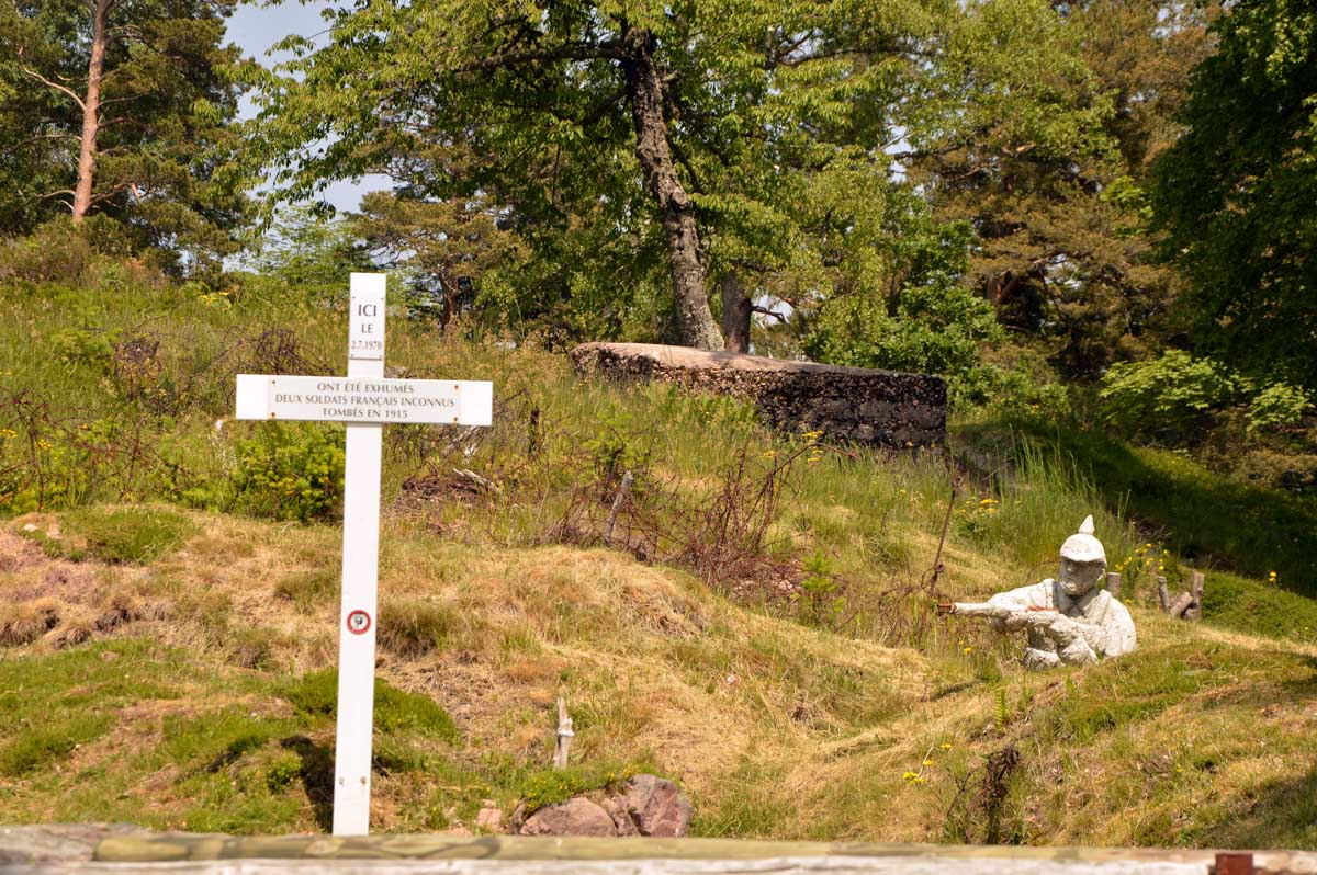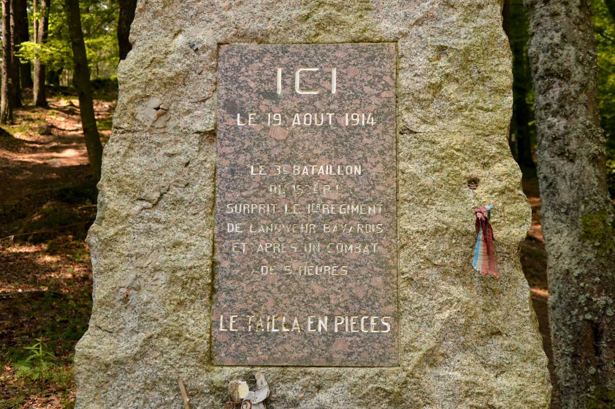 En rinçage, le cimetière du Baerenstall nous rappelait qu’ici voici un peu plus d’un siècle, c’était l’enfer quelle que soit la couleur de l’uniforme, et le Linge illustrait le combat bérets contre casques à pointe, et des milliers de vies arrêtées en plein élan. C’est toujours un étrange sentiment de se balader dans cette paisible forêt égayée de gazouillements, baignée d’un printemps agréable, mais peuplée de fantômes de toutes nationalités et religions qui ne veulent pas être oubliés. Puis cette épave d’un avion allié écrasé ici en 1945 nous rappelait qu’il y a eu une saison 2, en espérant qu’elle serait assez mauvaise pour qu’il n’y en ait pas une troisième… (c’était mon envolée lyrique du jour).