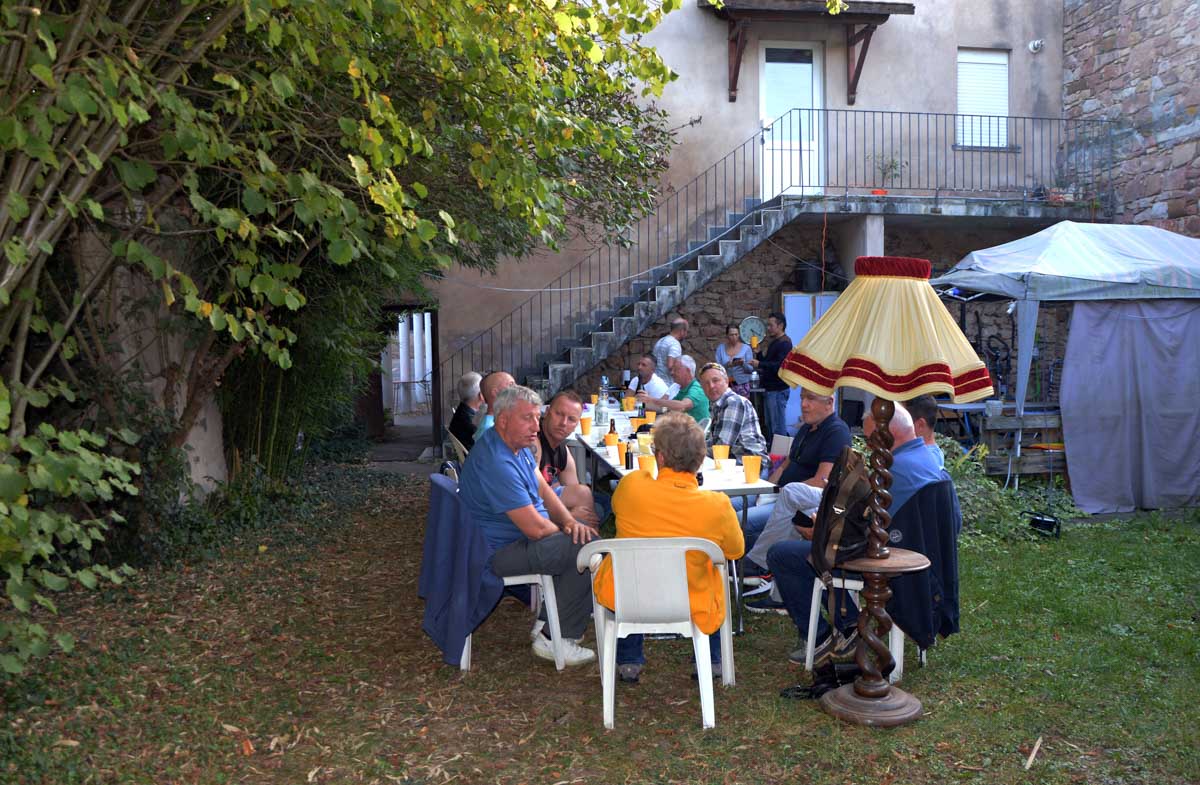Et puis, dans notre joli jardin secret, il y avait Christian à la confection des tartes flambées, et il ne fallait surtout pas interférer dans son travail, il y avait Françoise au four, il y avait Chantal, Rémy et désolé si j’en oublie, vraiment, pour l’aider, il y avait Gerald au service, et qu’est-ce qu’il en a servi des tartes flambées de toutes sortes…