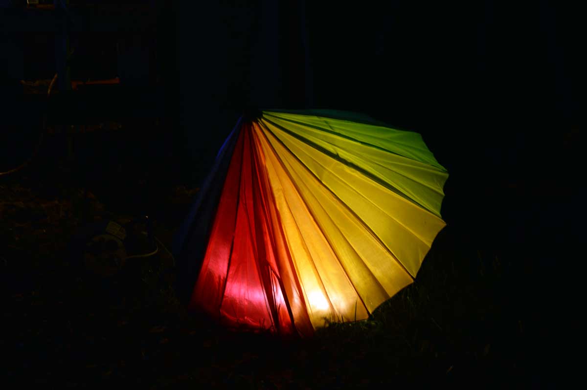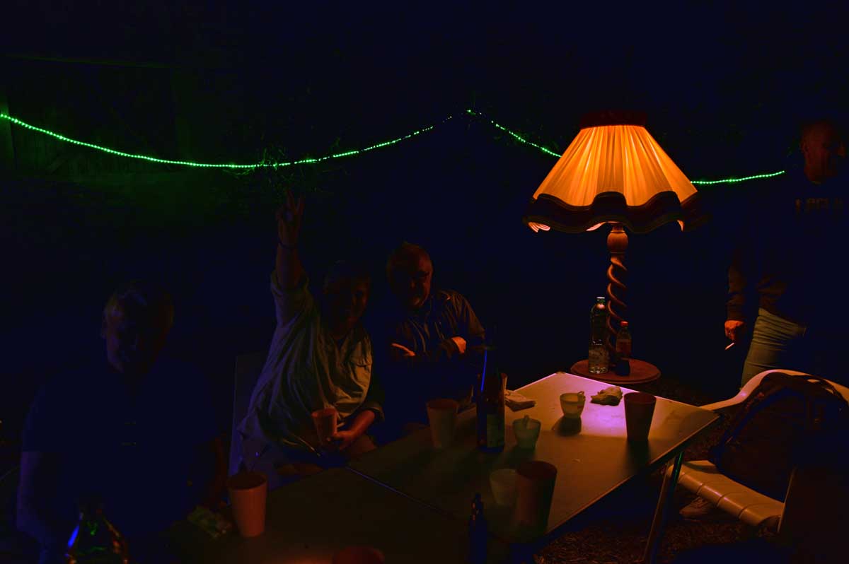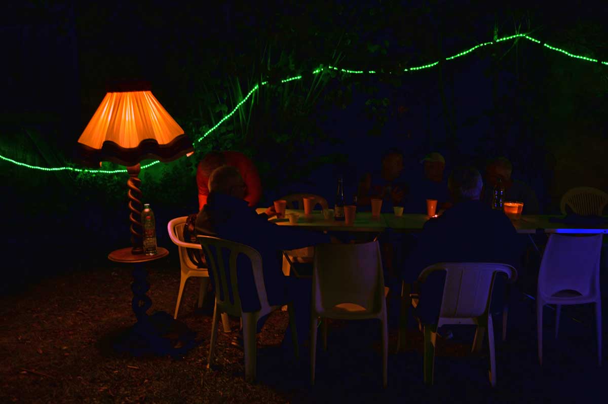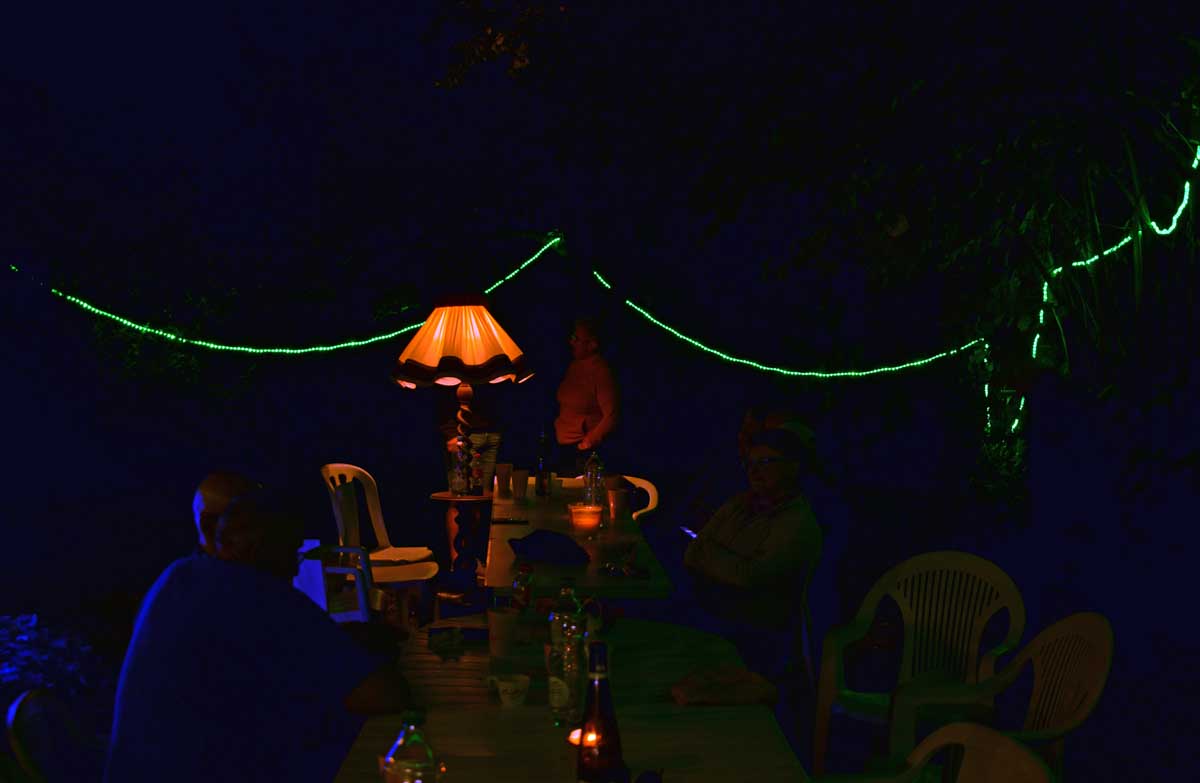Et puis, il y avait cette ambiance extraordinaire une fois la nuit venue, cette ancienne lampe sur pied qui a dû voir tant de vieux salons, tant de soirées, tant de Noëls et tant de réunions de famille, ah, si elle pouvait parler ; qui est là si décalée dans la jungle de notre mignon petit jardin. Ce soir ici, j’ai pensé à la scène du dîner si surréaliste du film « Arizona Dream », pareil, ambiance presqu’onirique. Qu’il est beau, ce film, qu’elle est belle cette scène…