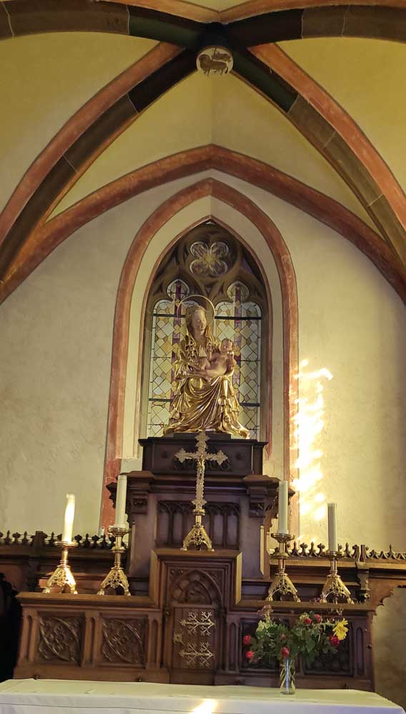 Et puis c’était culturel, cette promenade. Les séchoirs à tabac, la superbe église de Kogenheim, et bouquet final, la chapelle du Grasweg à Huttenheim.
