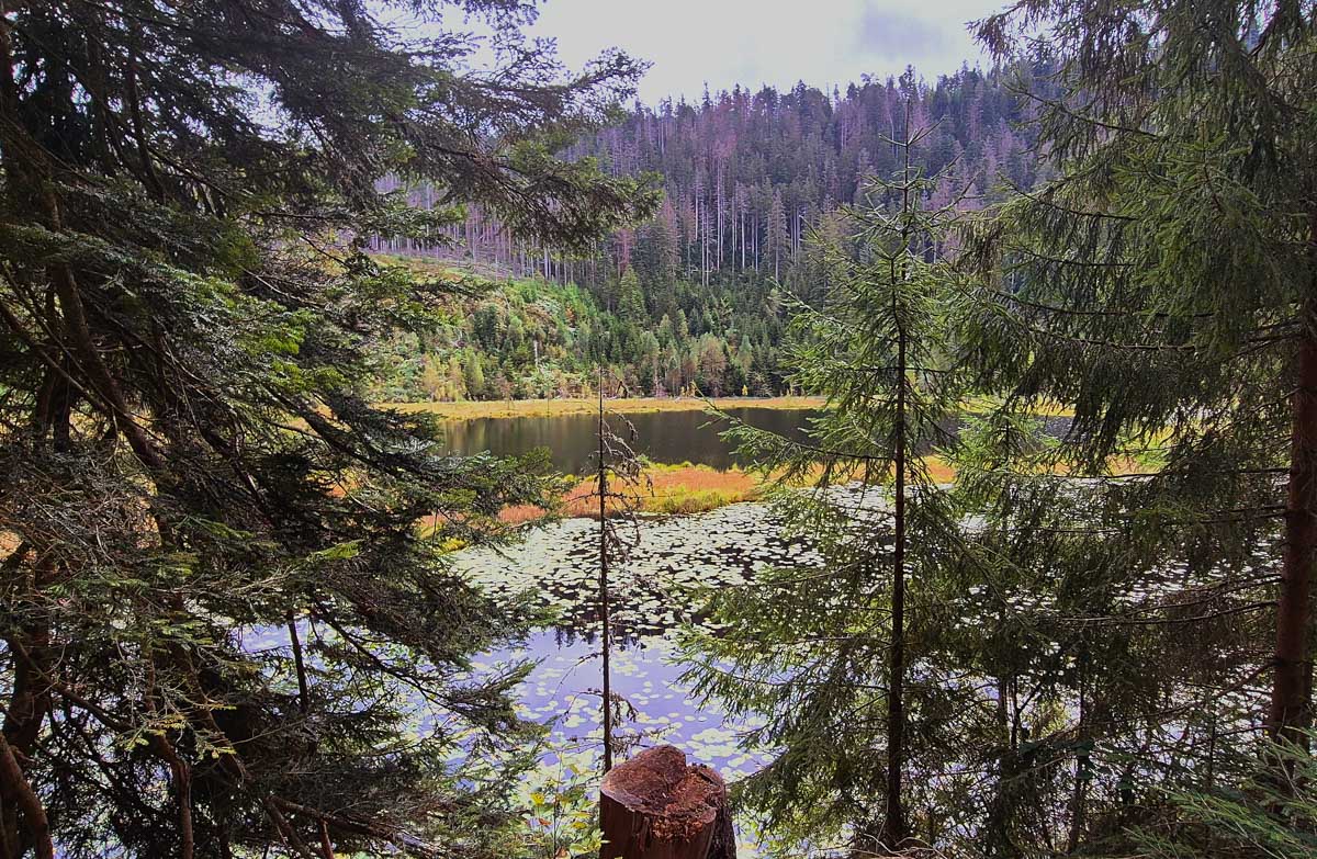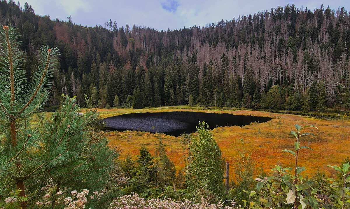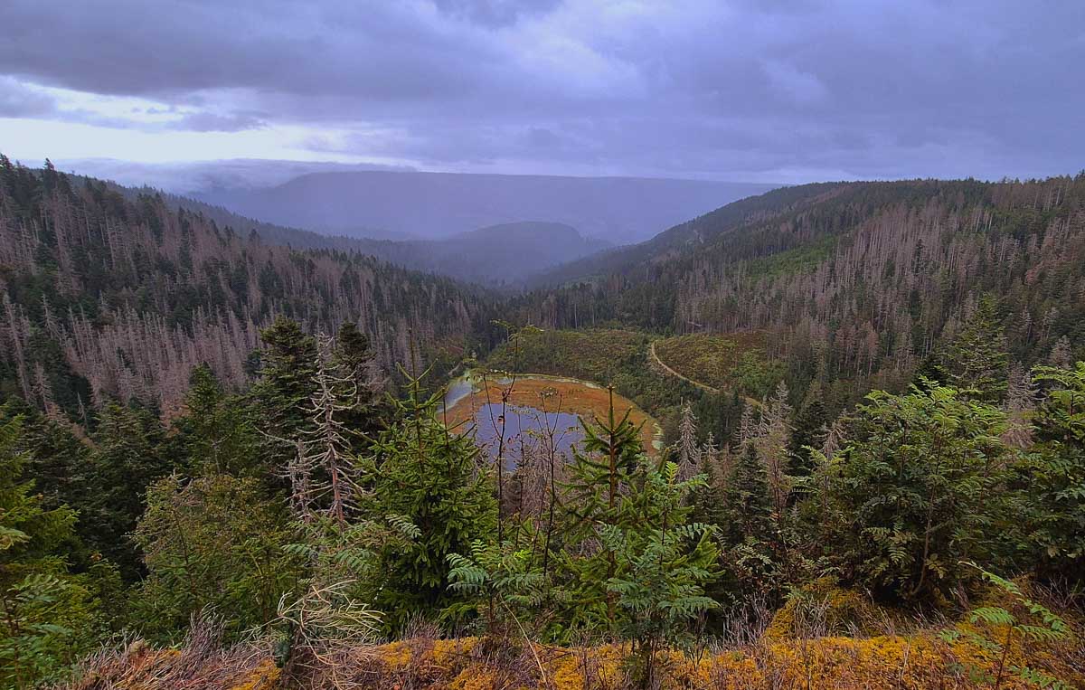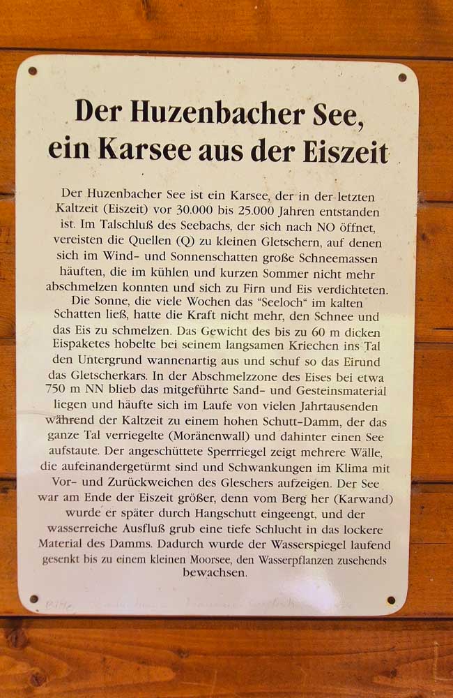 N’étant pas rancunière, ou si peu, je t’emmène tout de même dans les trente-mille ans en arrière. Imagine, on n’avait pas encore inventé les pharaons tellement c’est loin dans le temps. Et presque dix-mille ans avant qu’un artiste se mette à dessiner des bestioles dans la Grotte de Lascaux ! Eh ben là-haut en Forêt-Noire, le glacier a pris son temps pour construire un lac. S’il avait su qu’on allait l’appeler Huzenbacher See, il se serait peut-être donné moins de mal. Nous on a le Lac Vert, le Lac Blanc, le Lac de Blanchemer… Non là, Huzenbach, c’est simple, c’est plus facile à prononcer dans un éternuement.