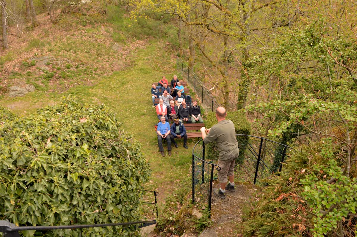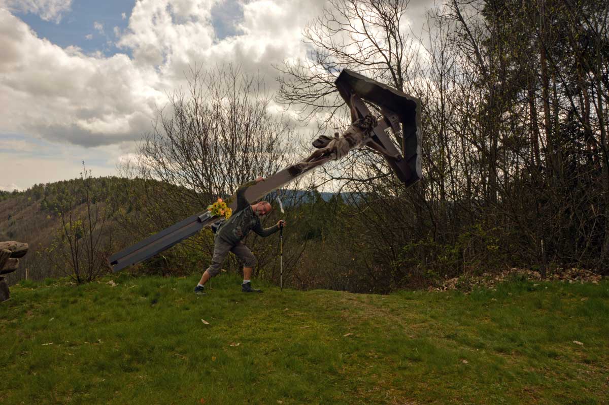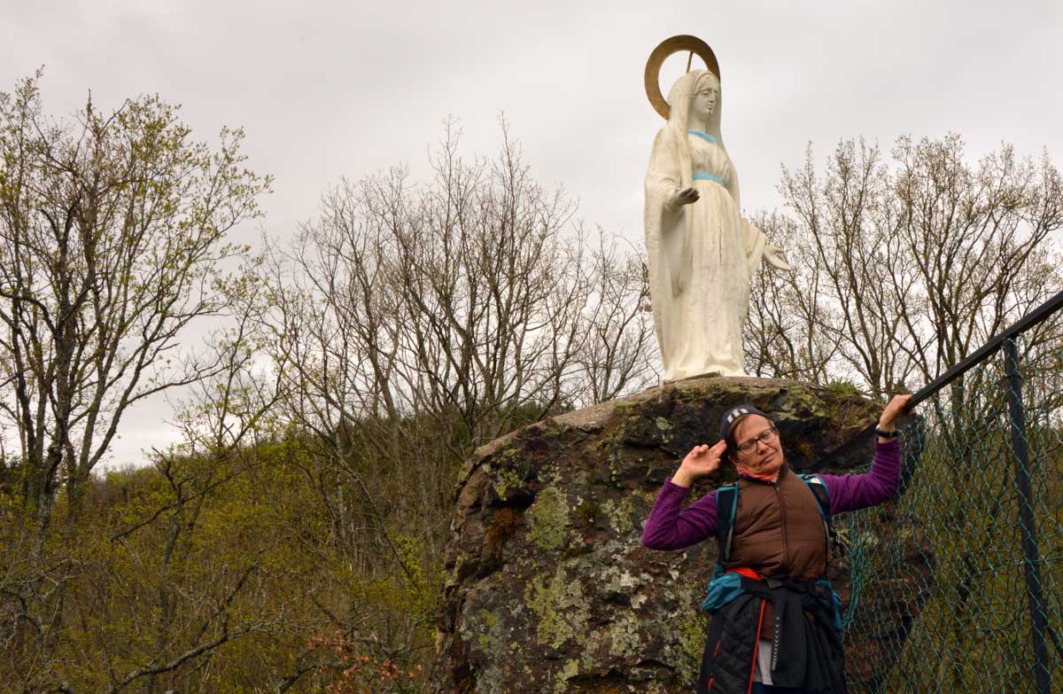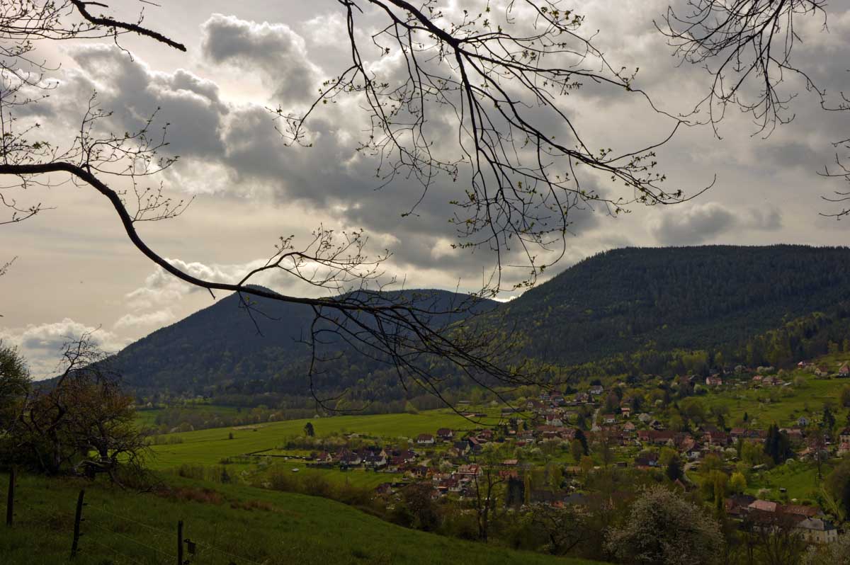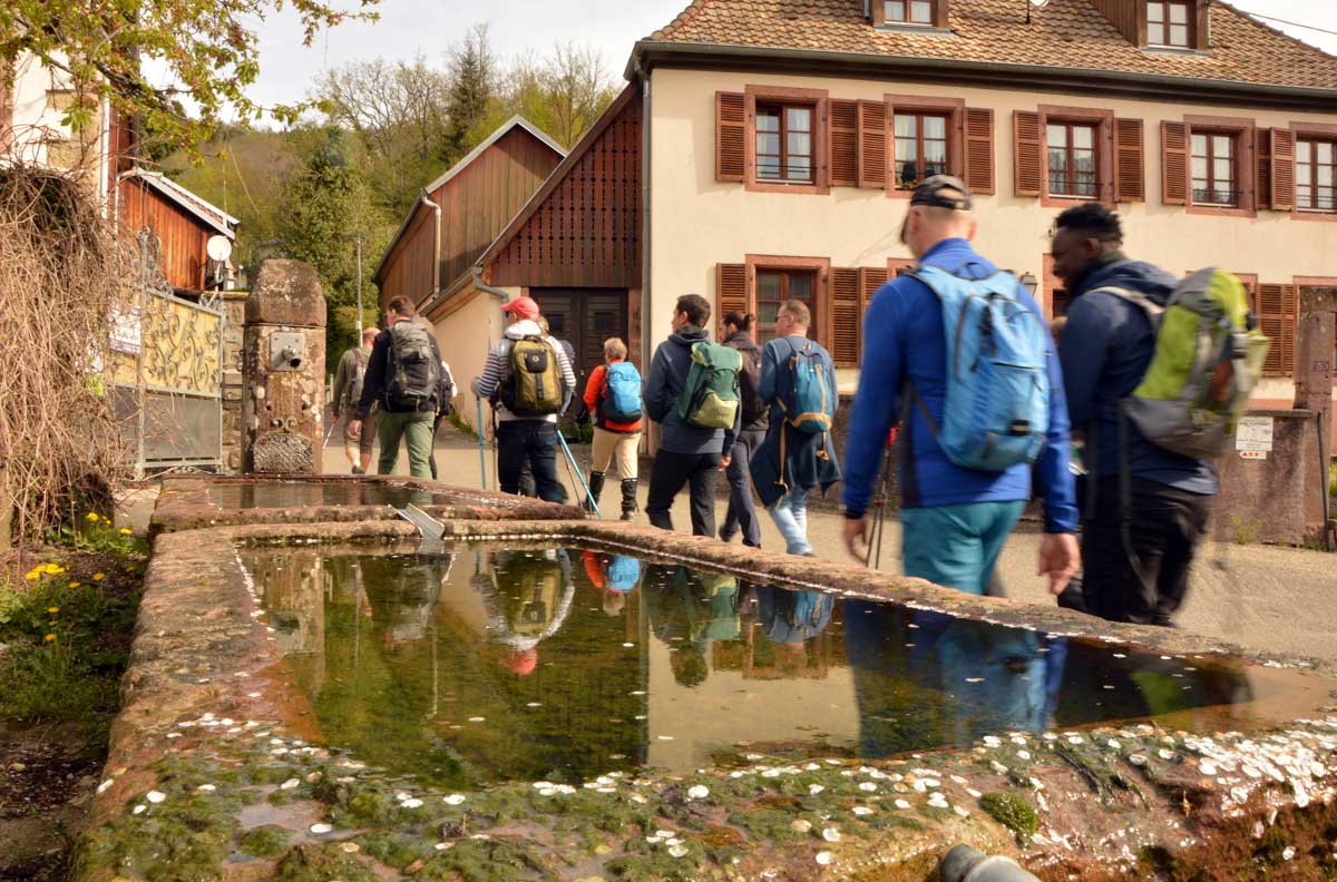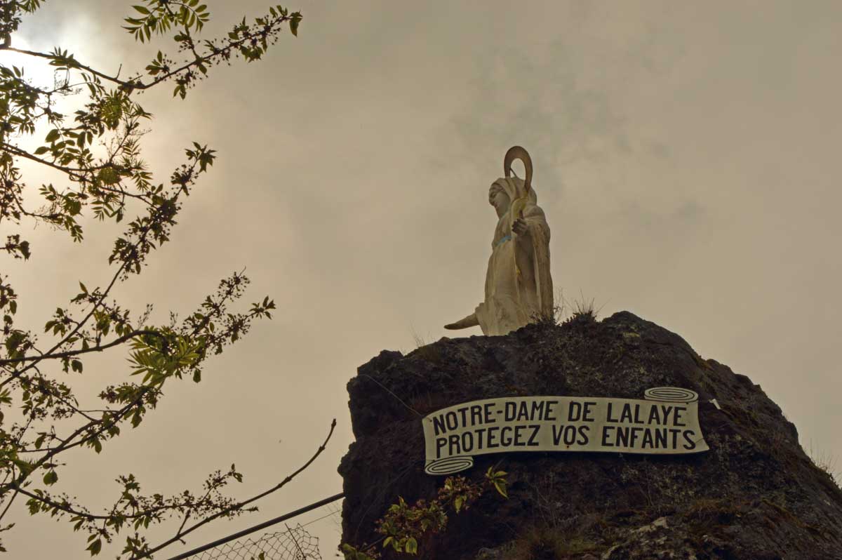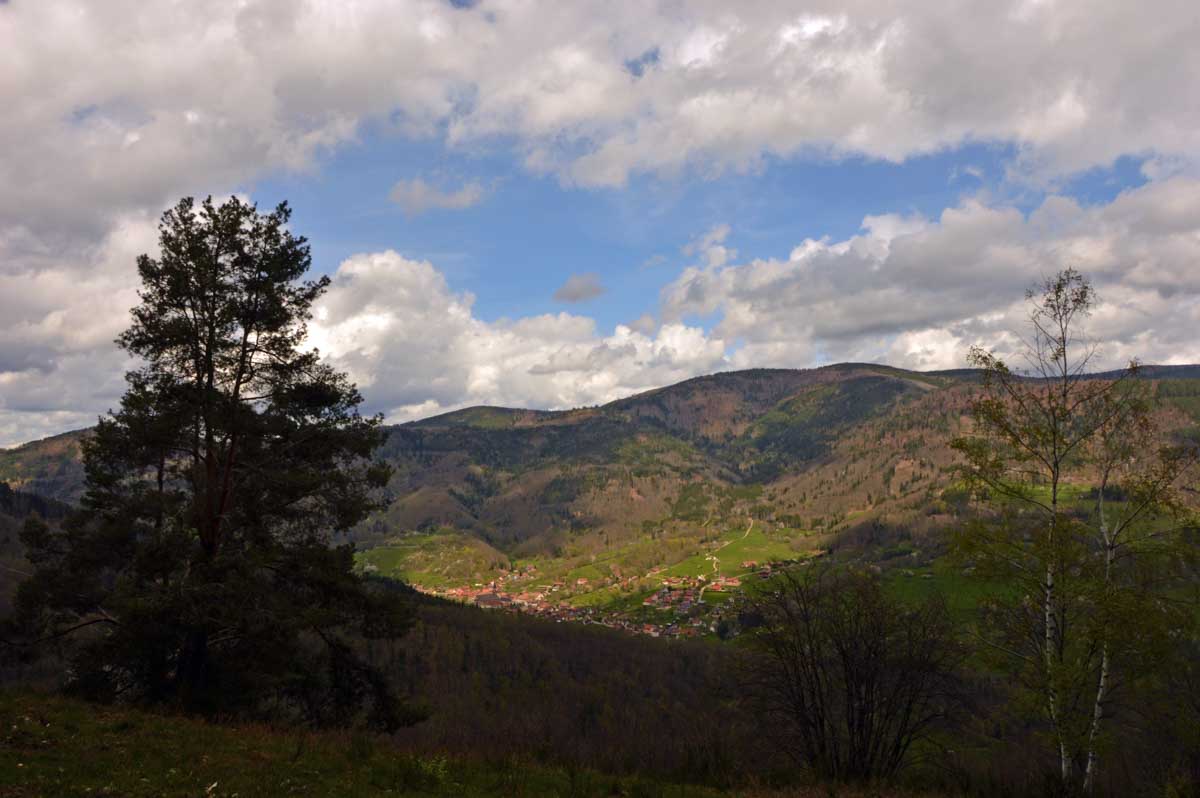 On m’a dit que Sainte-Aurélie patronnant la paroisse, en 1865 le curé de Lalaye commanda une statue de l’Aurélie en question et quelle ne fut pas sa surprise lorsqu’il reçut en retour une statue de la Vierge ! Il remarqua tout de suite la différence, après tout c’était son boulot. Pas rancunier, il a dû se dire que pour protéger le village, ce n’était pas mal non plus, et sitôt pensé, il installa la Vierge sur un rocher dominant toute la Vallée du Giessen. En 1933, on ajouta une chapelle en forme de grotte de Lourdes, mais construite en béton armé, et voilà le travail ! Vous me direz enfin que pour une fois, nous avons laissé les capes de pluie au fond des sacs. Oui, du soleil et aussi des nuages qui, juste après notre pot final à Villé, ont donné des averses. On s’en fouta… pardon : nous n’en avions cure puisque nous nous trouvions déjà dans nos véhicules.