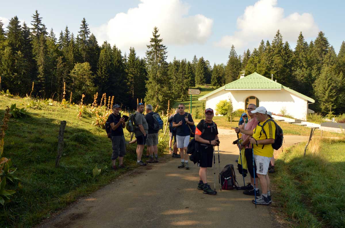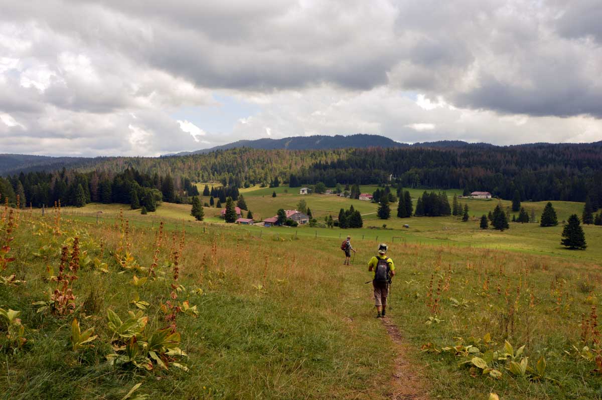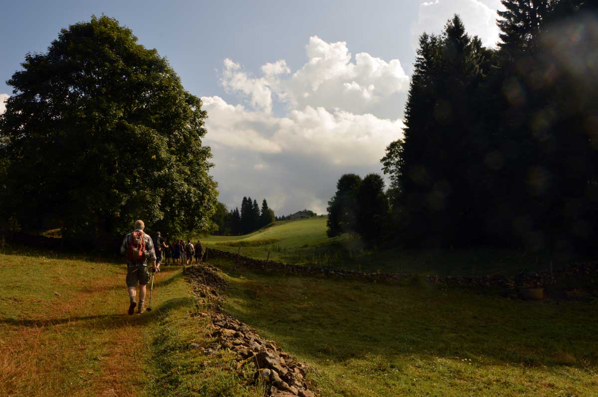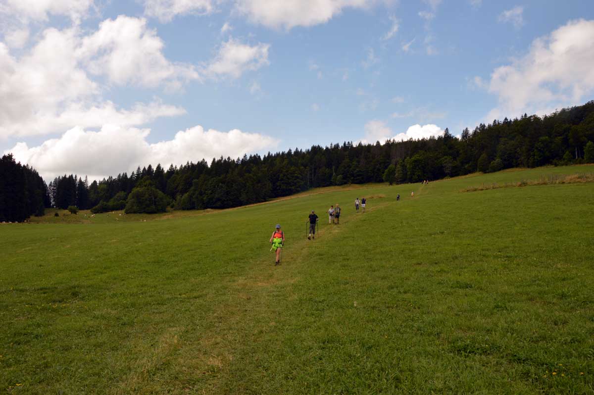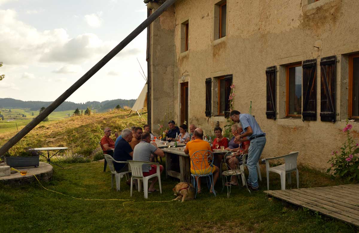 Lamoura la montagne… Hm, commence bien cet article, mais je fais ce que je veux avec ce que j’ai ! Et voilà ta rédactrice lancée dans le paysage haut-jurassien. Entre le lendemain de la fête de l’Abonde à Lamoura (je sentais encore les effluves des jeunes paysans charpentés) et les œuvres du sympathique charpentier des Eterpets (je suis amoureuse, je le sens dans ma vieille charpente), j’ai pérégriné jusqu’à la grotte du Célary et sa fameuse cheminée, une sorte de gouffre, quoi. Et aussi un belvédère où j’ai cassé la croûte et pas qu’elle. Je te le dis, ça sentait le spéléologue en rut là-dedans ! Ou alors c’étaient mes chaussures ? Je sais pas.