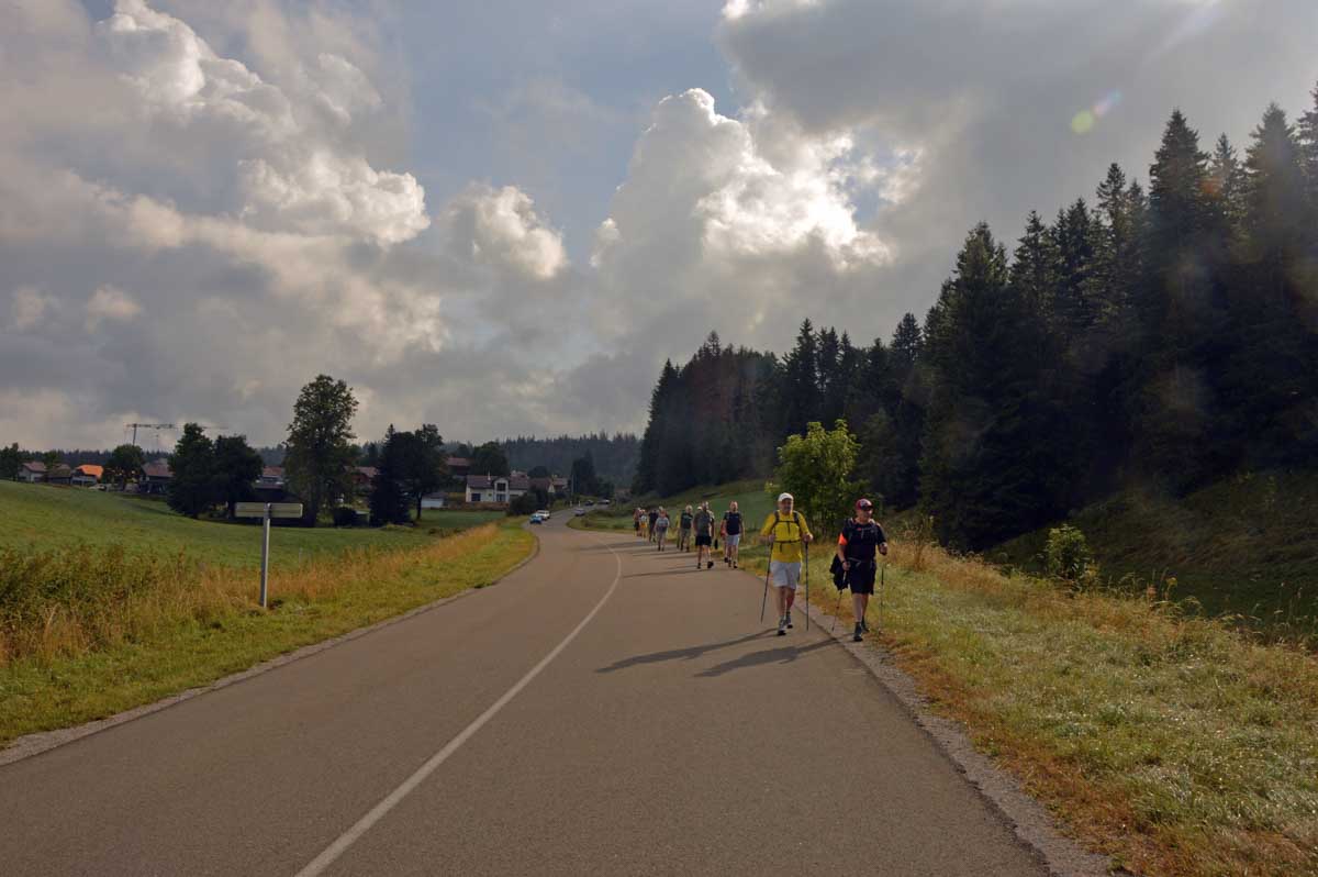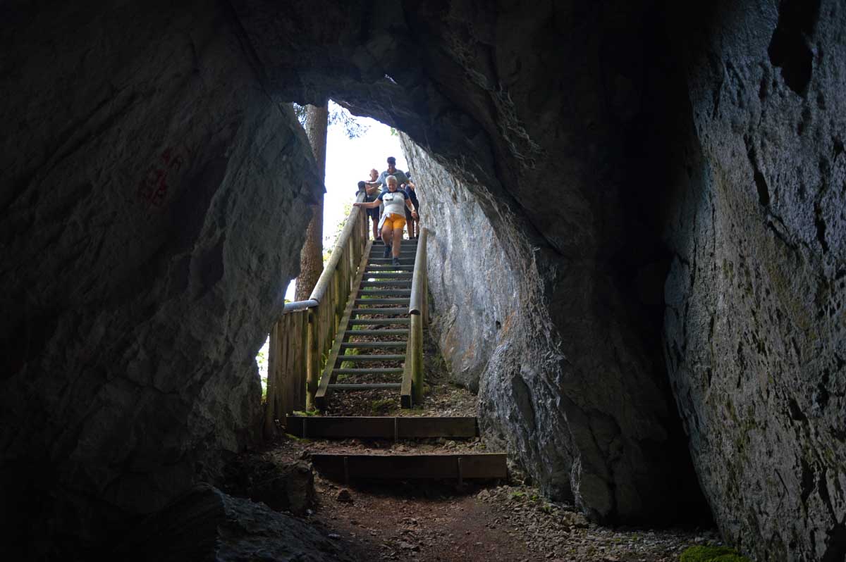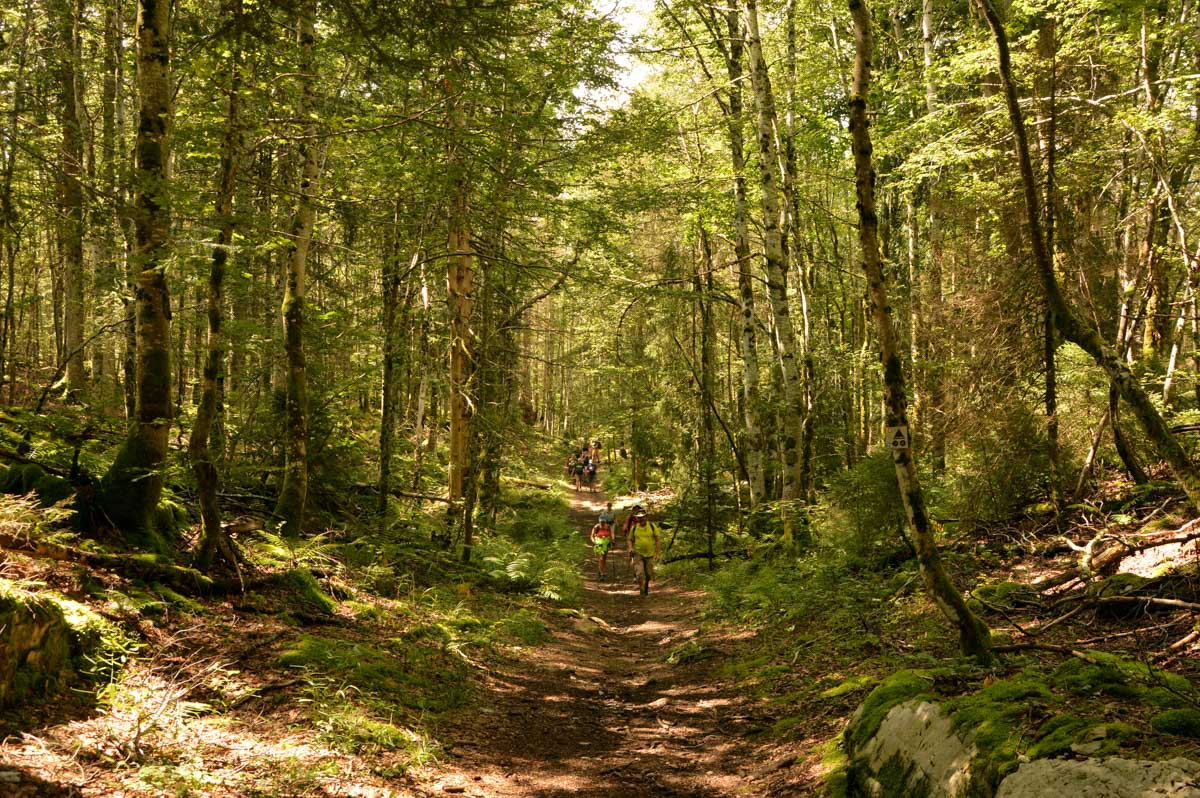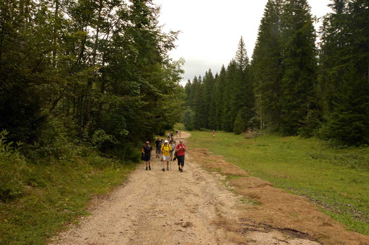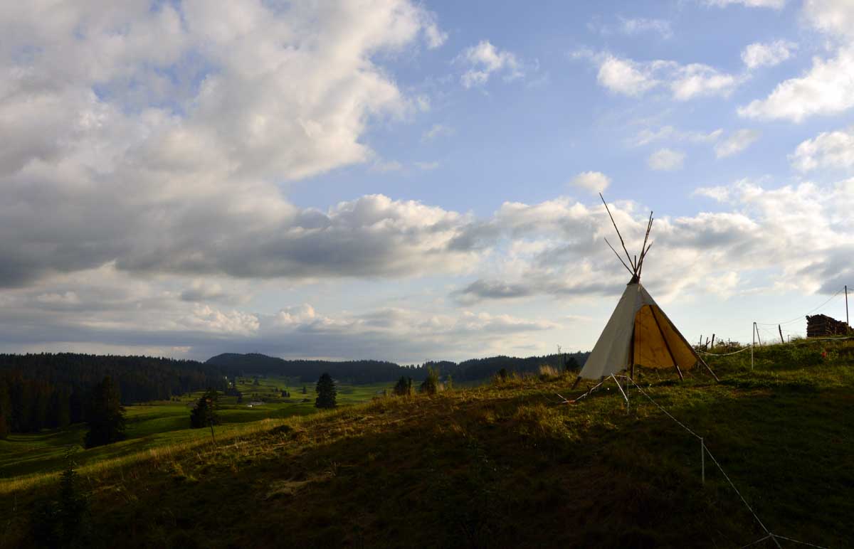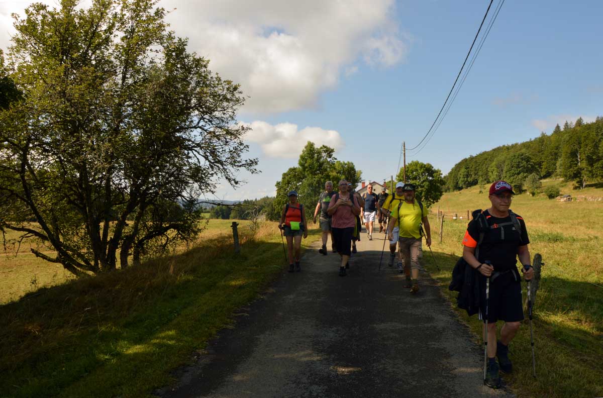 Lamoura la montagne… Hm, commence bien cet article, mais je fais ce que je veux avec ce que j’ai ! Et voilà ta rédactrice lancée dans le paysage haut-jurassien. Entre le lendemain de la fête de l’Abonde à Lamoura (je sentais encore les effluves des jeunes paysans charpentés) et les œuvres du sympathique charpentier des Eterpets (je suis amoureuse, je le sens dans ma vieille charpente), j’ai pérégriné jusqu’à la grotte du Célary et sa fameuse cheminée, une sorte de gouffre, quoi. Et aussi un belvédère où j’ai cassé la croûte et pas qu’elle. Je te le dis, ça sentait le spéléologue en rut là-dedans ! Ou alors c’étaient mes chaussures ? Je sais pas.