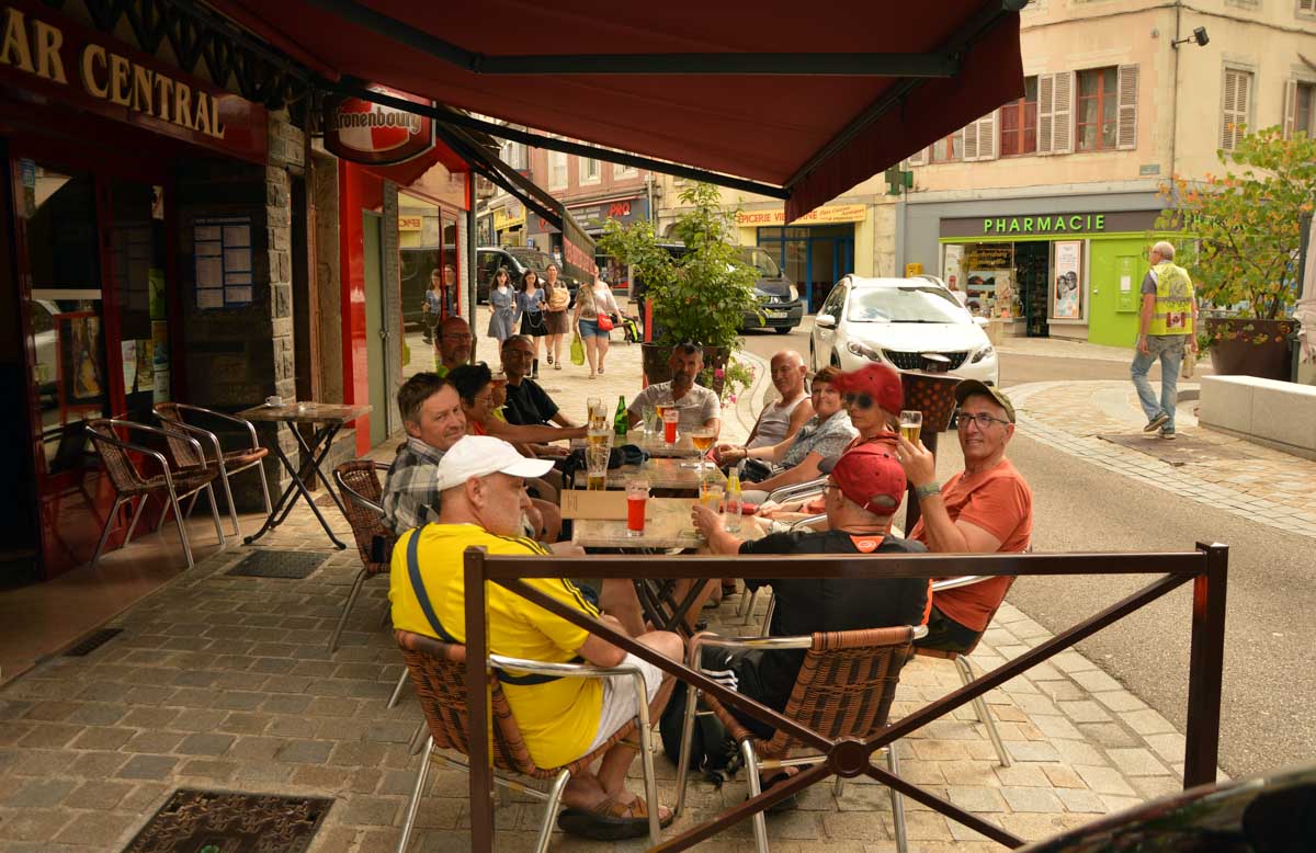 A Saint-Claude, ils ont même des poubelles en forme de pipe ! Si, si, nous prîmes un pot juste à côté. Et personne n’a fumé de pipe alors que la pipe, franchement, c’est pas compliqué. Le plus long c’est d’allumer, ensuite c’est facile, tu portes aux lèvres, tu aspires et c’est que du bonheur. C’est décidé, dans ma prochaine vie, je serai pipiste. Ou pipoteuse ? Ou pipelette ? Qui a dit « tu l’es déjà » ? Je serai pipier, maître pipier, ou tiens, maîtresse pipière ; je serai la meilleure commerçante de Saint-Claude et je proposerai des pipes à tous les passants histoire de faire mon chiffre d’affaire !