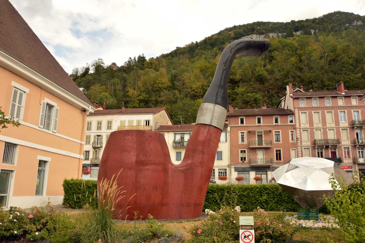 … Passons directement à Saint-Claude puisque je te connais, tu m’attends là-dessus. Me voilà dans la capitale mondiale de la pipe. Fais pas celui qui savait pas, va… On aurait pu évoquer une bouffarde, un narguilé, un calumet, une chibouque, mais c’était moins connu.