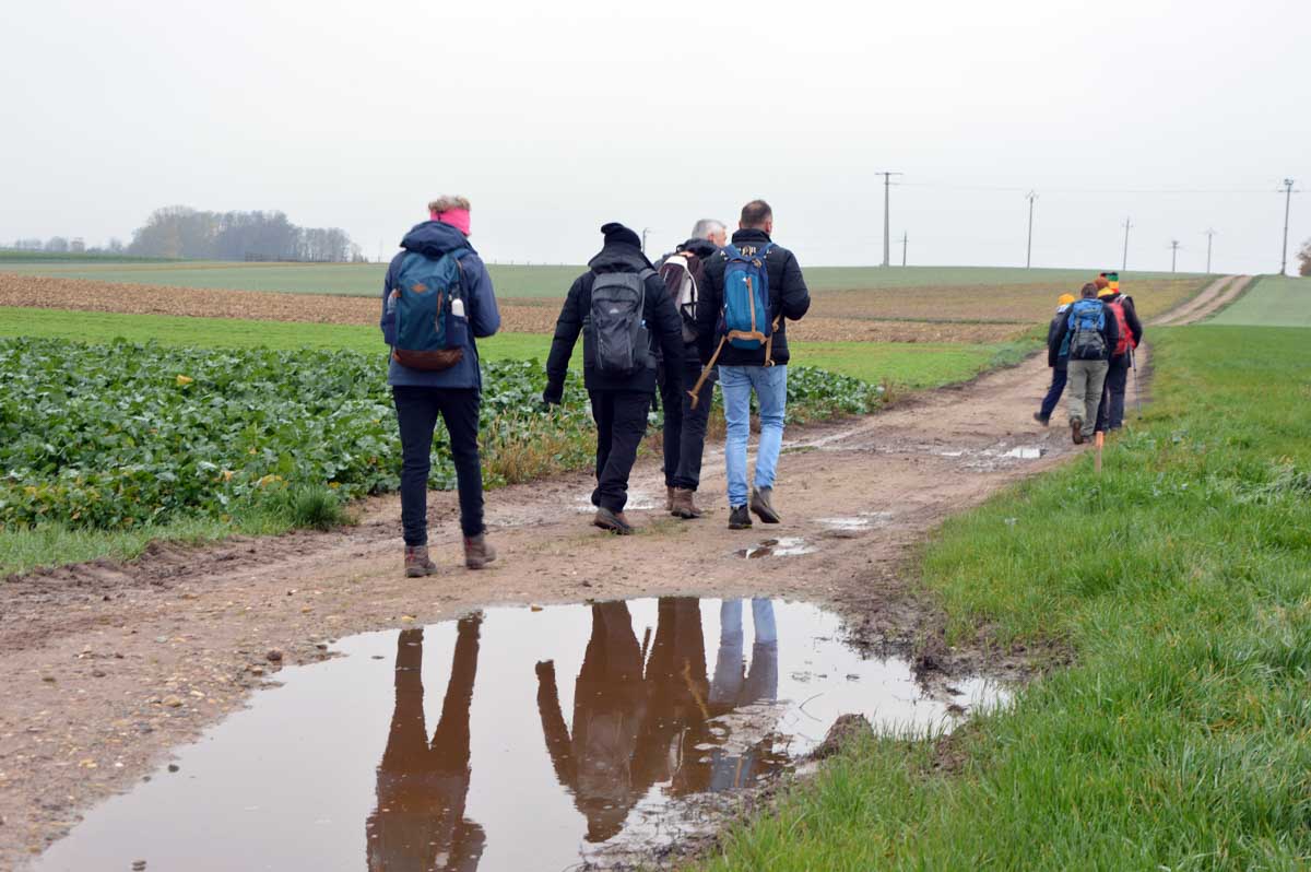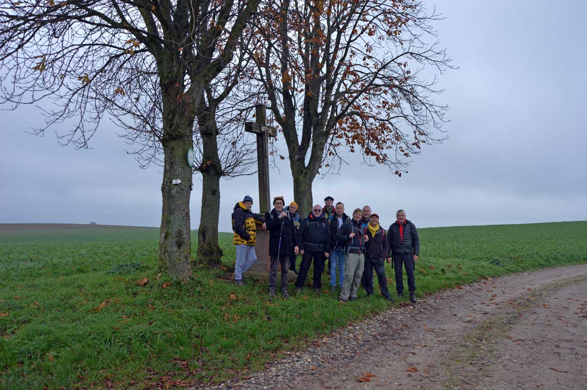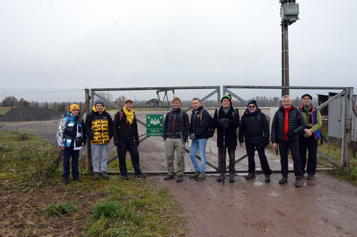 Pas d’univers impitoyable mais tout de même, un petit air de Dallas en ce dimanche, dans ce paysage embrumé où l’on se prenait volontiers à songer « j’y erre ». Voilà, celle-là il fallait la faire et nous passons aussitôt à la Sue Ellen de service incarnée à tour de rôle par nos randonneurs dégustant un petit rouge. Pas de derrick ici, mais… non pas de derrick, la tour de forage, pas le policier allemand, commencez pas sinon on n’en sortira pas…