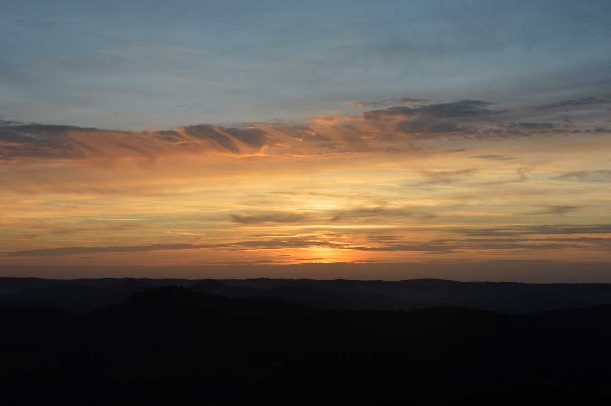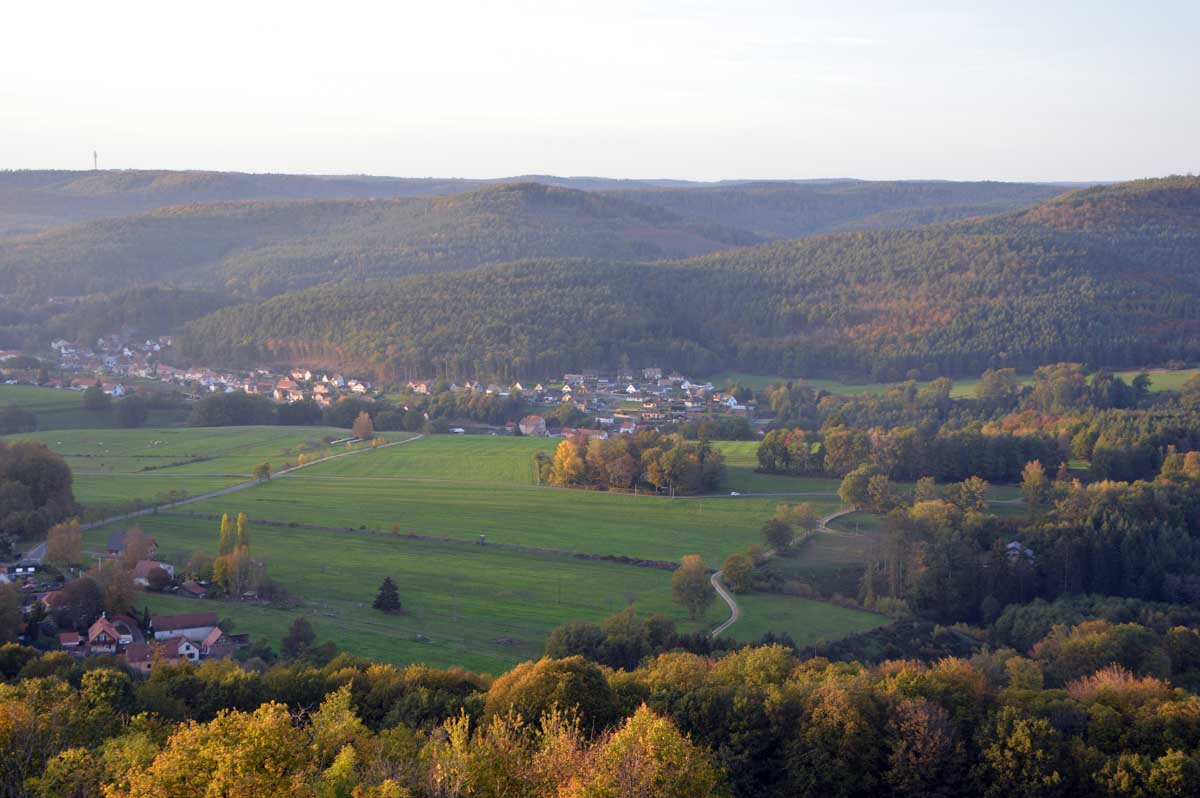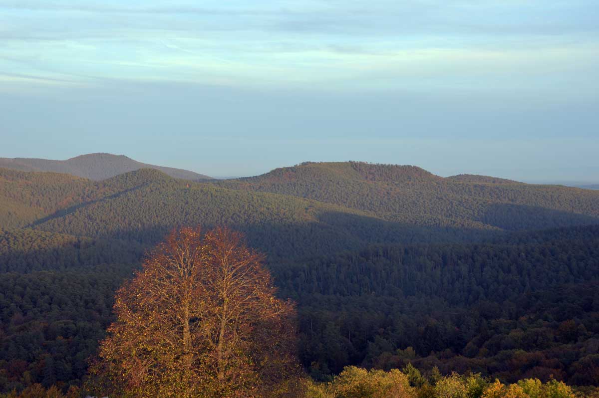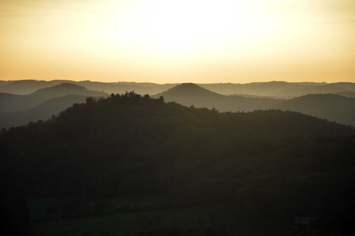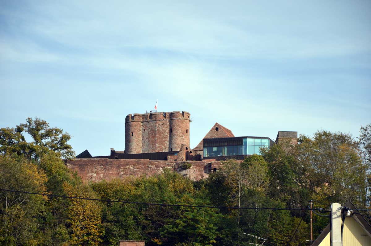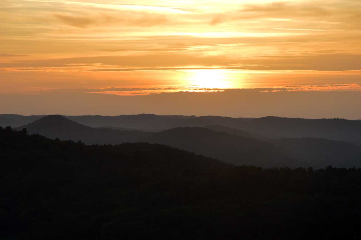 Et là, plantureuse, la robe relevée sur ses cuisses poilues, Sœur Marie-Grognasse s’élève dans son donjon pour en conquérir le sommet (après avoir loupé une marche) et embrasser de son regard concupiscent le coucher du soleil et la vue circulaire sur son territoire des Vosges du Nord. Le soleil disparaissant derrière le doux relief est pour la Sœur un signal : celui de son inapaisable estomac qui, en pleine absorption de douceurs pâtissières, lui rappelle le dîner à venir.