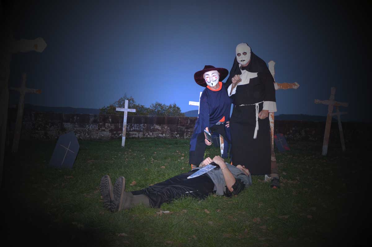 Retrouvailles avec la mangeuse de cheveux puis la soirée se conclut par un dîner sanguinolent à la table des cadavres, avant un dernier tour dans le château où se perdent les hurlements d’effroi des visiteurs. Bedonnante et repue, Sœur Marie-Grognasse finit alors par se perdre dans le labyrinthe, après avoir traumatisé plusieurs générations de promeneurs, pour y attendre dans un sommeil adipeux de ressurgir l’année suivante… Reste que quelques appareils photo ont réussi, on ne sait par quel miracle technologique, à capturer l’intégralité de la Soeur. Alors, légende ou réalité ? En tous les cas on a des photos…