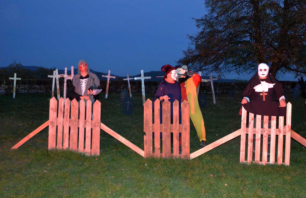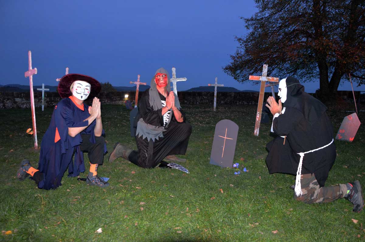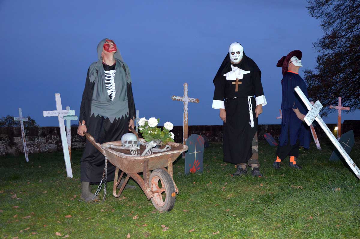 C’est ainsi que Sœur Marie-Grognasse se lance dans la descente (vite freinée par des marches inégales) et entreprend quelques rites sataniques dans le cimetière pour le plus grand effroi des touristes, pendant que Cricri le Viandophile terrorise les enfants et leurs parents. C’est l’heure de l’apéritif sanguinaire chez Vampirella et le Vampire, lesquels n’ont pas proposé de bretzels, ayant jugé inquiétante l’évolution ventrale de leur invitée depuis la dernière fois.