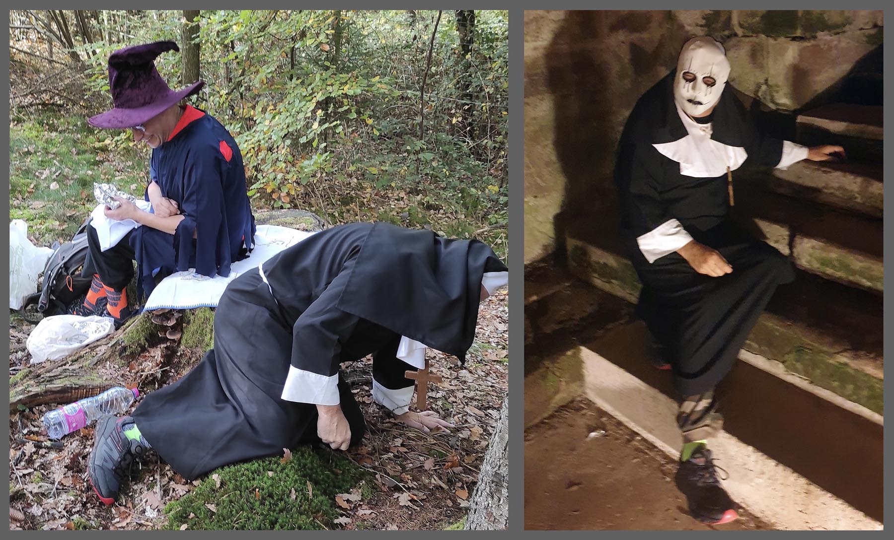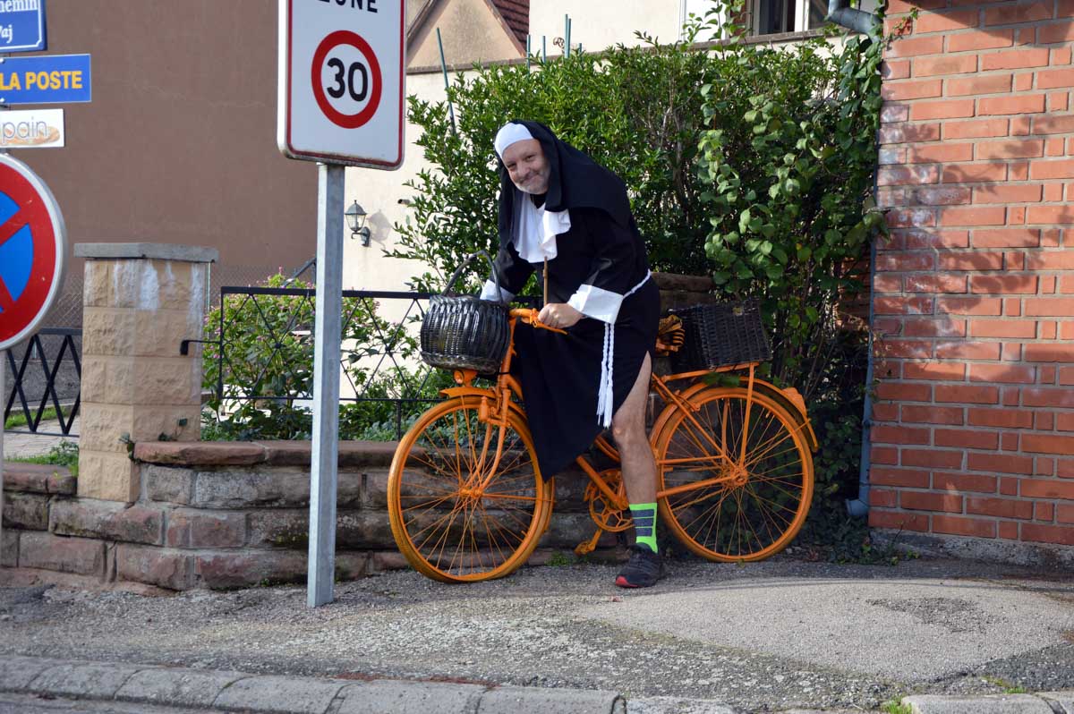 Les anciens racontent que chaque année à la veille d’Halloween, la forêt des Vosges du Nord retentit des pas lourds de la Soeur, impénétrable (la forêt, bien sûr). L’espace d’une journée, Sœur Marie-Grognasse de la Perpétuelle Constatation vient intervertir les balisages du Club Vosgien, de Reipertswiller à Wimmenau. Même les vaches détournent la tête à son passage.