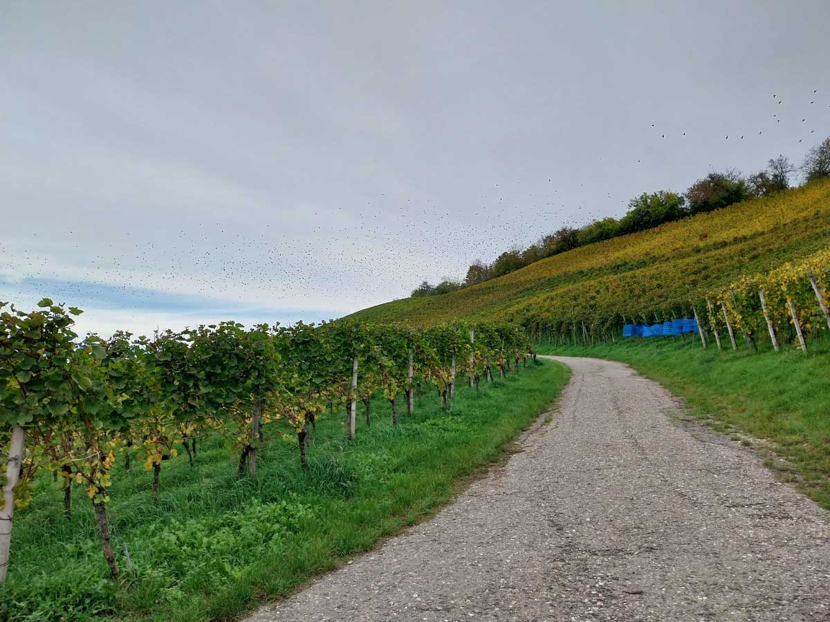 Bon je te la fais courte (non, tu commentes pas !) : lumières d’automne, brume d’automne, vignes d’automne, et même puisque j’étais de la partie et comme diraient certaines mauvaises langues, du lard contemporain, et moi je traduis en : de l’art contemporain. Oui ça t’évitera de me la sortir, celle-là, quoi qu’à ce niveau-là, y’a que toi qui pouvait la sortir.