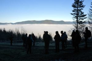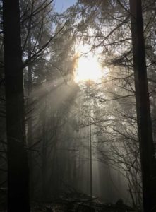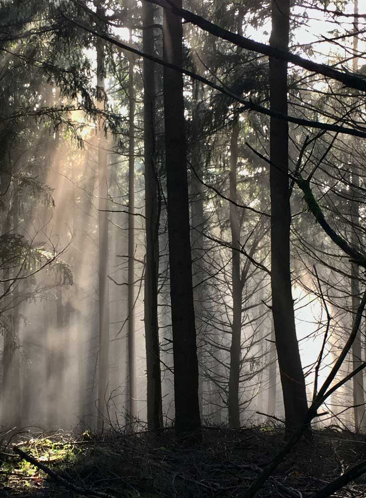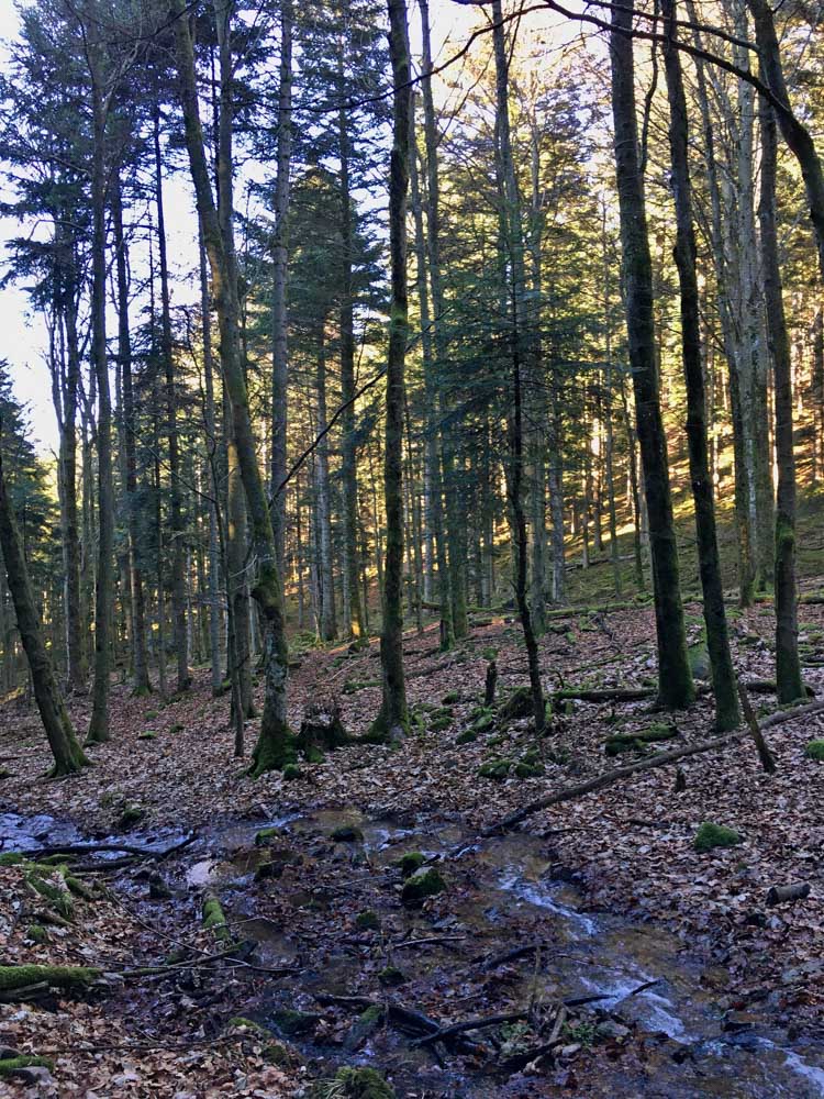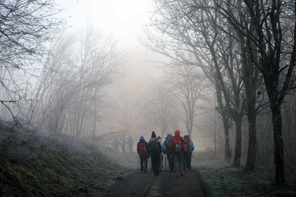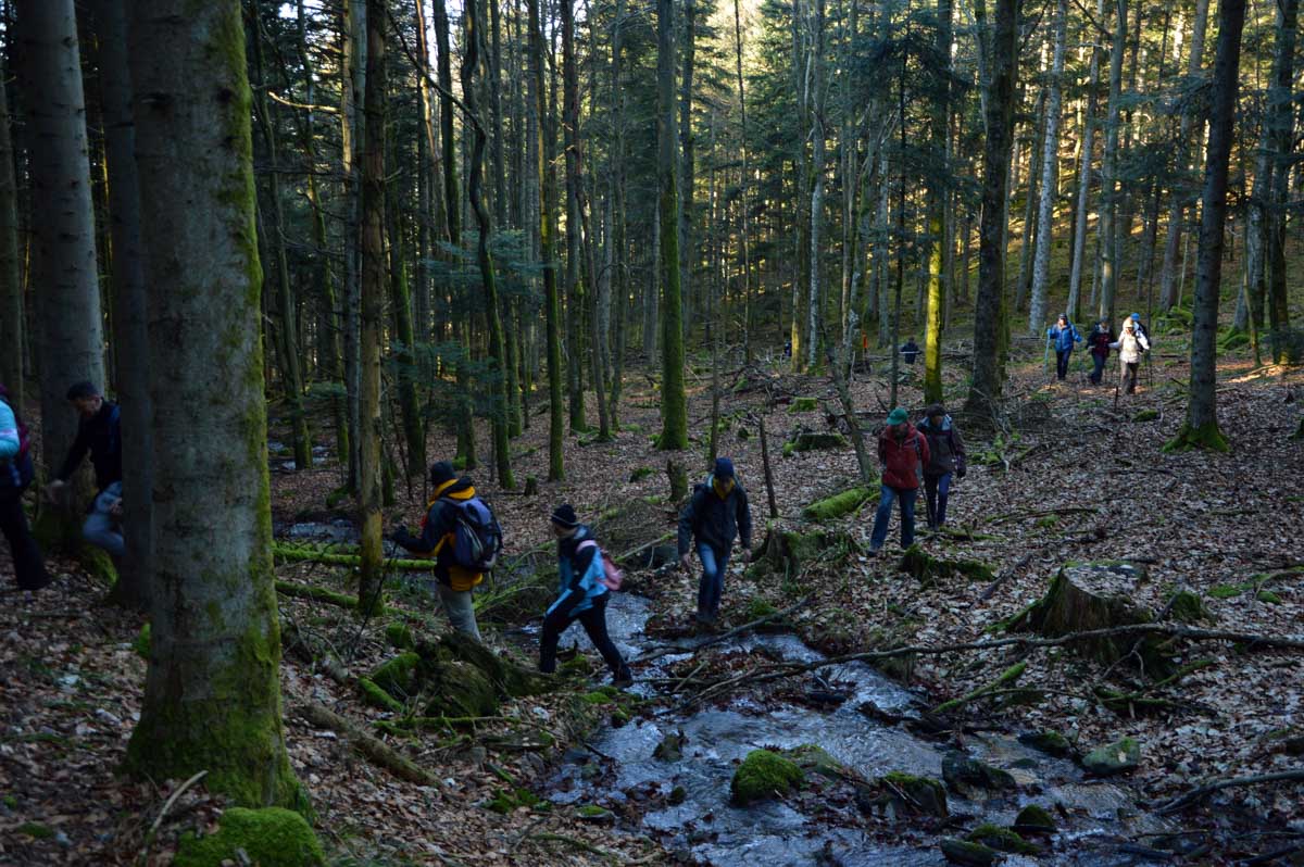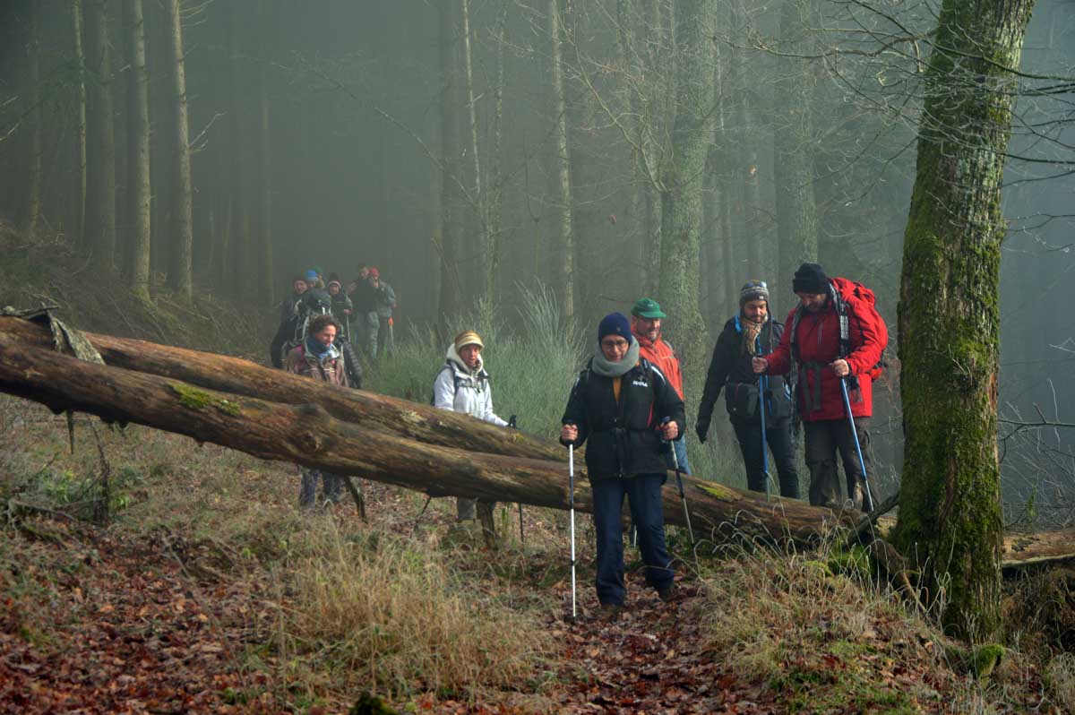 Lumière du matin, lumière filtrée par la brume, ou lumière déclinante de la fin d’après-midi, je viens à l’esprit des promeneurs sous le charme. Parfois j’évoque simplement la joie d’être là, tous ensemble, à pouvoir poser un pied devant l’autre et se laisser surprendre au-delà du prochain virage.
