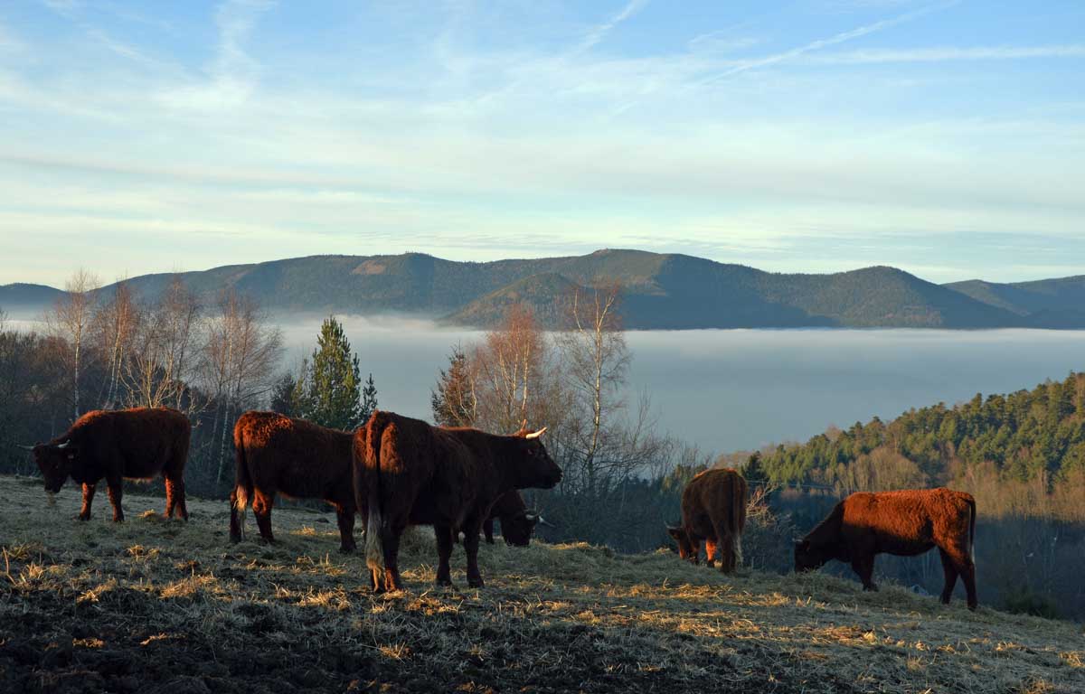 On me prononce lorsque l’on s’attarde dans un joli abri comme celui de la Marbrerie pour manger à l’intérieur ou dehors en profitant du soleil qui sublime les branches givrées. Je résume même ce que pensent certains en admirant le beau pelage des vaches salers du Signal de Grendelbruch.
