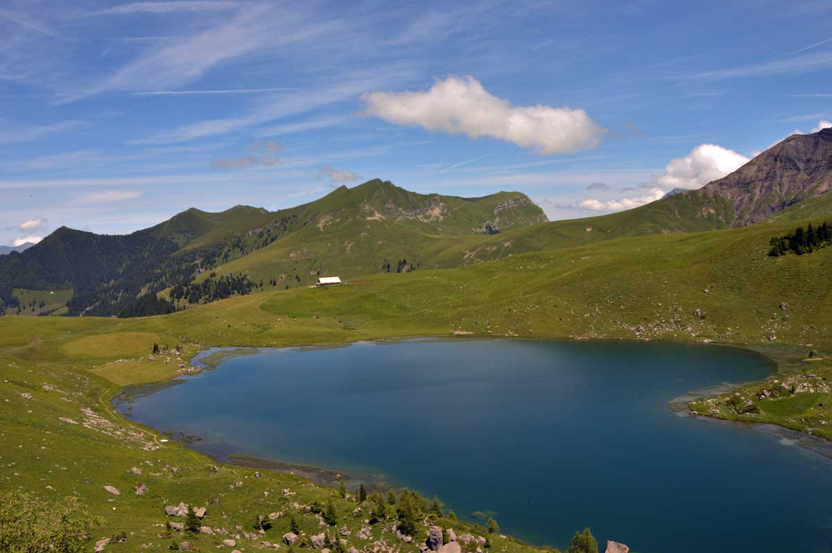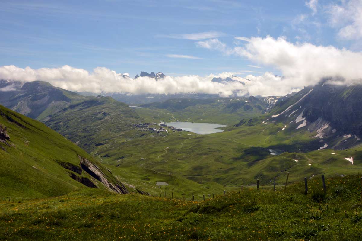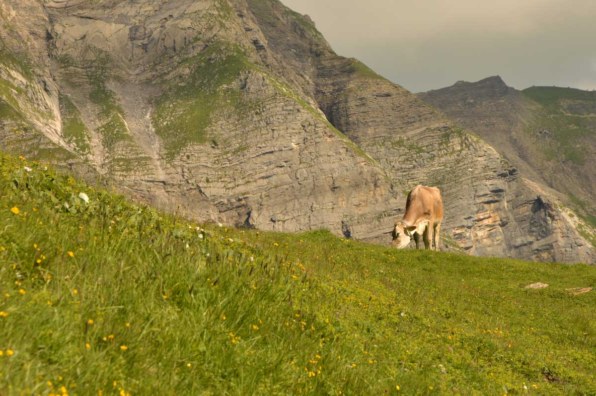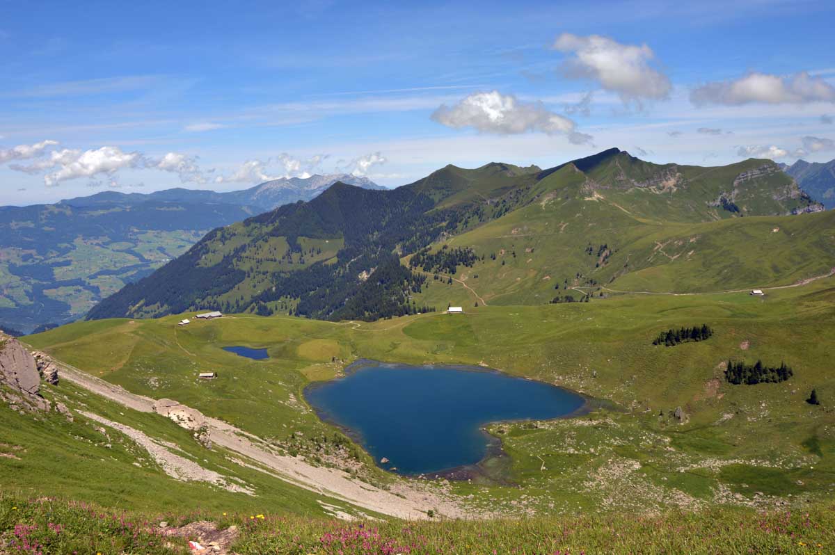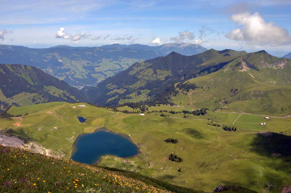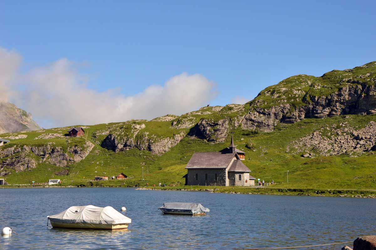 Mais bon, tu t’accroches, tu pries, tu pestes, tu maudis, tu plusjamaisjeviendrai, tu râles, tu chopes la chaîne et la corde et tu te lances dans la descente raide, t’en oublies même qu’aujourd’hui il fait beau et que les vues sont superbes ! C’est la tournée des lacs, le Melchsee, le Blausee, le Seefeldsee, la nausée (à cause du vertige)… qu’est-ce que je raconte, moi ?