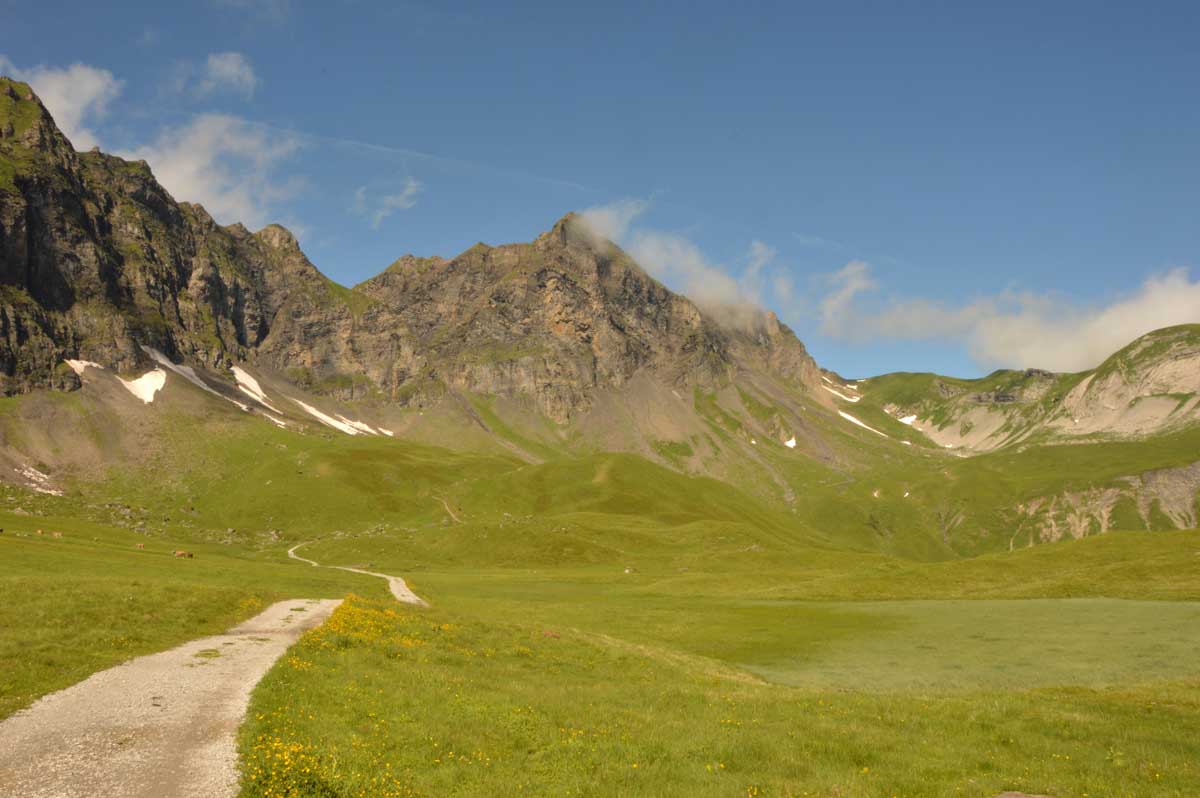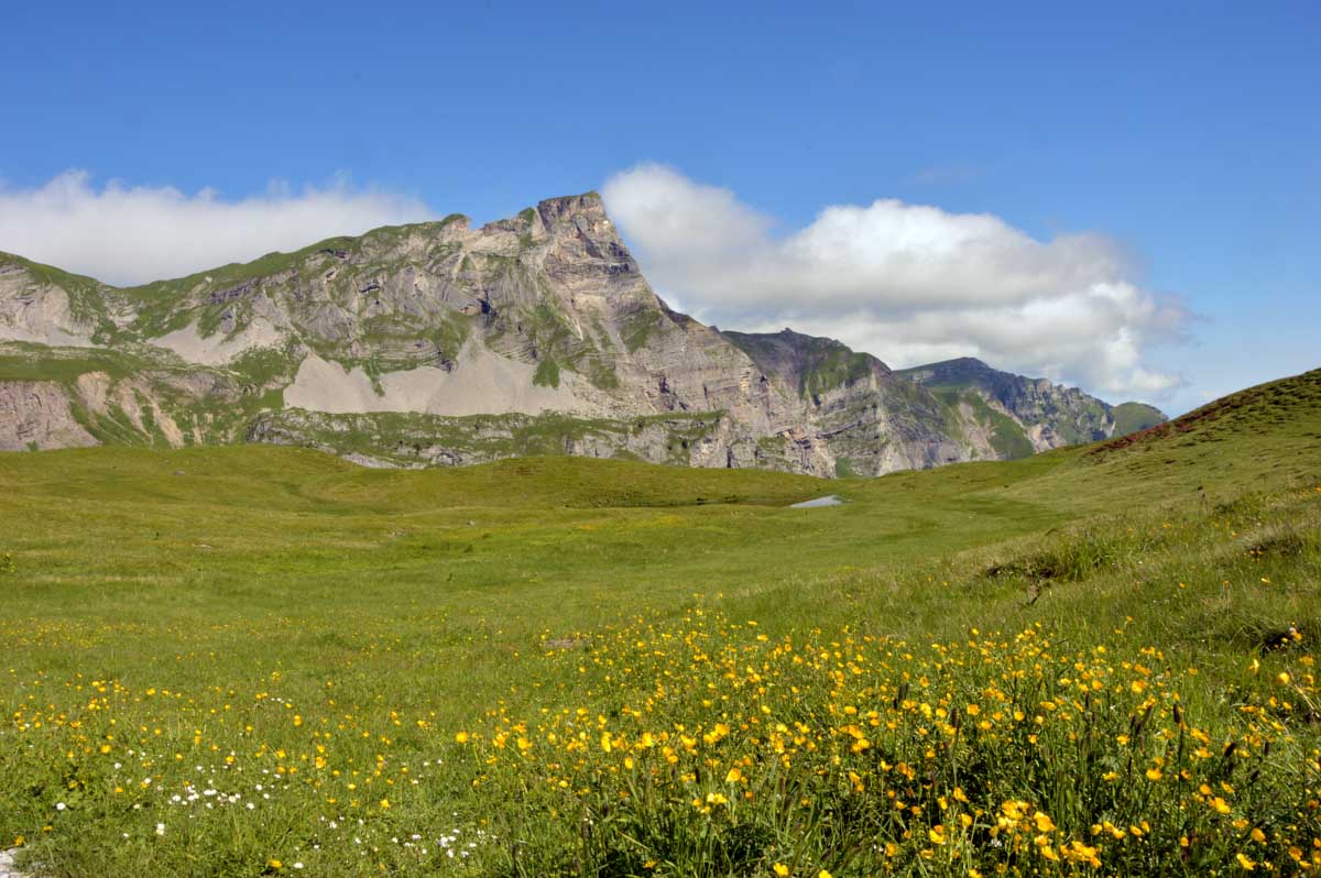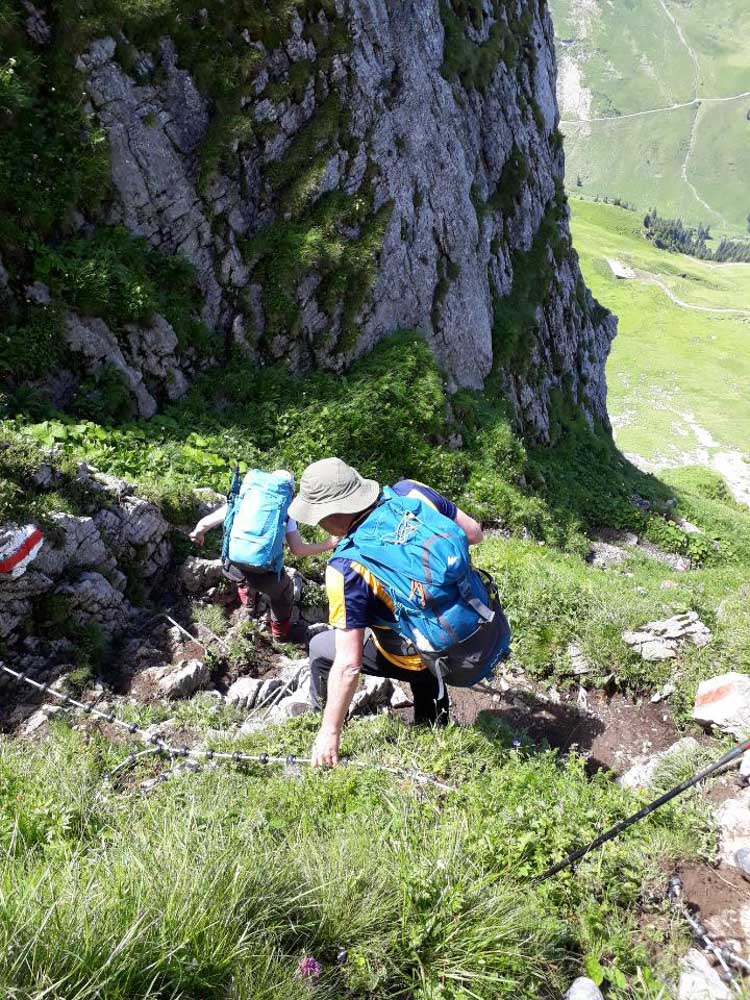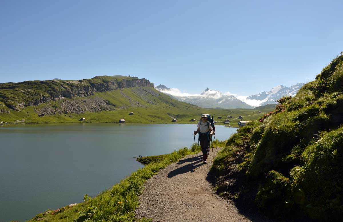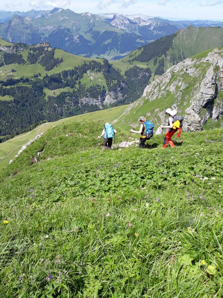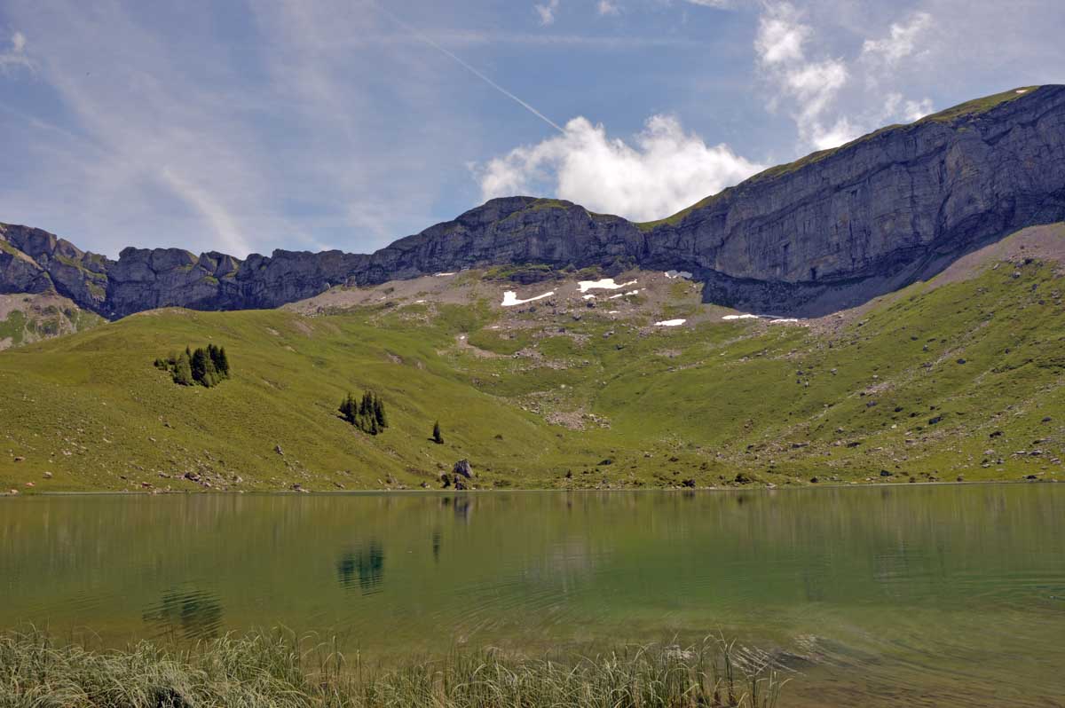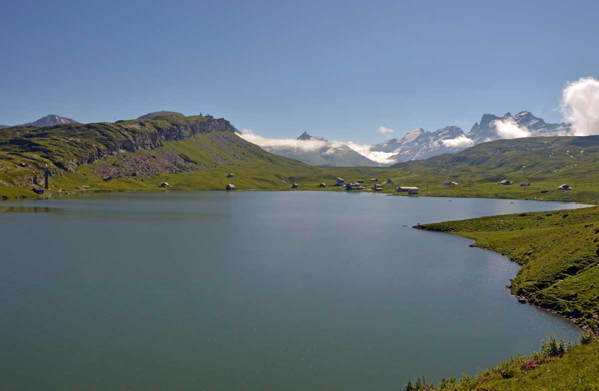 Mais bon, tu t’accroches, tu pries, tu pestes, tu maudis, tu plusjamaisjeviendrai, tu râles, tu chopes la chaîne et la corde et tu te lances dans la descente raide, t’en oublies même qu’aujourd’hui il fait beau et que les vues sont superbes ! C’est la tournée des lacs, le Melchsee, le Blausee, le Seefeldsee, la nausée (à cause du vertige)… qu’est-ce que je raconte, moi ?