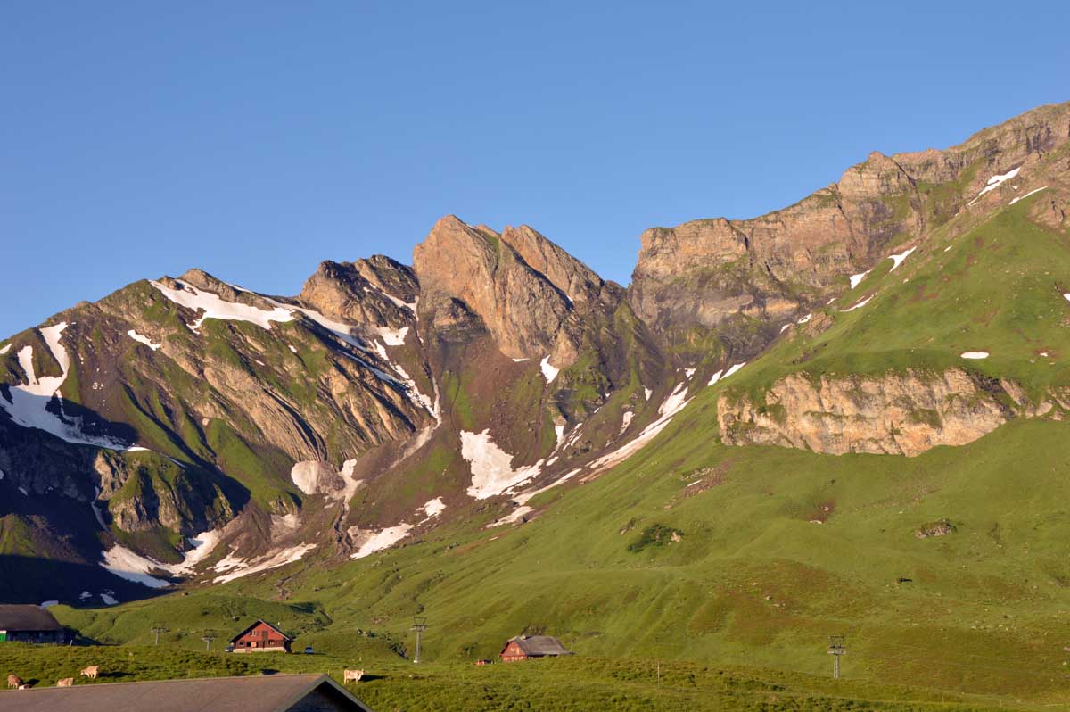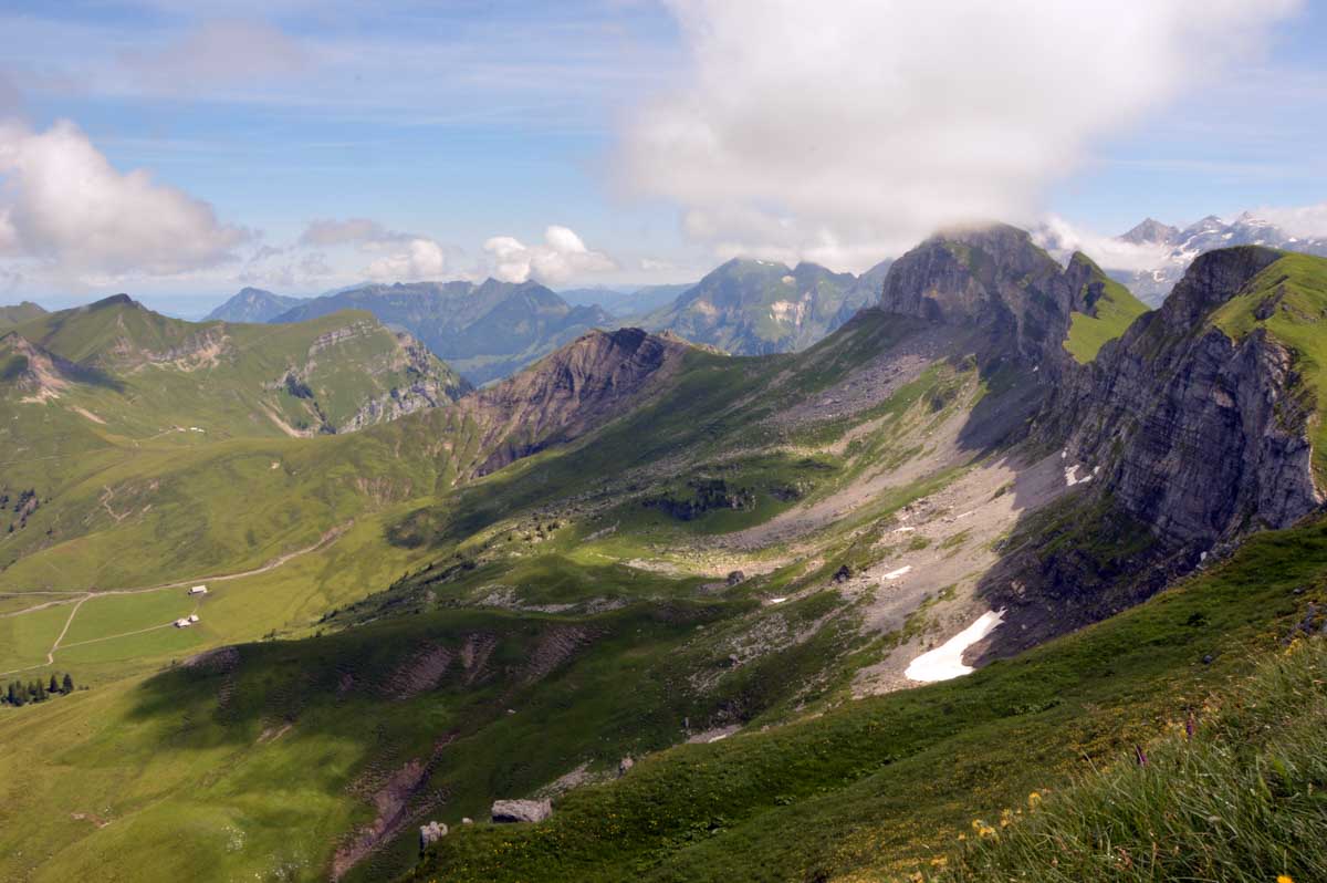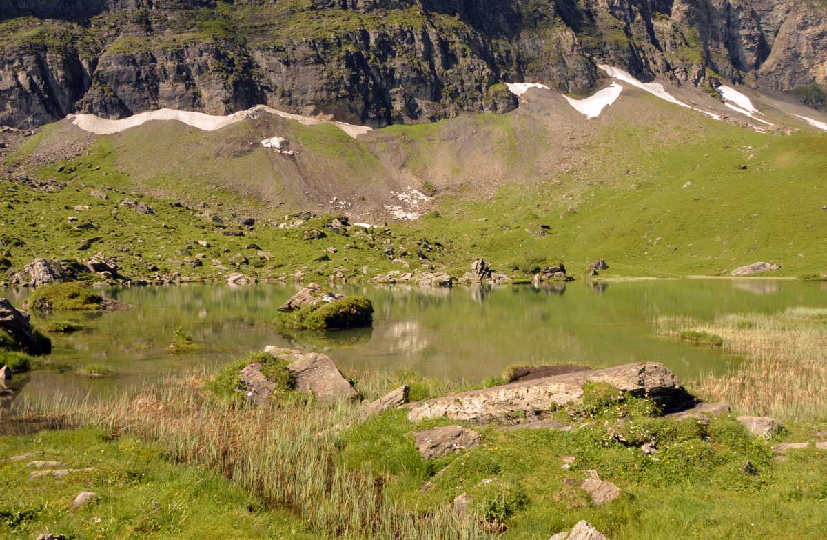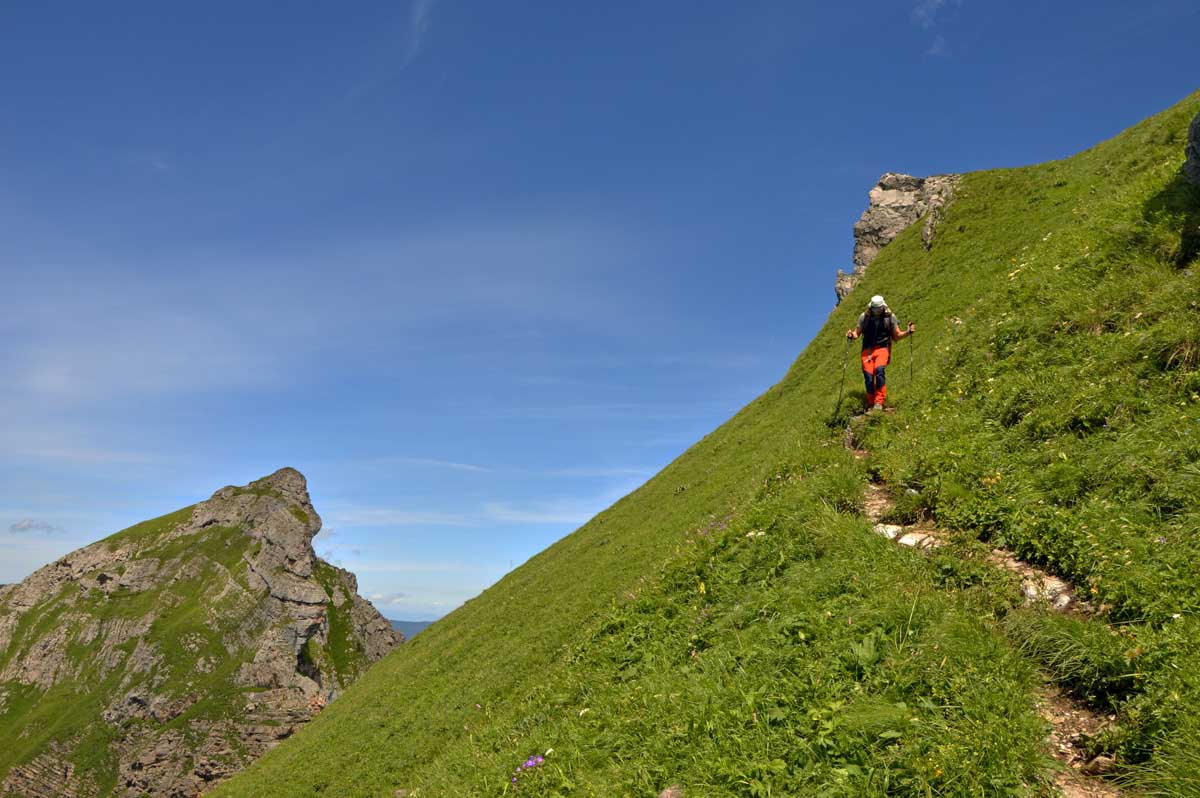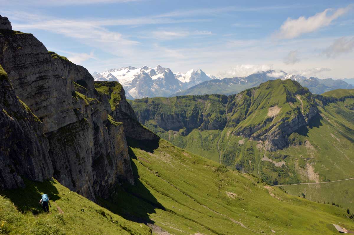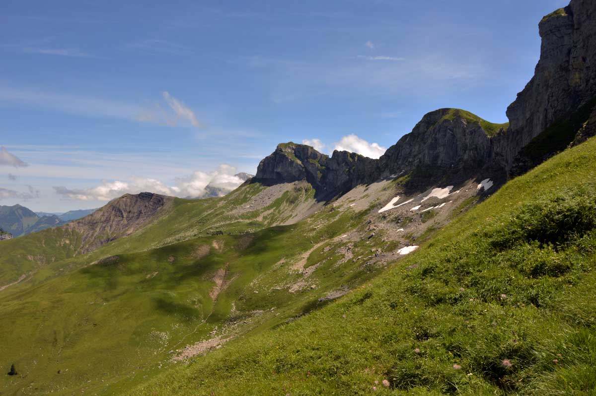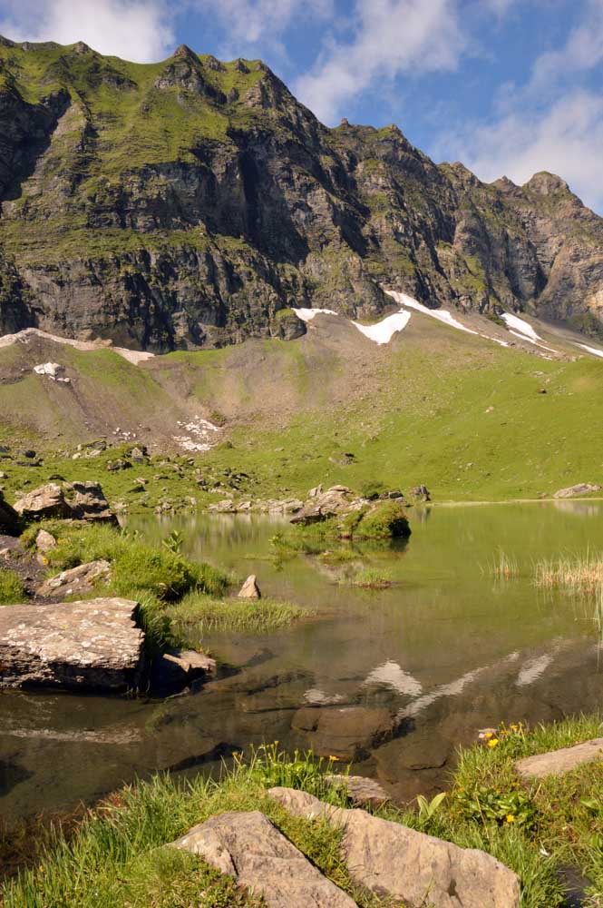 Mais bon, tu t’accroches, tu pries, tu pestes, tu maudis, tu plusjamaisjeviendrai, tu râles, tu chopes la chaîne et la corde et tu te lances dans la descente raide, t’en oublies même qu’aujourd’hui il fait beau et que les vues sont superbes ! C’est la tournée des lacs, le Melchsee, le Blausee, le Seefeldsee, la nausée (à cause du vertige)… qu’est-ce que je raconte, moi ?