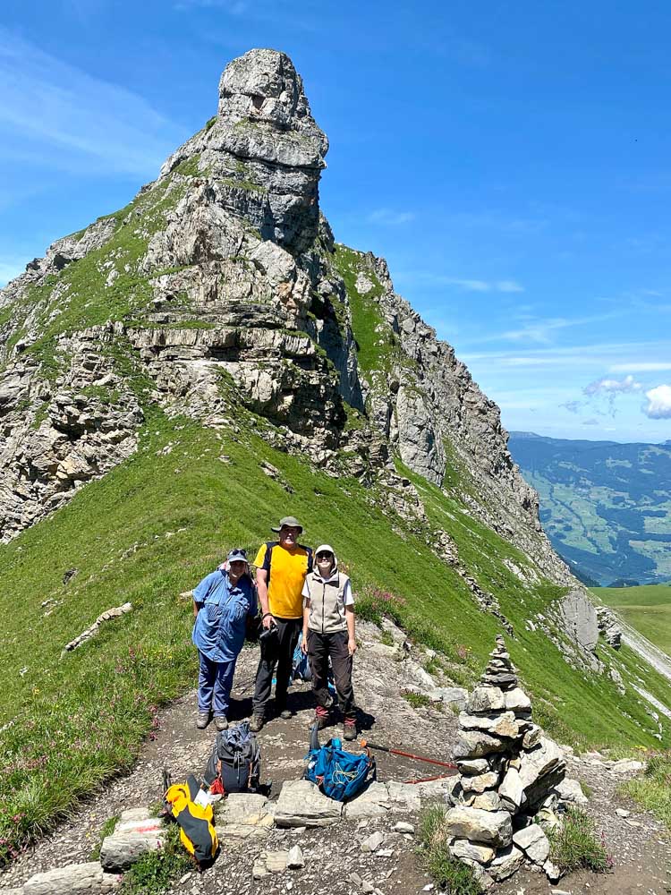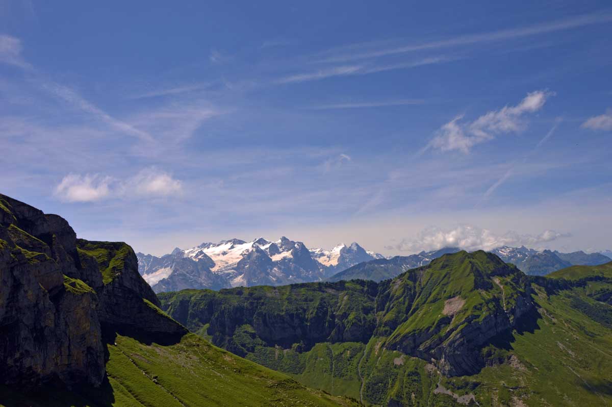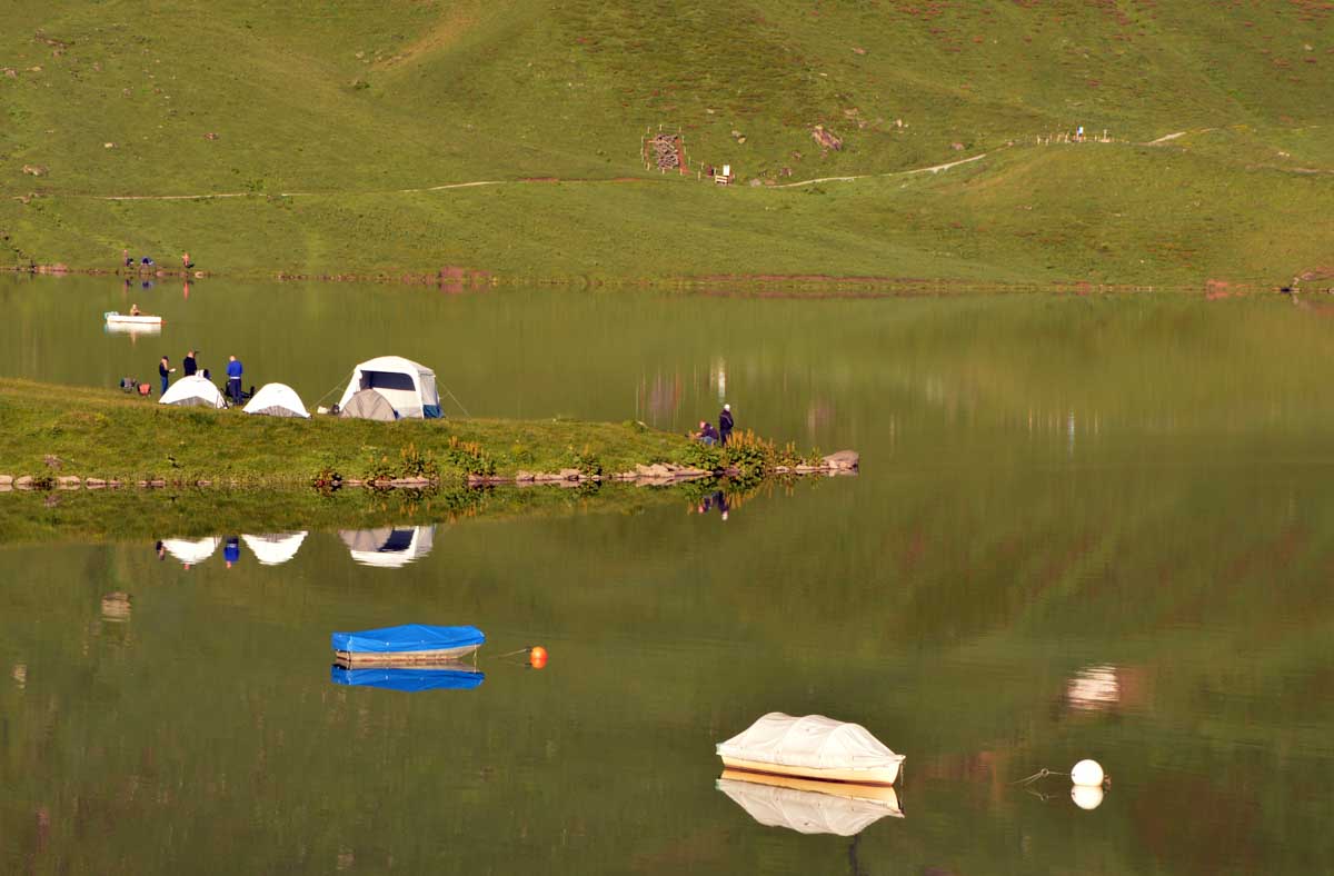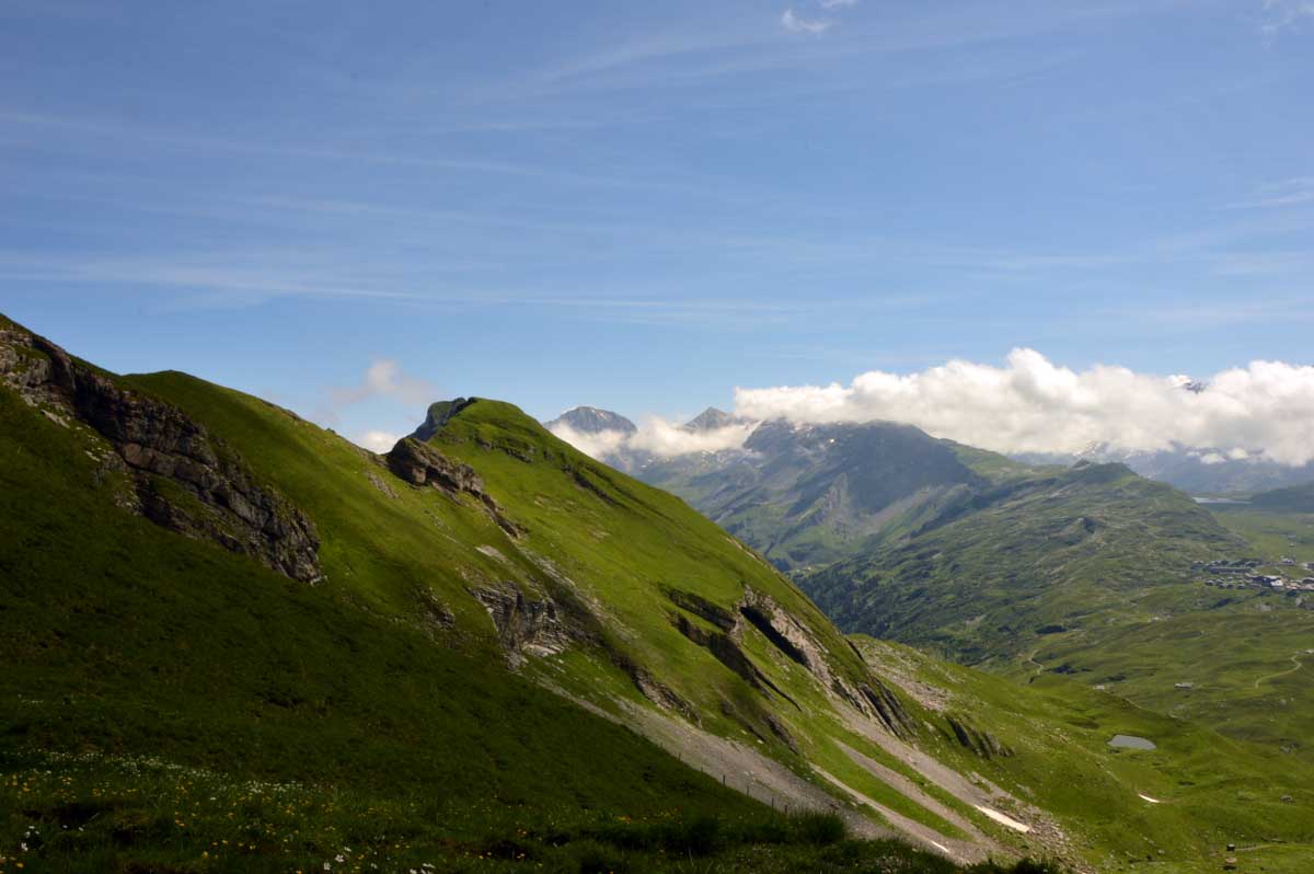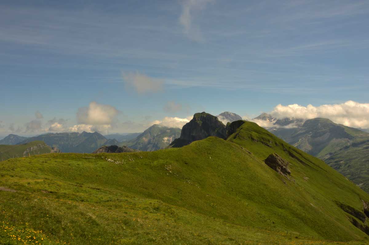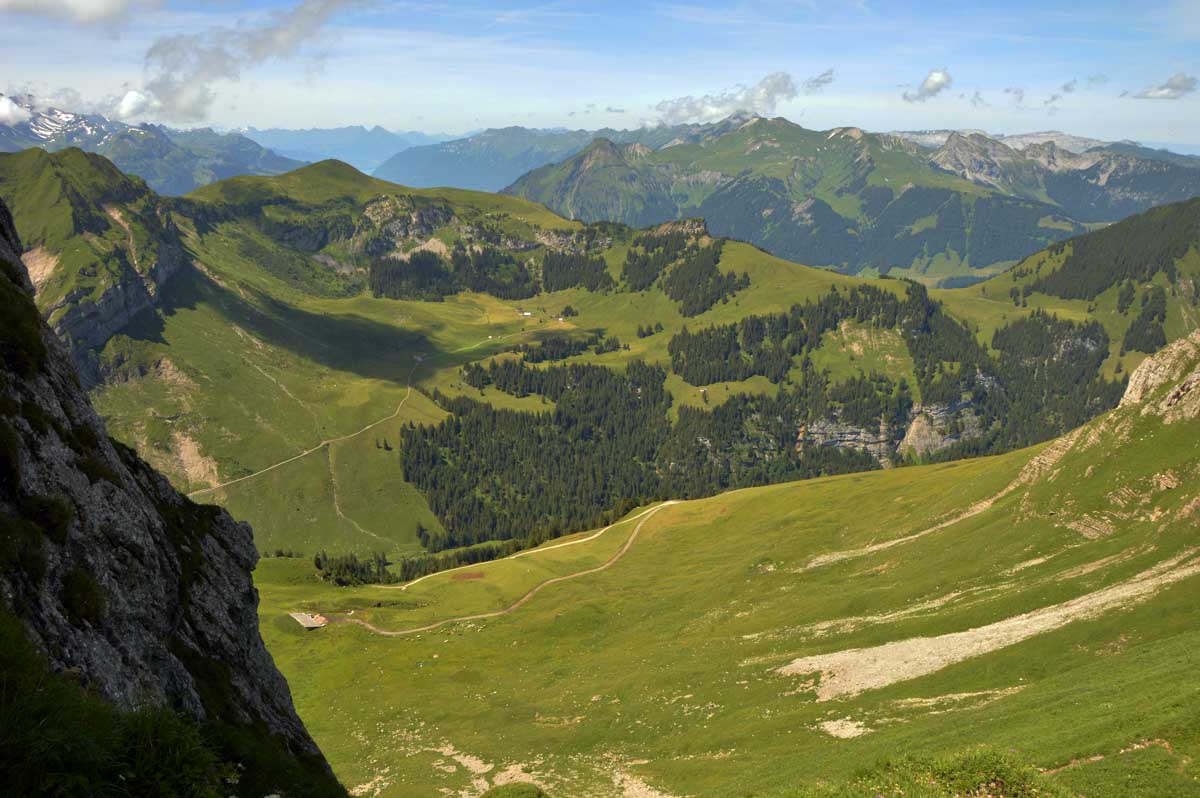 Mais bon, tu t’accroches, tu pries, tu pestes, tu maudis, tu plusjamaisjeviendrai, tu râles, tu chopes la chaîne et la corde et tu te lances dans la descente raide, t’en oublies même qu’aujourd’hui il fait beau et que les vues sont superbes ! C’est la tournée des lacs, le Melchsee, le Blausee, le Seefeldsee, la nausée (à cause du vertige)… qu’est-ce que je raconte, moi ?