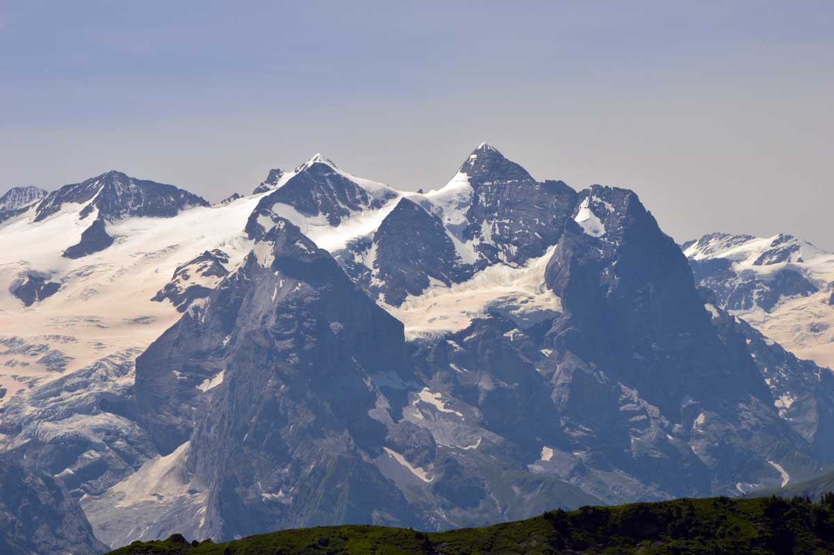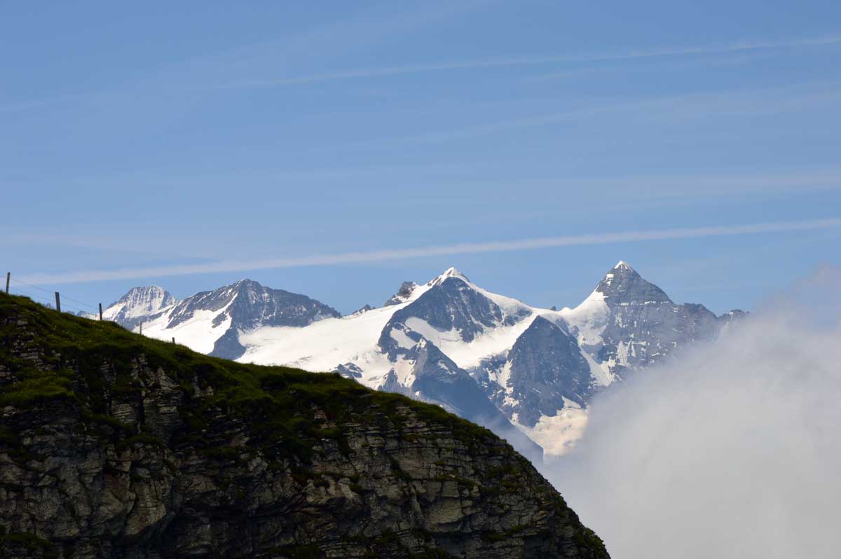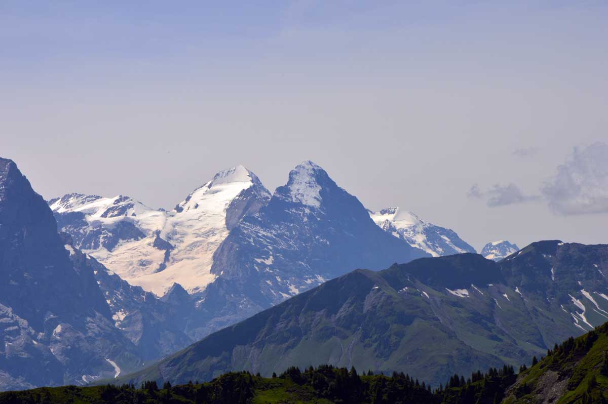 La récompense, c’est la vue sur la chaîne des 4000 des Alpes Bernoises : la Jungfrau, le Mönch, l’Eiger… Quelle vue, mon canard, quelle vue ! J’ai ramené mes chocolats français que je comptais planquer en Suisse, ils prennent pas, ils en ont déjà assez avec même un qui a la forme d’une montagne. Ils aiment bien les barres mais dans une matière différente ! C’était bien la peine de rougir devant le douanier en lui faisant des battements de cils, il n’a rien contrôlé, ouf, mais j’ai ramené mes tablettes en France.