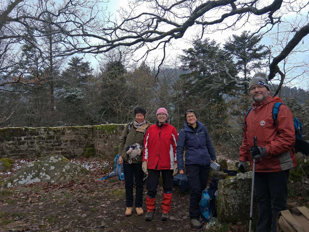 Un petit groupe sympa pour une randonnée facile depuis Moenkalb vers la ruine du Landsberg en passant par Niedermunster, première abbaye fondée par Sainte-Odile au 8ème siècle, avant de passer par Truttenhausen et ses arbres majestueux et revenir pour un dessert au Moenkalb.
