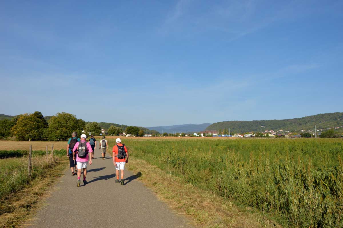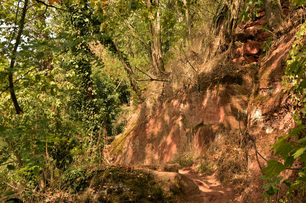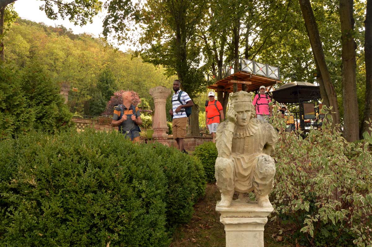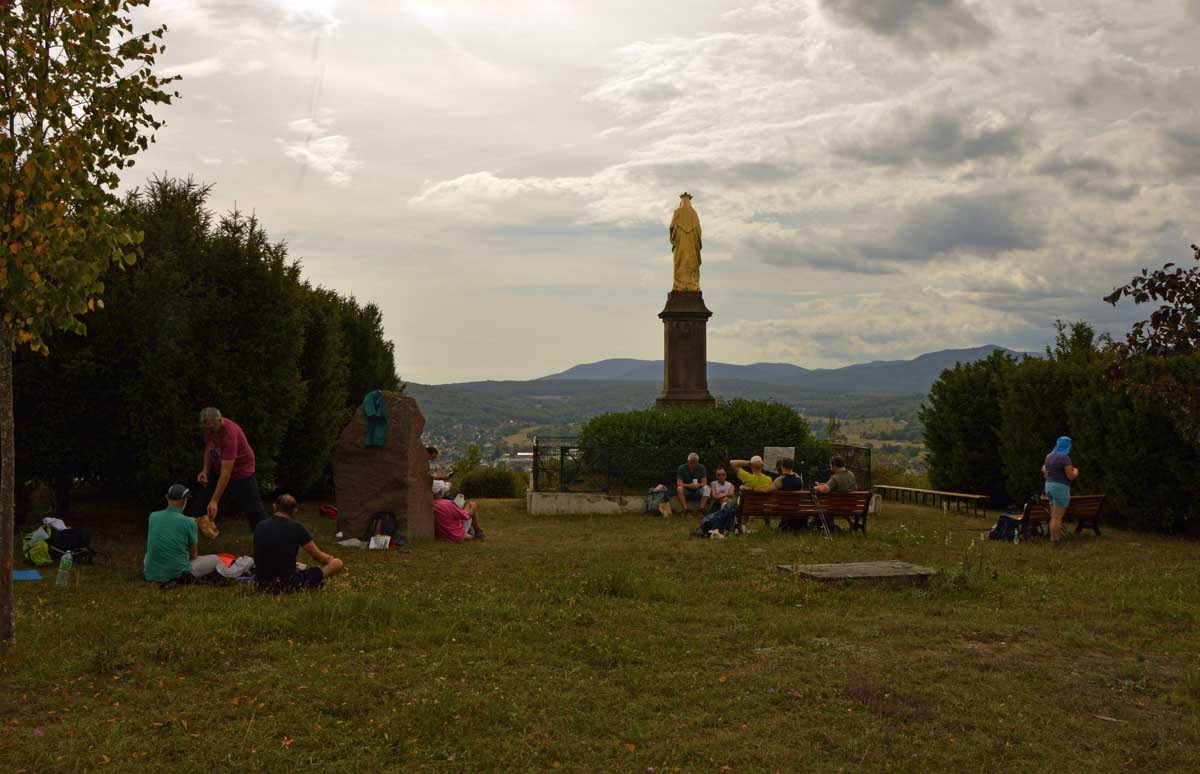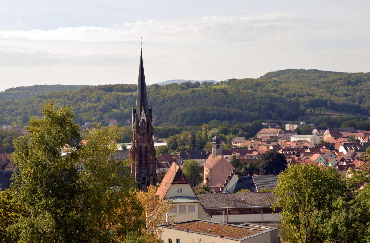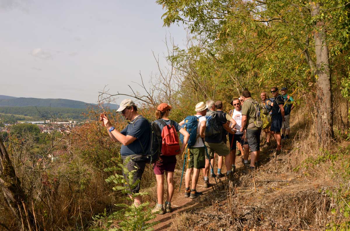 Dans la douceur de l’été finissant, nous mîmes le cap sur Mutzig dont nous arpentâmes le sentier des roches. Bref, on est allés récupérer le reste des troupes en plein cagnard à Mutzig et se farcir la montée au-dessus des falaises. Avec vue sur la ville et la Vallée de la Bruche.