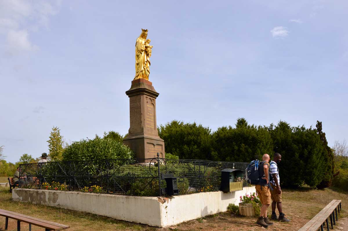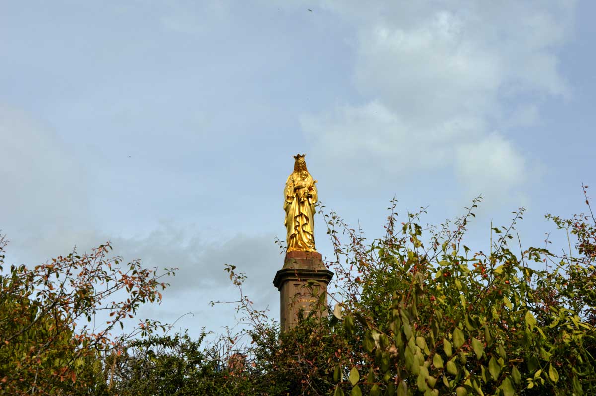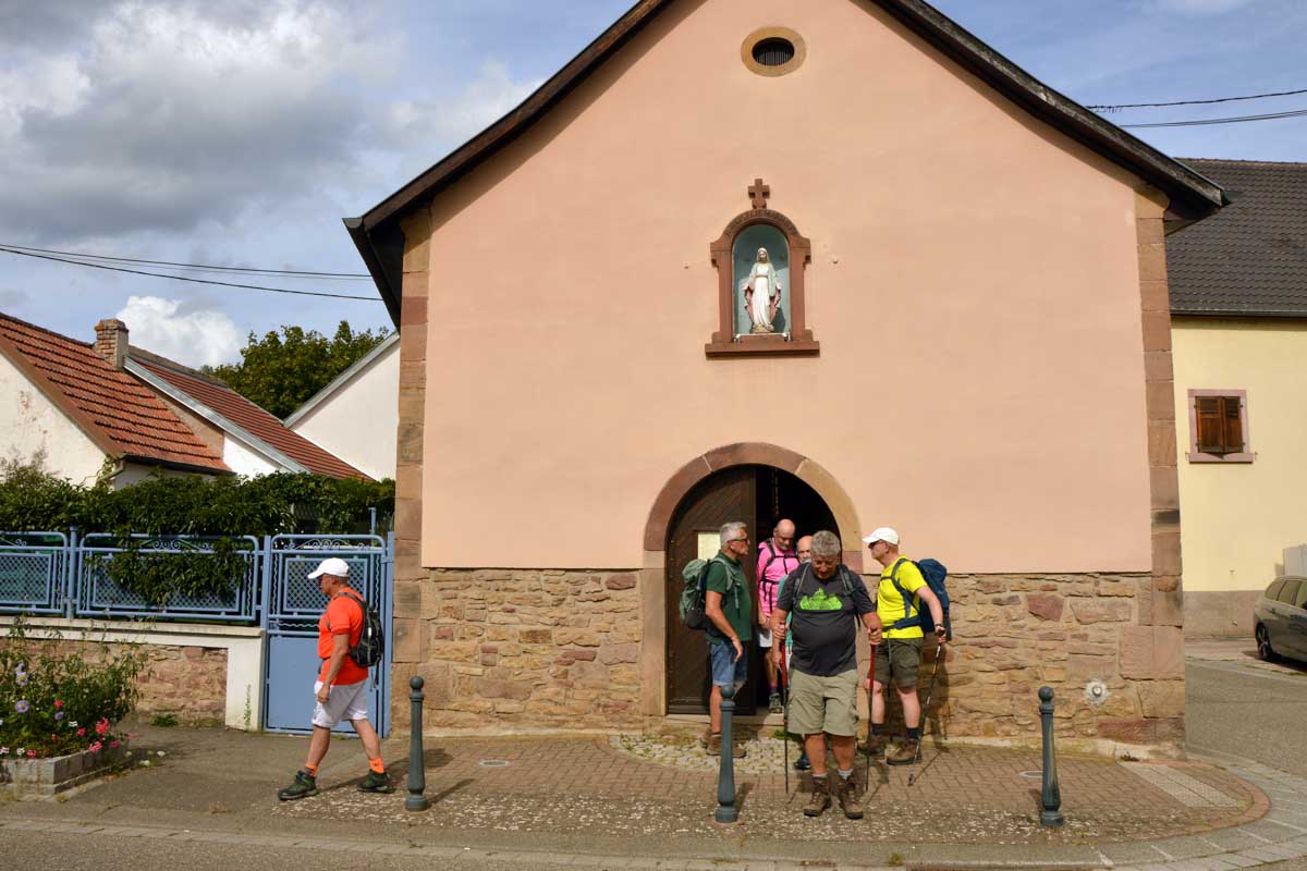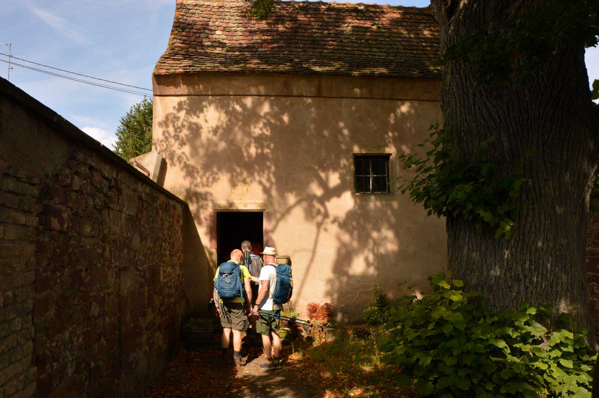 Et toujours à Dinsheim-sur-Bruche, j’ai visité la Chapelle de la Vierge. J’ai appris qu’elle est en particulier prisée par les femmes enceintes, alors je suis ressortie, me sentant pas concernée. C’est dans une cour à Mutzig qu’habite la chapelle Notre-Dame de Lorette. Elle date de 1666 et le tilleul à côté de 1790 à peu près. Romantique aussi, non ?