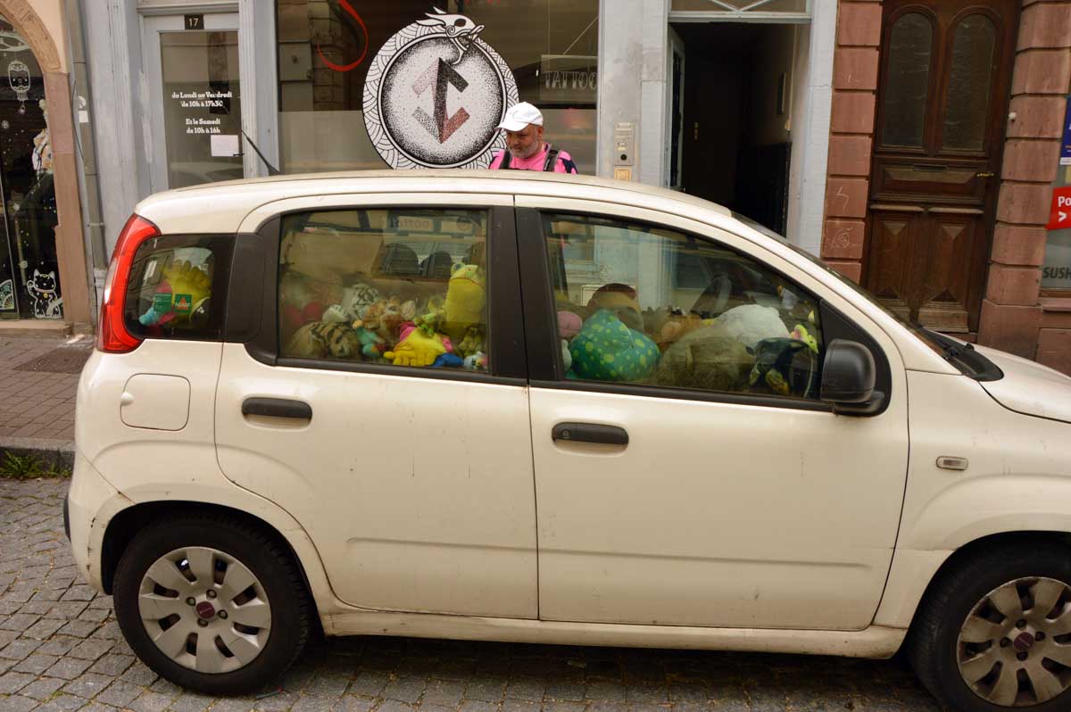 Ça pétaradait dans les rues de Molsheim. Entre les voitures contemporaines, j’ai décelé des drôles de caisses à savon des année 1920/30, ou alors des véritables carrosses motorisés. Puis je me suis retrouvée devant un train d’atterrissage d’Airbus A340. J’ai failli appeler les secours pour retrouver le reste de l’avion mais on me l’a déconseillé.