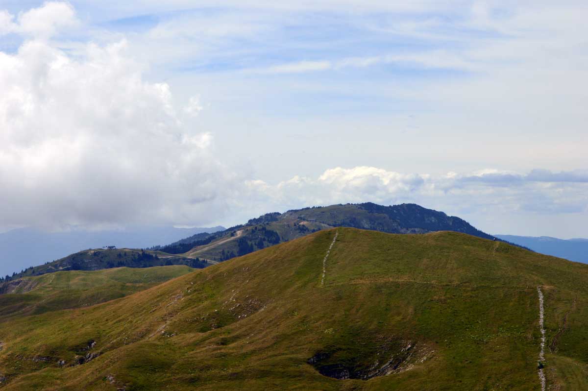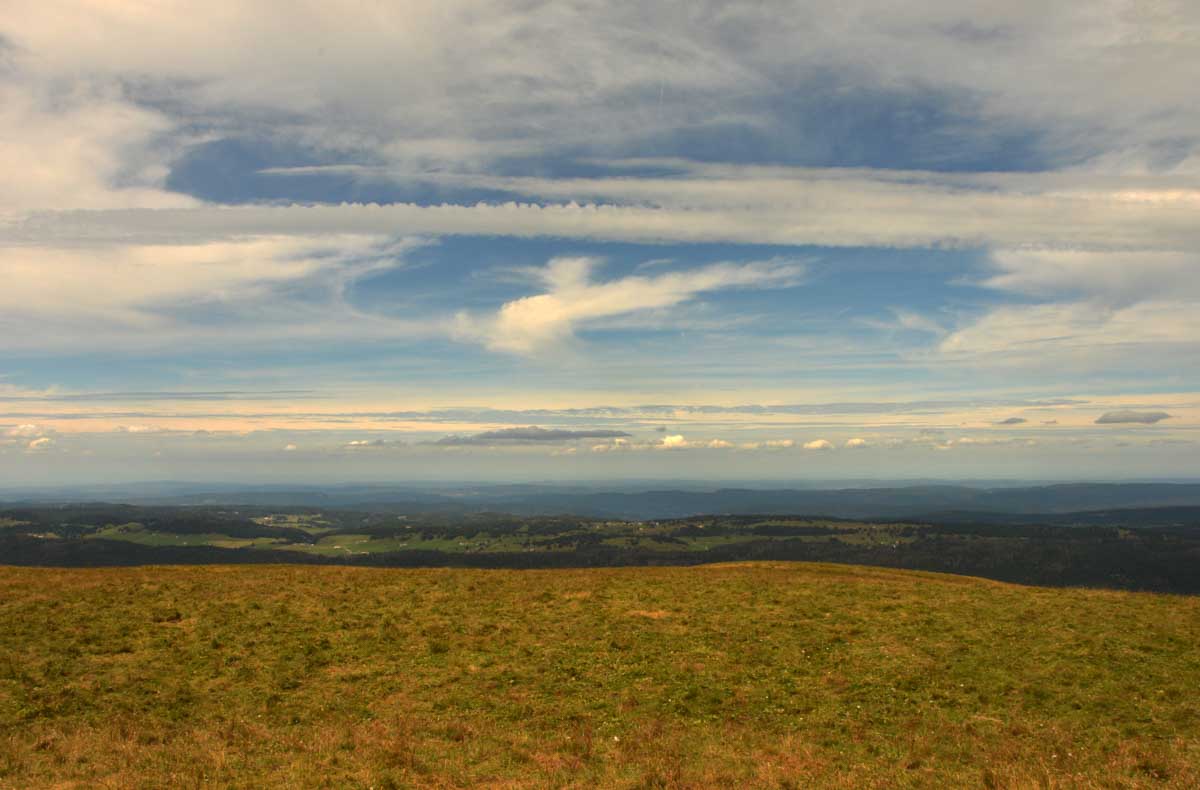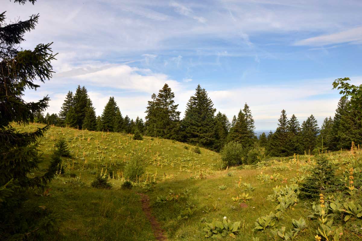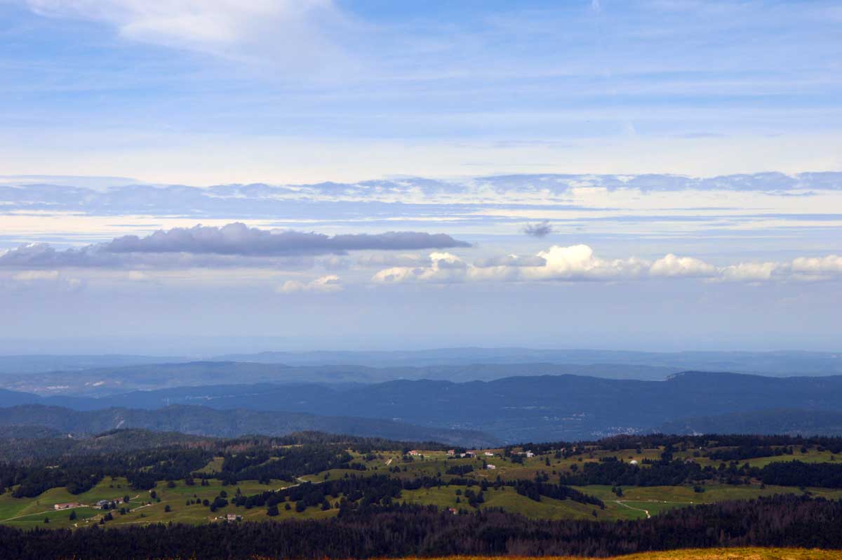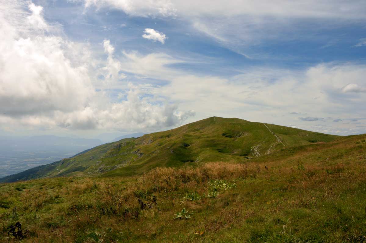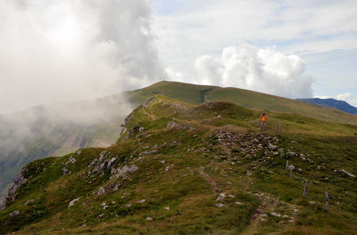 Tu montes, tu descends, tu montes, tu descends et à un moment tu es au Grand Montrond à 1614 mètres d’altitude, d’où tu vois le Petit Montrond à 1532 mètres mais personne n’y va, il y a une énorme antenne dessus. Et là tu redescends comme si tu voulais prendre de l’élan pour remonter, mais tu peux pas à cause des caillasses et de la terre humide. Et enfin, tu le vois, tu le vénères, tu l’adores car…