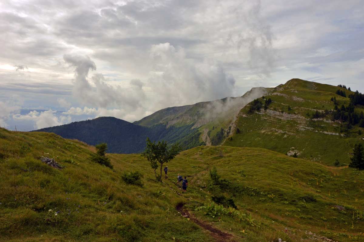 C’était la rando sportive du week-end ! Longer toute la crête sur le GR des Balcons du Léman avec d’ailleurs vue sur le Léman et sur Genève. Bon le Mont-Blanc c’était optimiste vue la météo. Une fois là-haut, tu te dis que l’ascension est terminée… Que nenni !