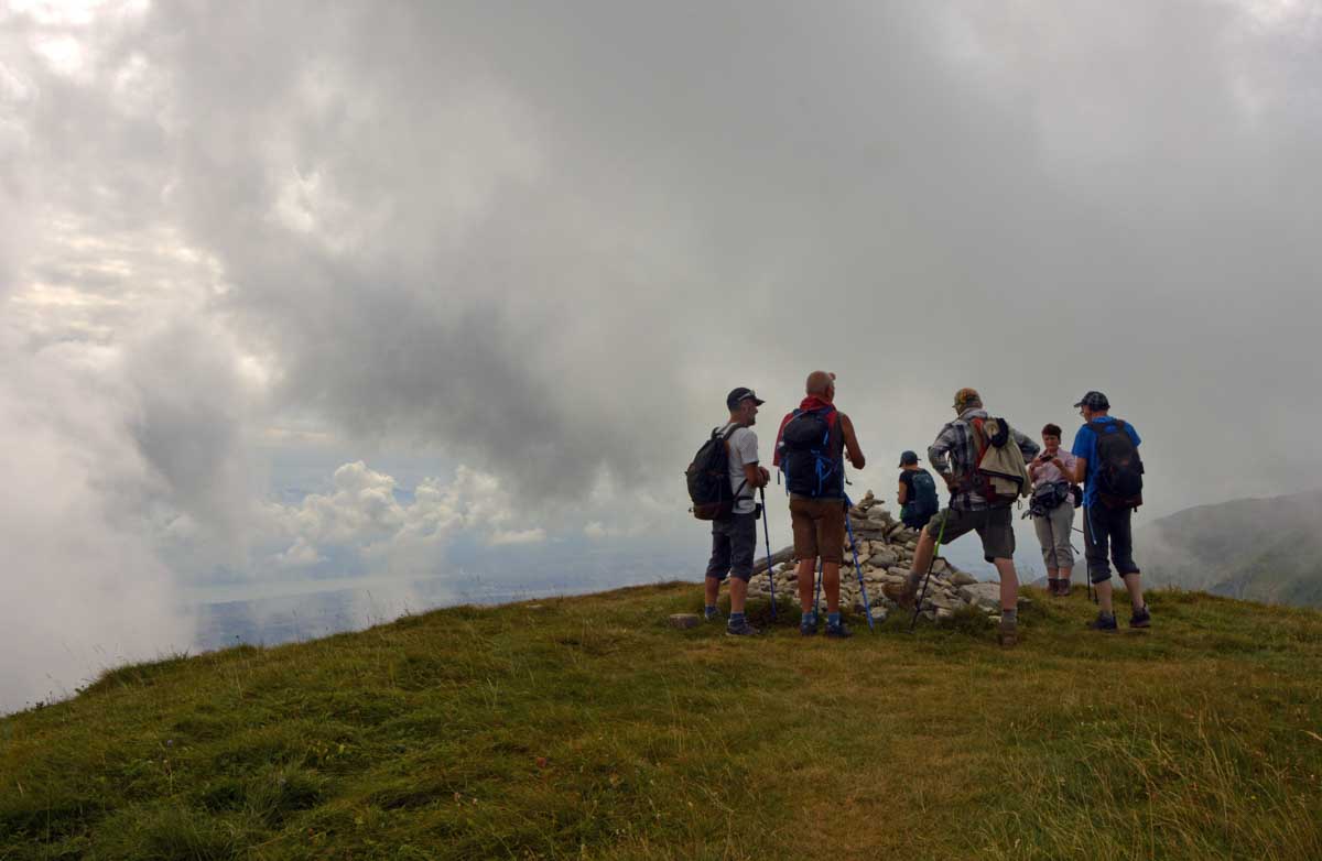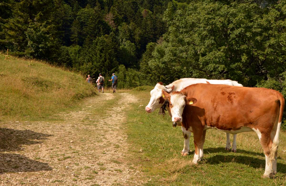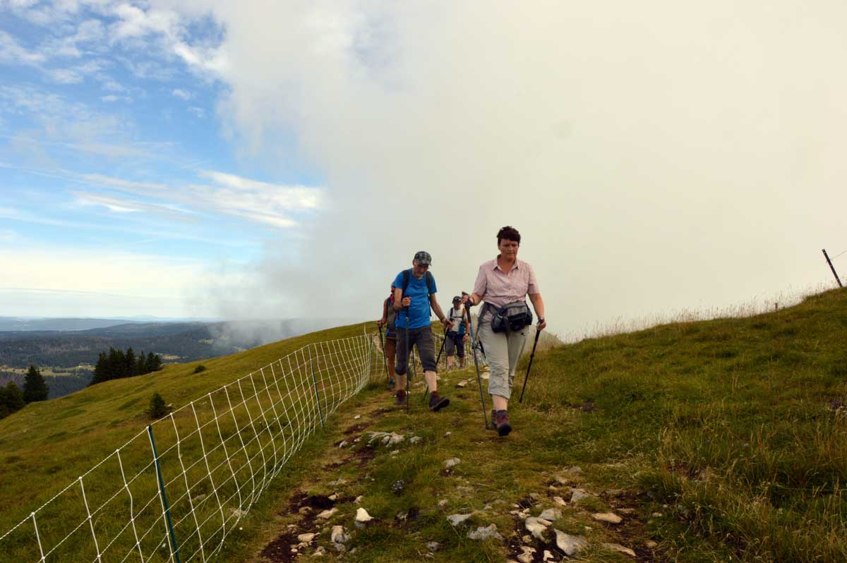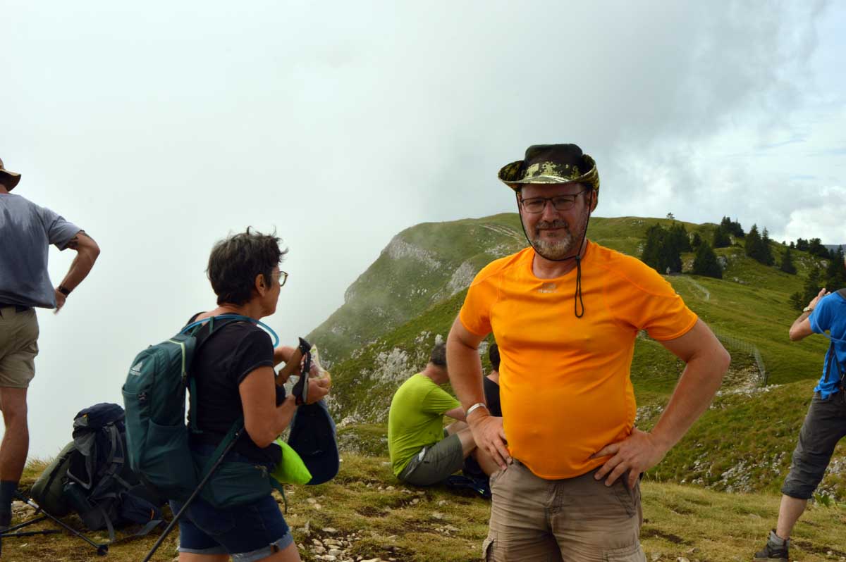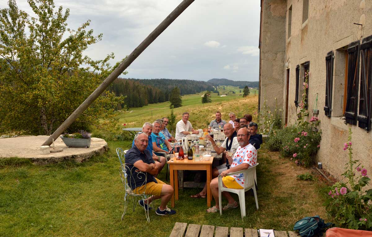 Puis nous descendîmes non sans nous demander pourquoi nous montâmes peu avant, mais c’est le principe de la rando, je ne cherche plus à comprendre. Face au Léman, nous nous dîmes qu’il eut suffi de se laisser rouler pour aller plonger dans le Lac. Nous réalisâmes qu’il nous fallait longer la crête dans l’autre sens et par le dessous, pour remonter au Col de la Faucille dont nous partîmes guillerets le matin-même. Eh dis mon canard, tu sais que pour Alsarando c’était une première ? On a randonné dans l’Ain et donc en région Auvergne Rhône-Alpes ! Et revenus dans le Jura, nouveau barbecue arrosé… de pluie, avec merguez au four et bonne ambiance ! Et un nouveau grand merci à l’équipe technique !