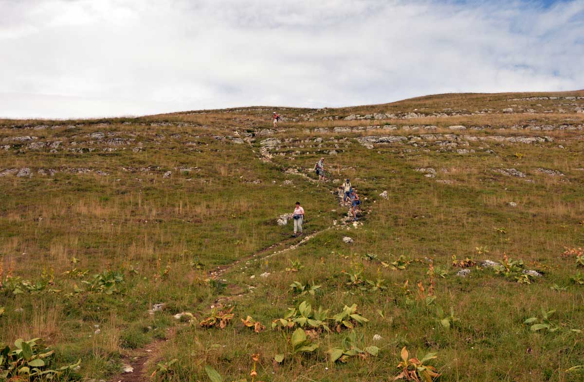 Après la crête, je me pose là pour la pause et voilà qu’une armée d’insectes aussi crétins qu’irritants me fonce dessus. Des nuées de ces trucs sans cervelle qui se posent partout, qui entrent dans le sac-à-dos, dans le casse-croûte, dans le nez, dans les oreilles, et dans tout ce que tu as le malheur de laisser ouvert.