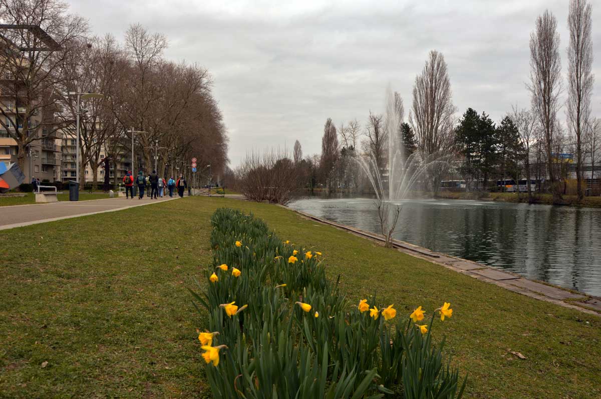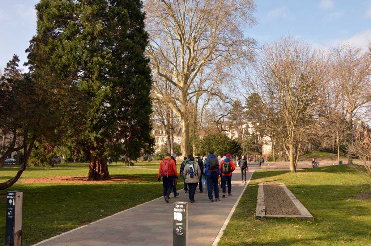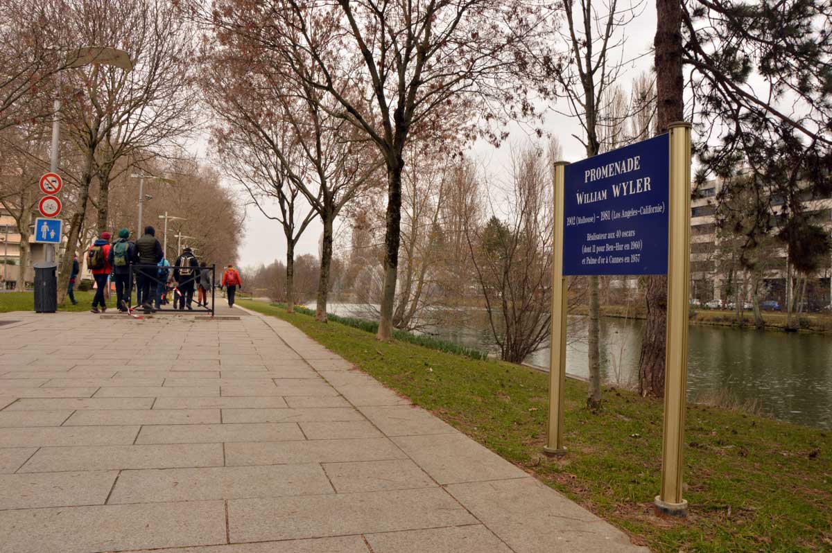 Avant de réaliser Ben Hur ou les Vacances Romaines, William Wyler a pris le temps de naître à Mulhouse en 1902 avant sa carrière à Hollywood et ses 40 Oscars. Et ici, on a le Rebberg, le quartier chic et ses maisons de maître, ses espaces verts, et le Parc Wallach, ainsi que nos 16 randonneurs du jour, avec une pause déjeuner dans un décor digne de n’importe quelle production californienne. Et voyez, je n’ai pas été mauvaise langue aujourd’hui car à Mulhouse dans le temps, la punition des commères était de devoir porter le Klapperstein, une grosse pierre, à travers toute la ville. Déjà qu’à mon sac-à-dos je préfère les sacs-cadeaux, hein, je me suis tenue à carreau !